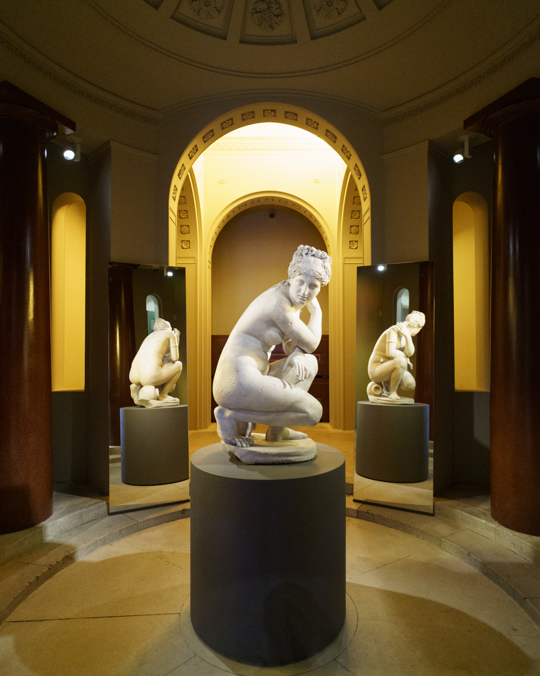 The literal centrality of the antique Crouching Venus in the exhibition, seen by Rubens in Mantua, is a poignant one. Reflected in two mirrors, we are prompted to metaphorically and literally contemplate the different perspectives that converge in Rubens’ vision of female beauty. Throughout the second half, her vulnerable pose is repeated and referenced in multiple drawings and paintings, adapted for different mythological guises, and even emulated from life with the few women models he had access to: his wives.