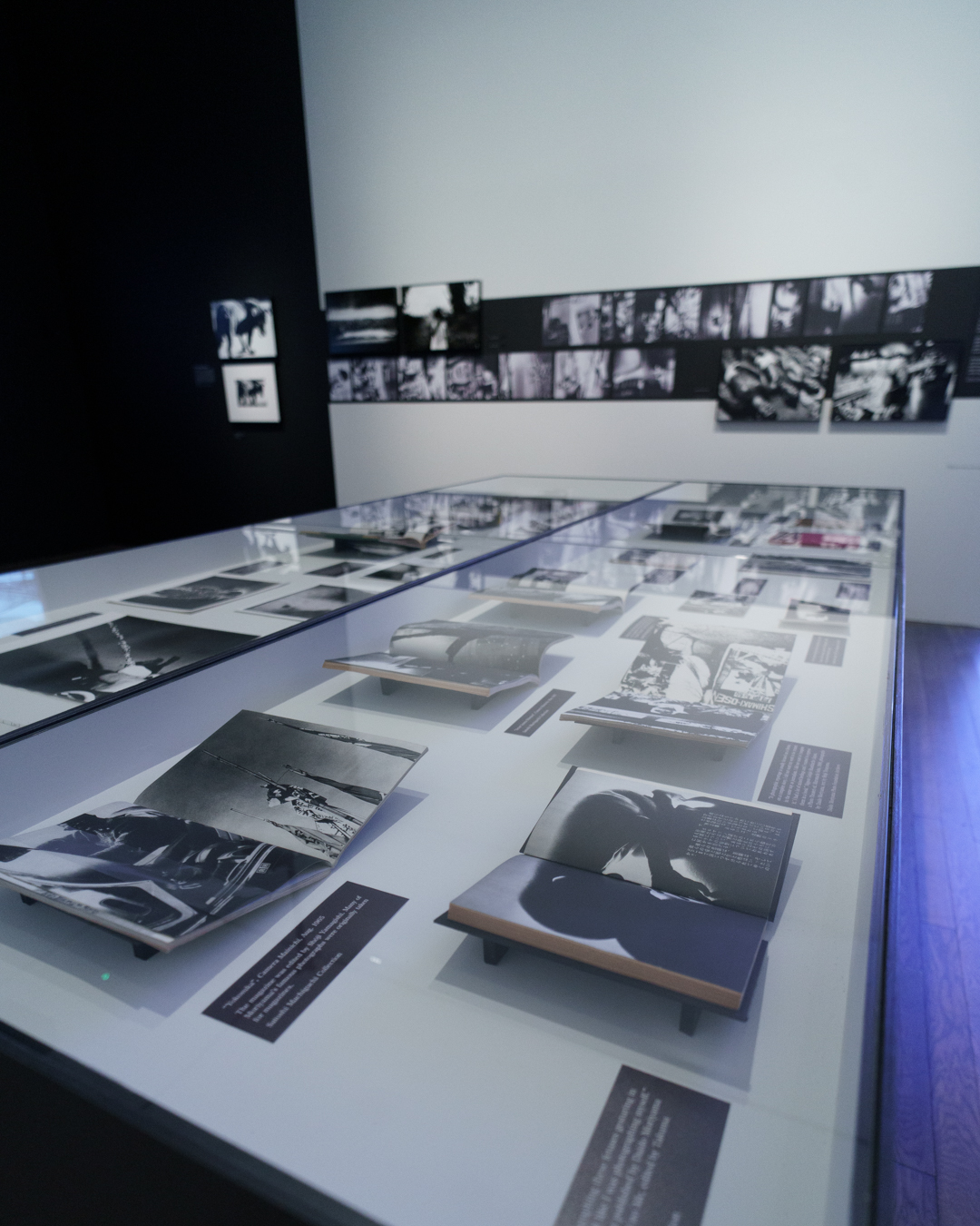 This interest in the materiality of his images is evident in his consistent production of photobooks since Japan: A Photo Theater (1968). All of these are represented in some shape or form throughout the show; the last section features a huge gathering of his various publications, including an unbroken showcase of his ongoing magazine series Record. Commenting on his preference for this tangible format, Moriyama wanted his audience to self-dictate the viewing order of his images as they casually flick through the pages. A dedicated reading room allows visitors the opportunity to browse through some of his publications.