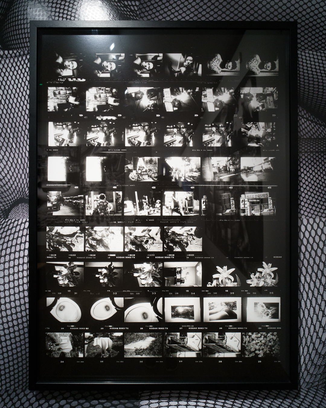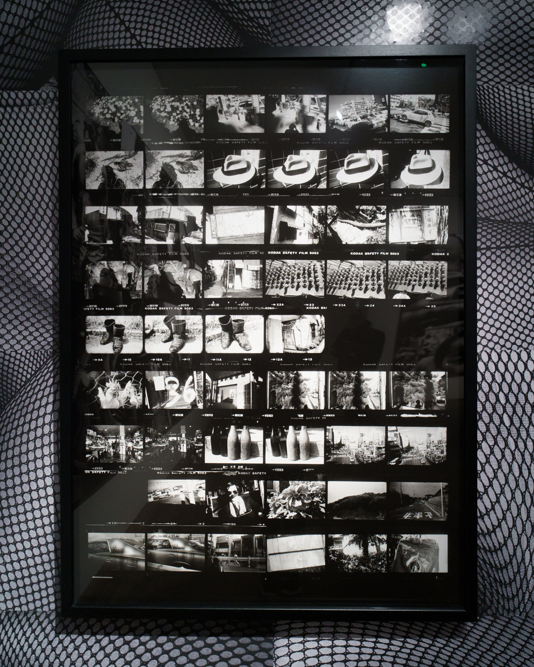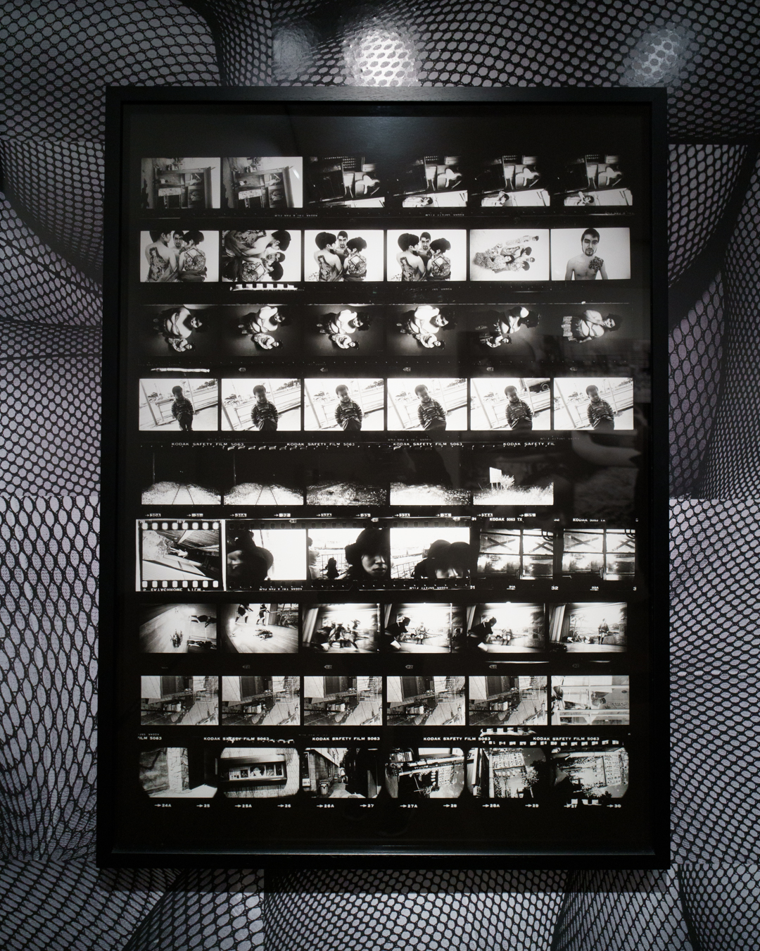 Similarly for the Labyrinth project, six of his contact sheets have been blown-up in size for us to better see them in the context and sequence they were shot. It was particularly interesting to see how the demonic-looking Boy (1973) picture came out of a sequence where the child was making weird facial expressions, which Moriyama later manipulated in the darkroom for the final image. Framed and set against a backdrop composed of his iconic Tights photographs, the grid structure of the contact sheets strongly resonate with those of the fishnet tights.