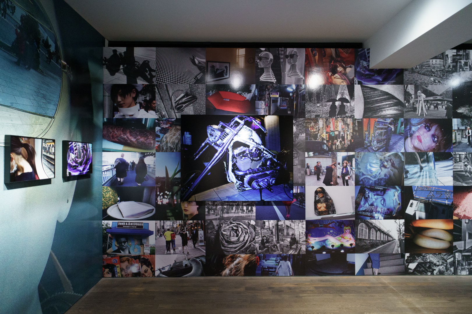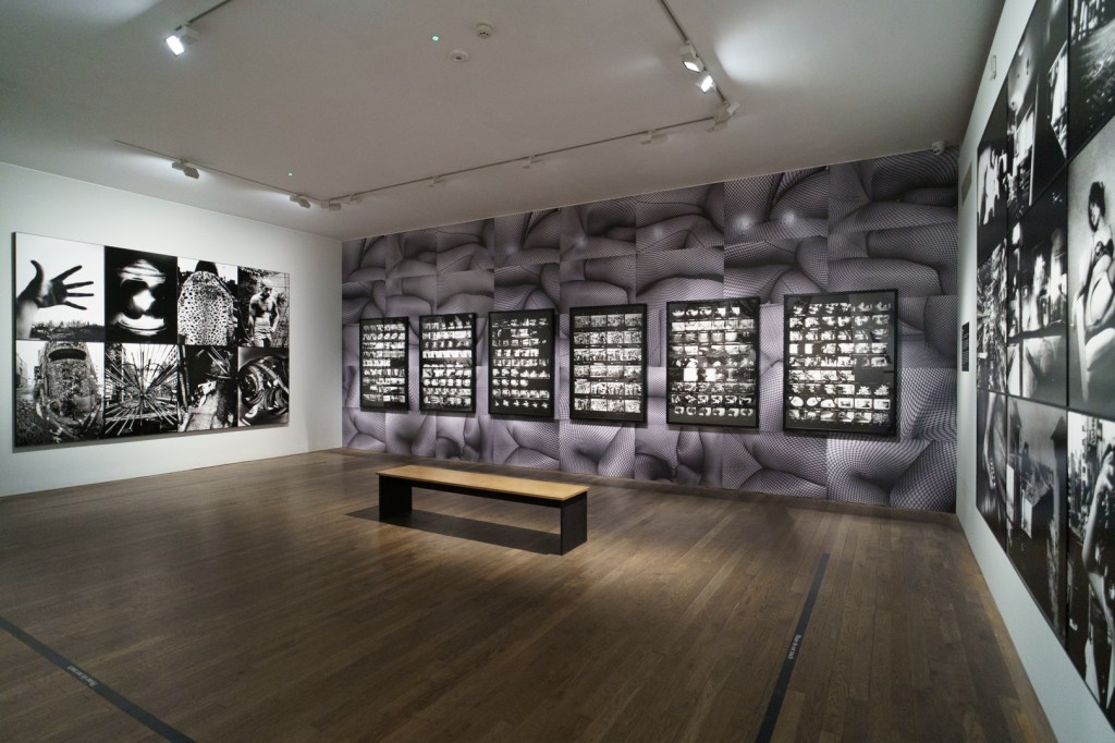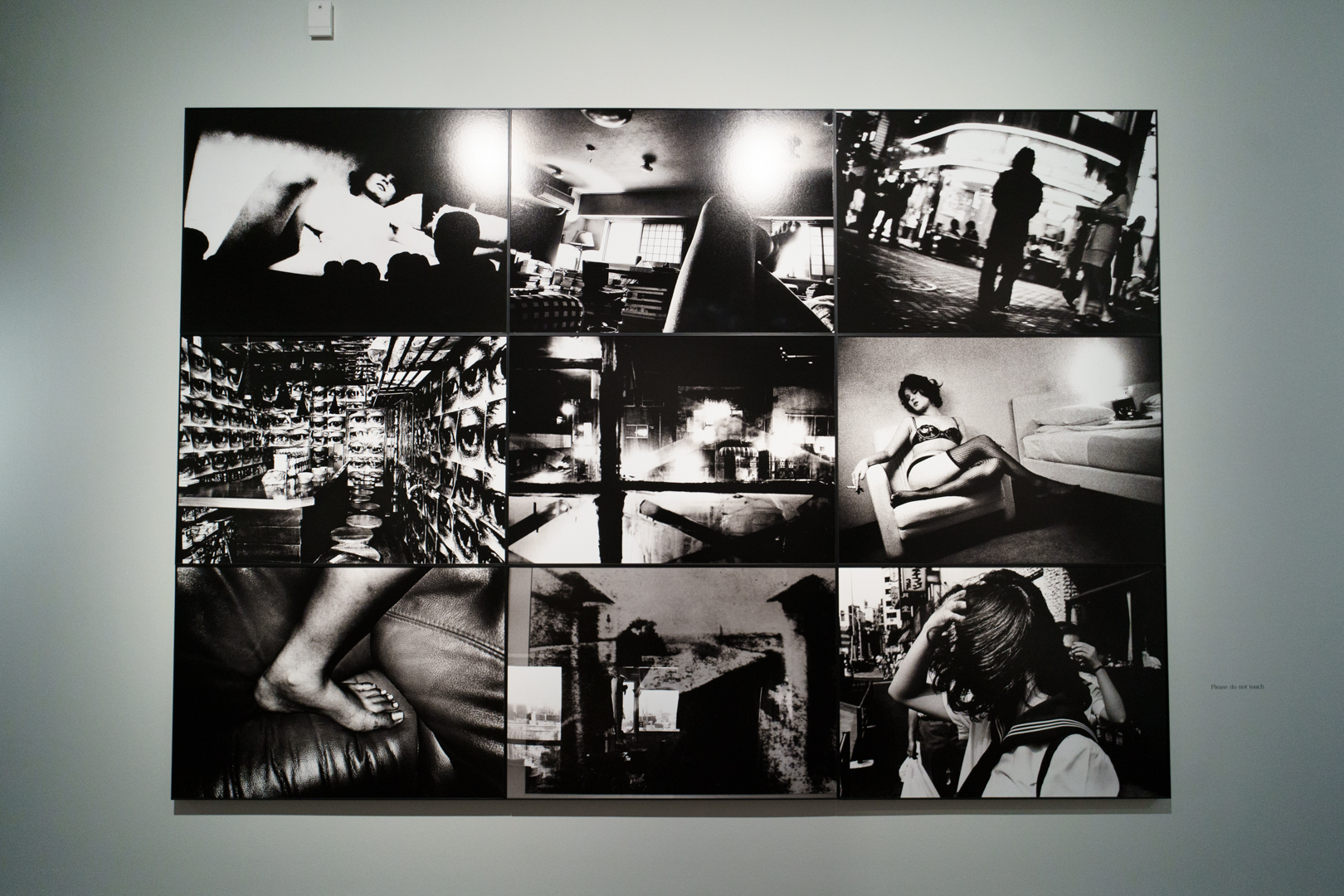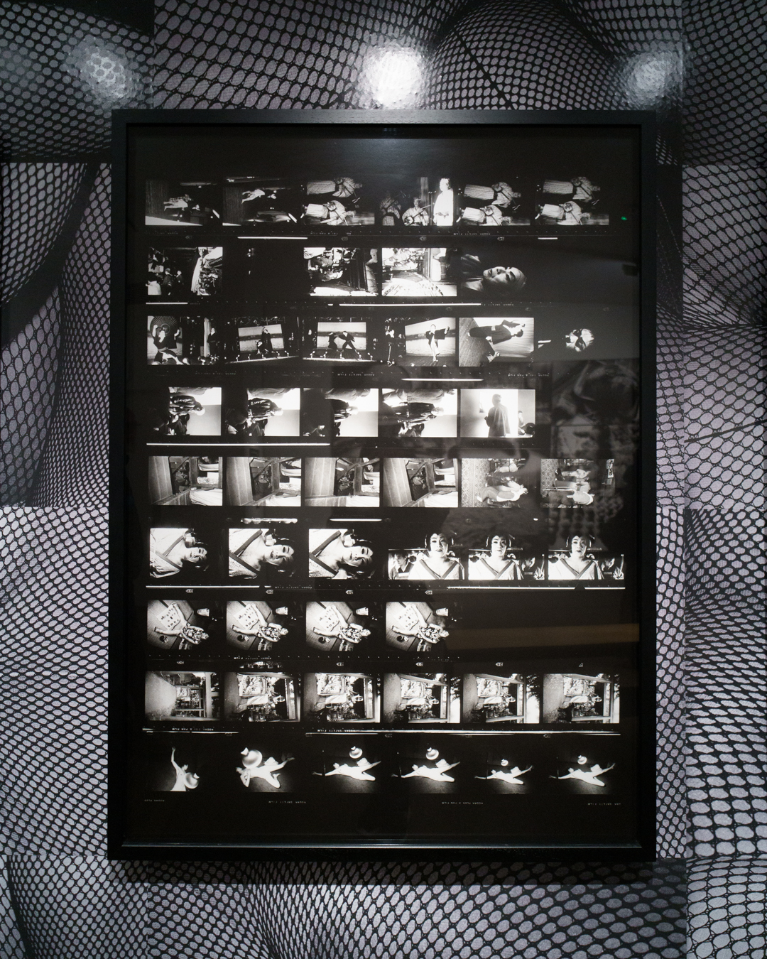 Similarly for the Labyrinth project, six of his contact sheets have been blown-up in size for us to better see them in the context and sequence they were shot. It was particularly interesting to see how the demonic-looking Boy (1973) picture came out of a sequence where the child was making weird facial expressions, which Moriyama later manipulated in the darkroom for the final image. Framed and set against a backdrop composed of his iconic Tights photographs, the grid structure of the contact sheets strongly resonate with those of the fishnet tights.