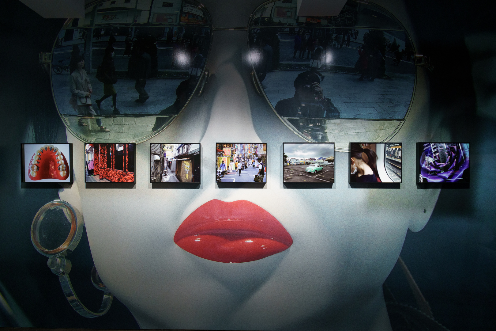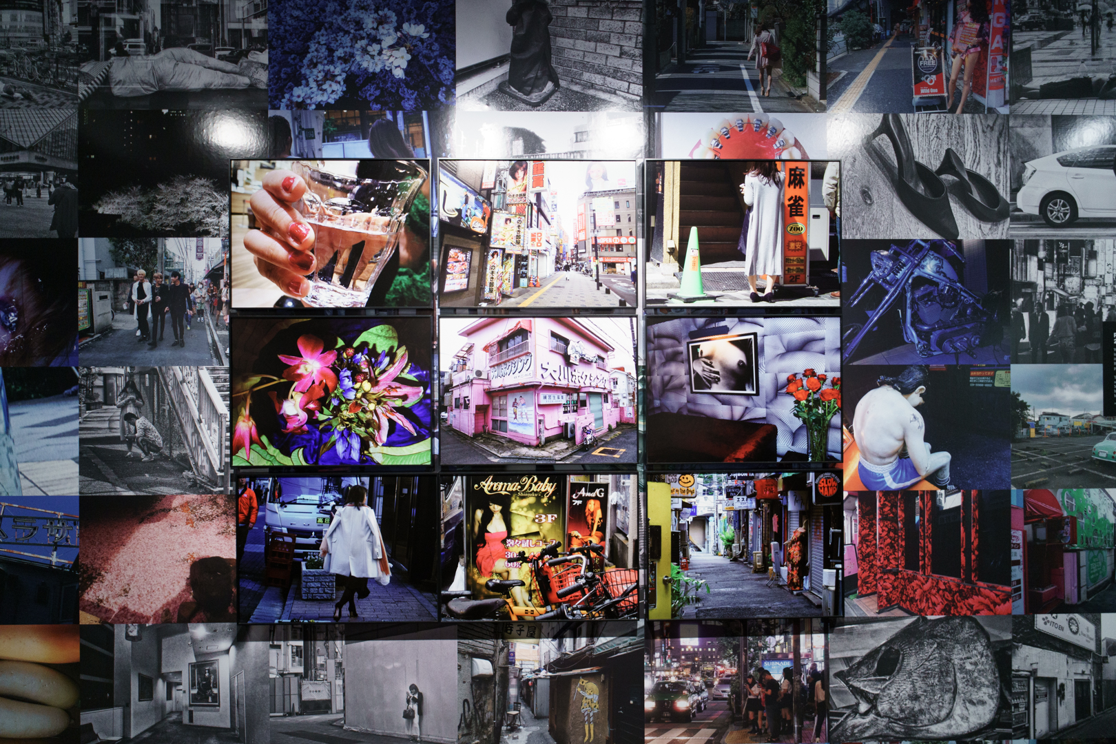 Occupying three floors, the first object to greet us is the silkscreen mesh used to create luxury editions of his most famous image, Stray Dog (1971). Photographed in Misawa while shooting the Searching Journeys series in Asahi Camera magazine, it would go on to become a metaphorical self-portrait of the wandering photographer. For Moriyama, silkscreen allows him to add textured elements to his grainy, black-and-white photographs. As later sections eventually reveal, he also experimented with shooting in colour, such as the recent Pretty Woman series (2017).