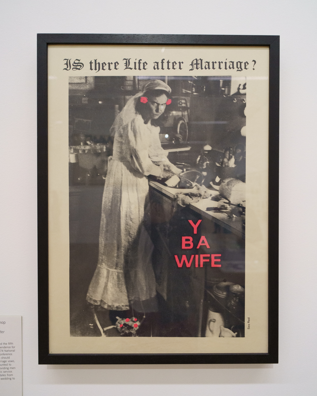 There are no real highlights in this show because all of it adds a different perspective to the story. Early sections dive straight into women’s inequality in life and work, particularly the formation of the Women’s Liberation Movement, and control over one’s own body under a patriarchy. Of course, the famous Greenham Common Women’s Peace Camp is also mentioned, who protested the housing of 96 nuclear missiles in the local Royal Air Force base.