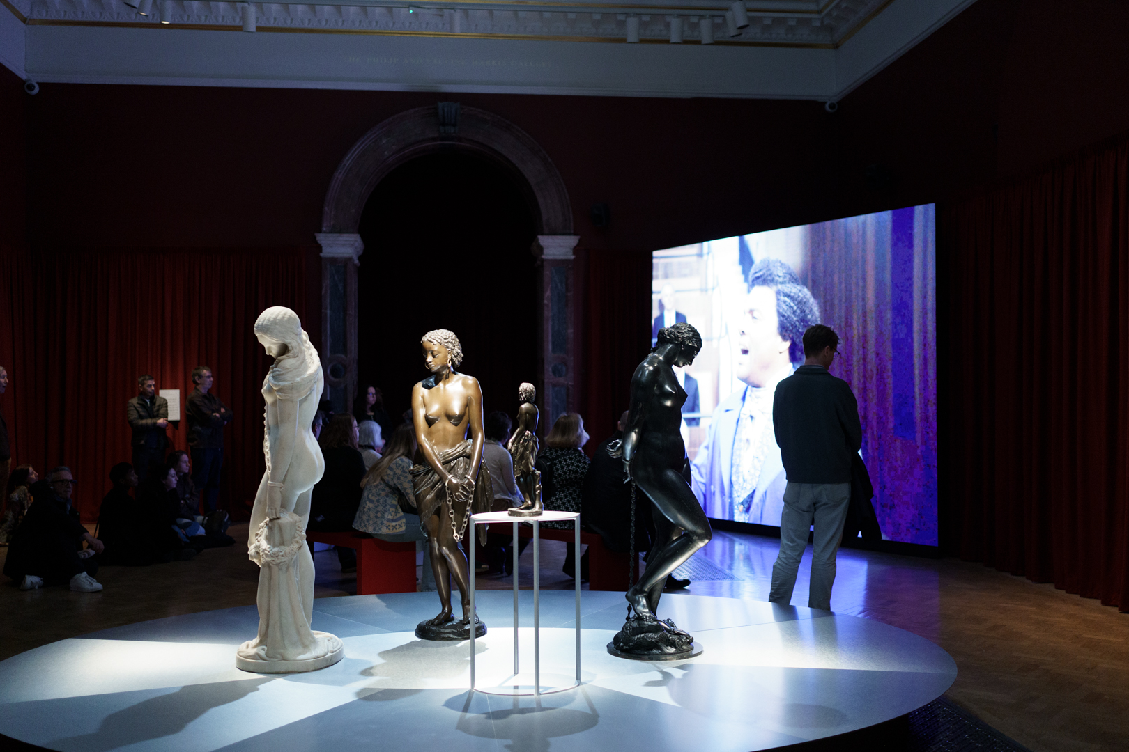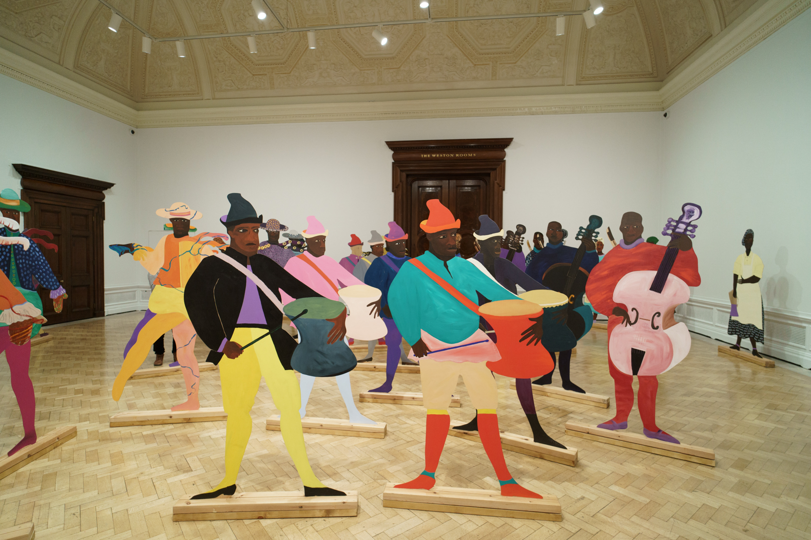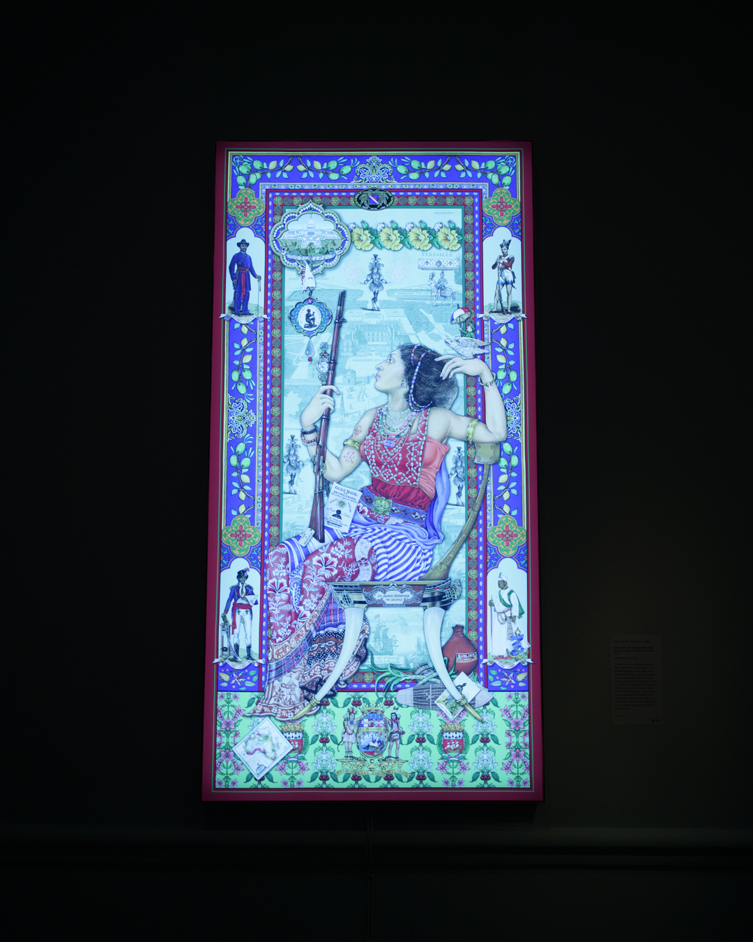 The contemporary interventions responding to this wealth of historical material really do bring it all together, emphasising how much has changed since the 18th century but also what problems have remained. Hew Locke’s Armada invades the second room, Kehinde Wiley gives Black sitters authority and power in his portraits, Kara Walker muses on Britain’s imperialism, Isaac Julien pays homage to the abolitionist Frederick Douglass, Barbara Walker draws attention to Black models in Old Master paintings, El Anatsui explores drowned migrants crossing the sea, and Lubaina Himid gives a voice to underappreciated workers in society.