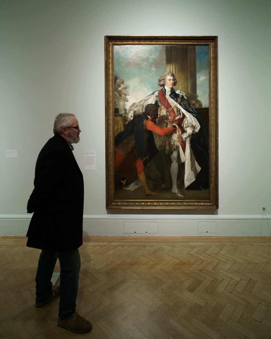 Although the topic is particularly dense, the exhibition is surprisingly light and palatable; captions sometimes felt a bit too sparse, particularly for impressive-looking works like Yinka Shonibare’s Woman Looking Up. The first few rooms elegantly address core issues head on: portraits of lost Black identities, coloured models painted in subservient roles, and imperialist subject matter with martyrdom vibes, all painted by esteemed Royal Academicians like Joshua Reynolds and Thomas Gainsborough.