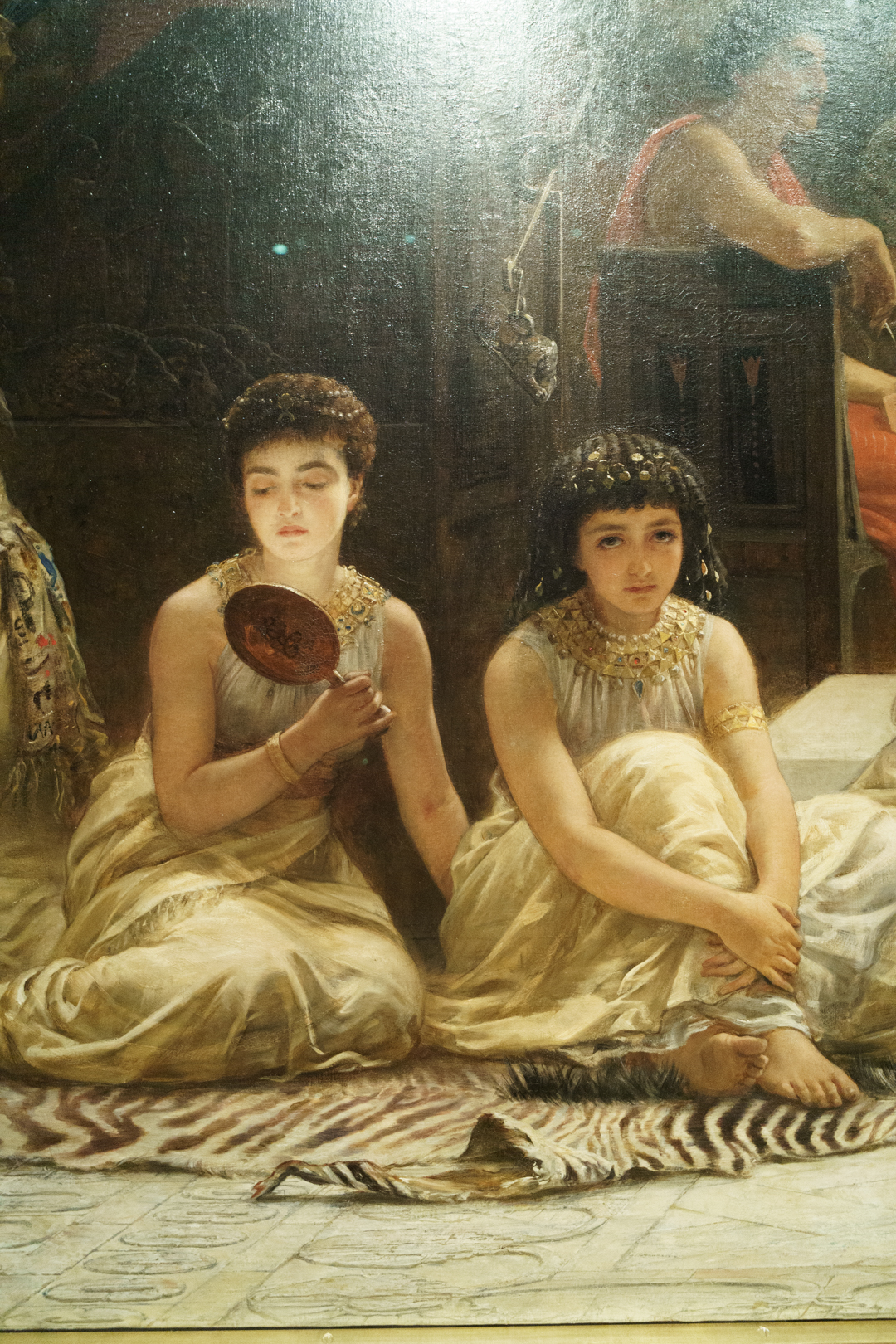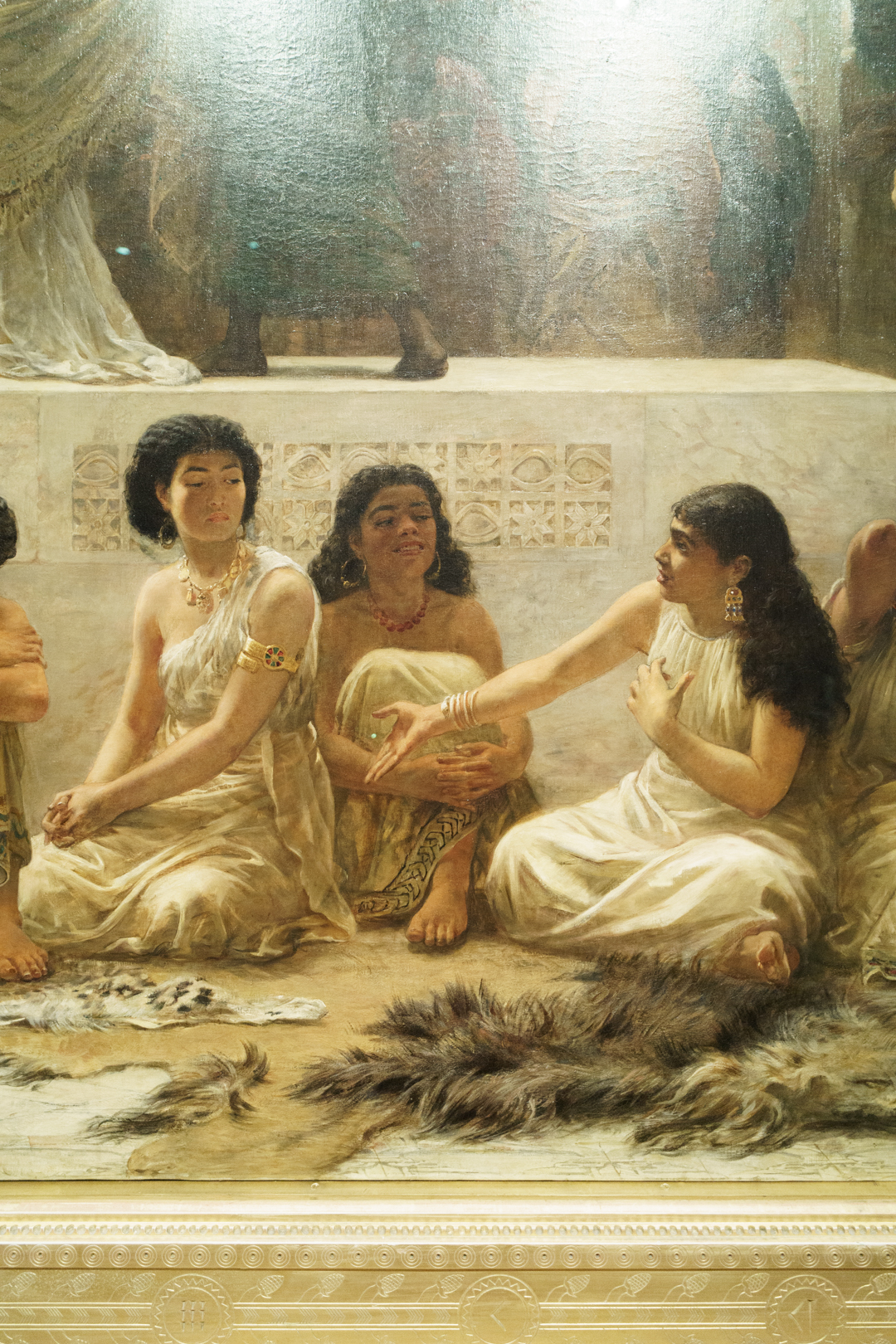 Edwin Longsden Long’s massive The Babylonian Marriage Market is also just a marvellously executed painting despite its disheartening subject matter; the racialised hierarchy of skin tones in the line of soon-to-be brides just hits home, especially paired with Keith Piper’s contemporary parody The Coloureds’ Codex, An Overseers’ Guide to Comparative Complexion, a pigment box documenting the skin tones of people involved in the slave trade.