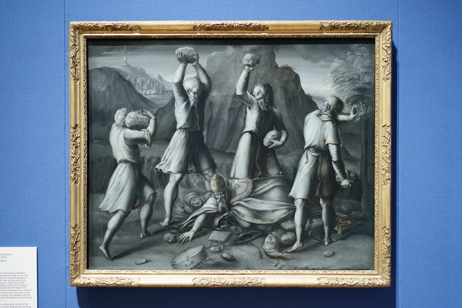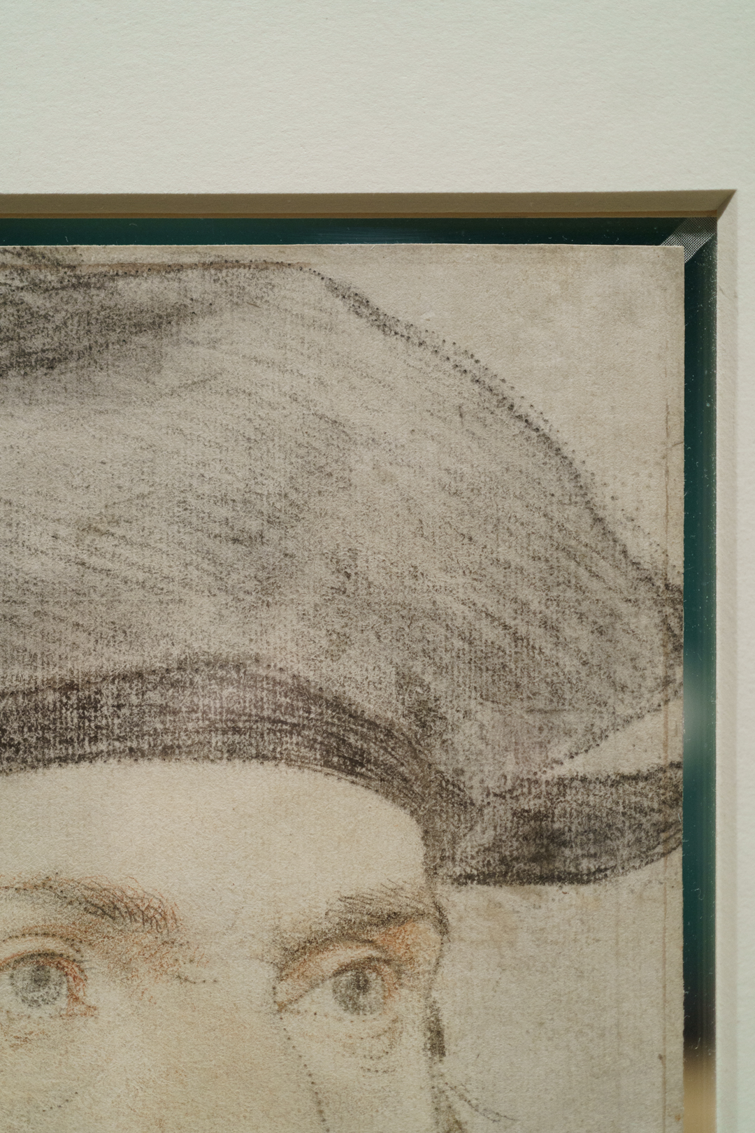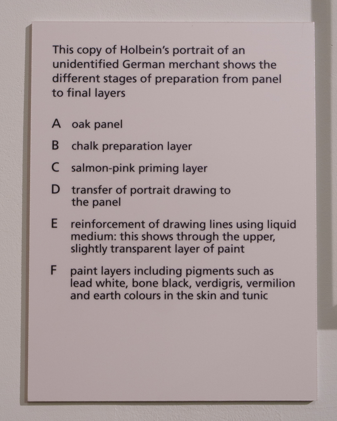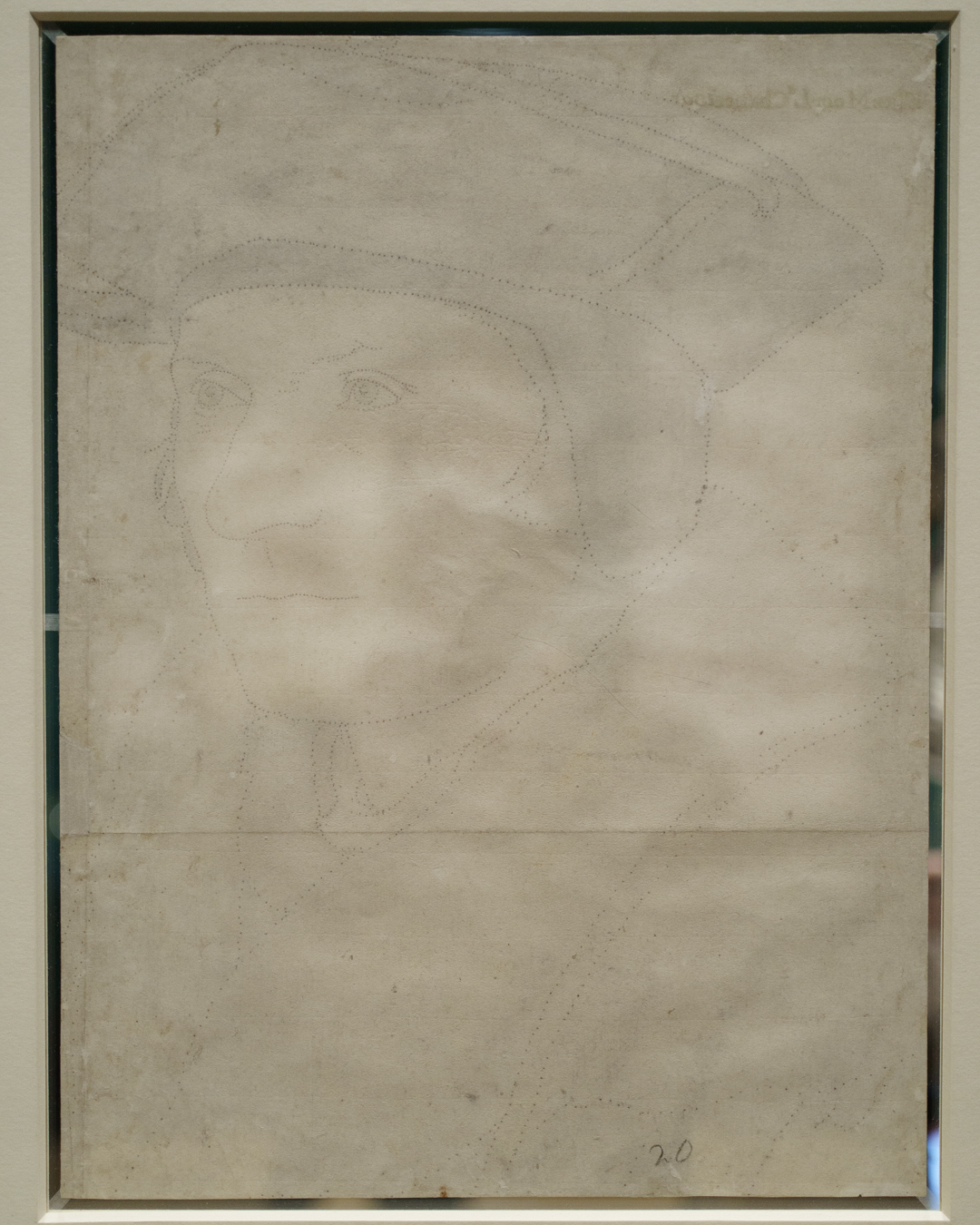 An unexpected bonus for visitors, I think, was the pricked drawing for More’s famous portrait in the Frick Collection. This was used to create extra cartoons that would actually be used for transferring the composition to the oak panel. The Royal Collection doesn’t borrow works for their exhibitions, so it was a shame the timeliness of the US institution’s present renovations and recent lending opportunities couldn’t allow for a reunion. The same is true of the reduced copy of the lost Whitehall Mural, for which the National Portrait Gallery holds a surviving cartoon fragment.