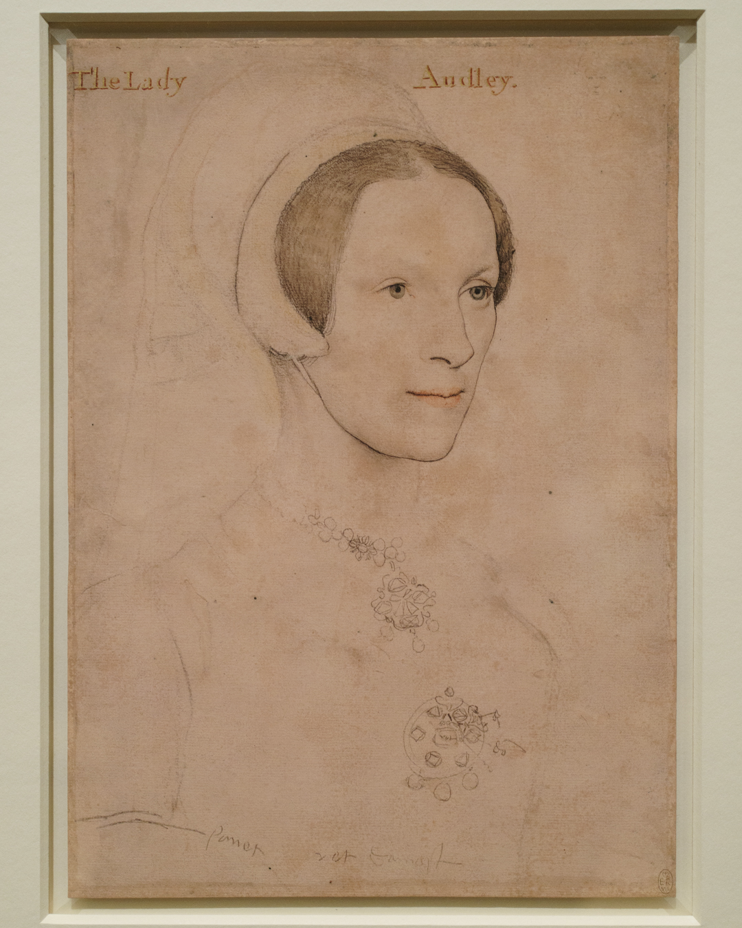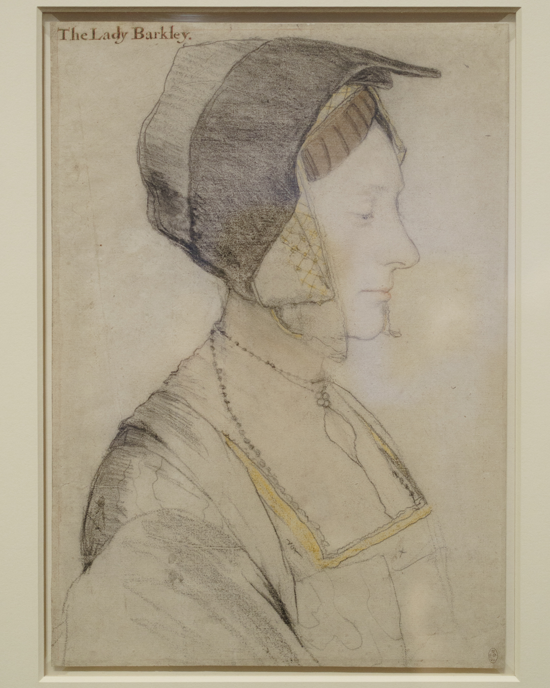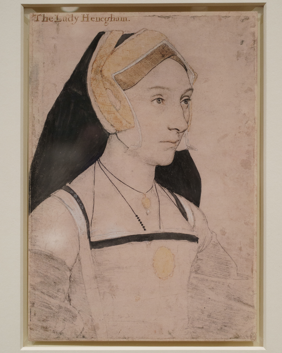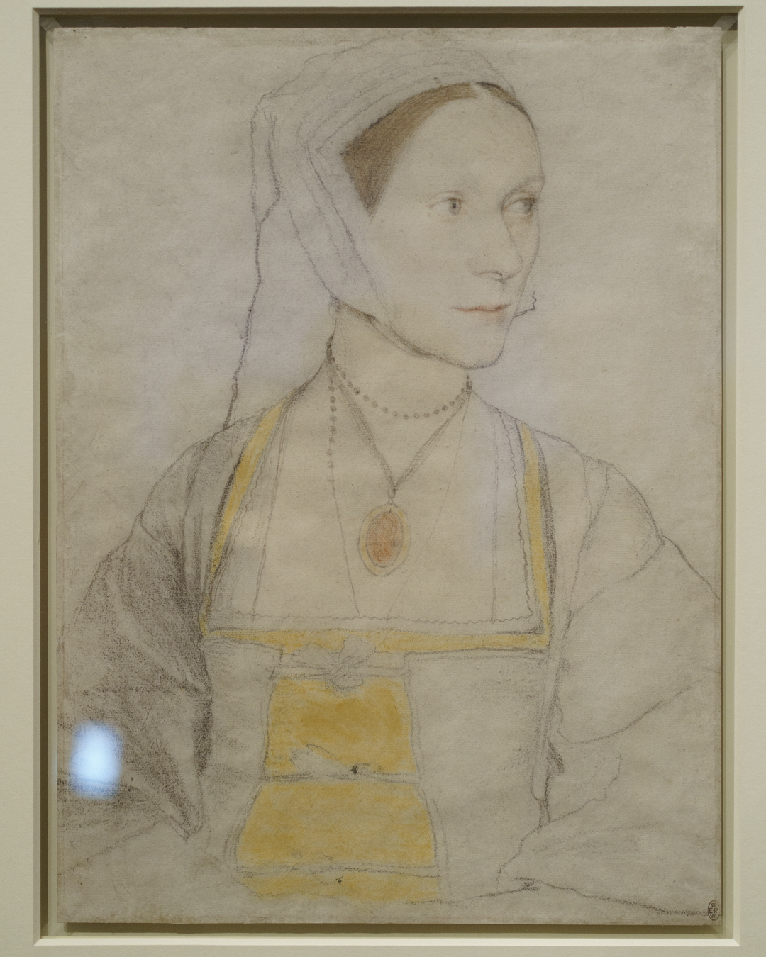 Perhaps due to the limitations of paper size standards, it was particularly interesting to see the uniformity of the size and scale of Holbein’s portrait studies. This is where his sublime portrait miniatures come into play; they are astonishing, with the same level of impressive detail as his oil paintings. In the case of Lady Elizabeth Audley, you get see both the drawing and the miniature together.