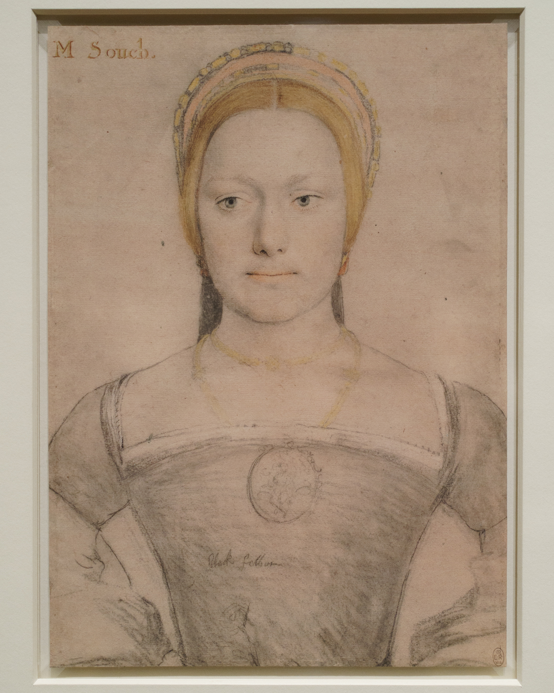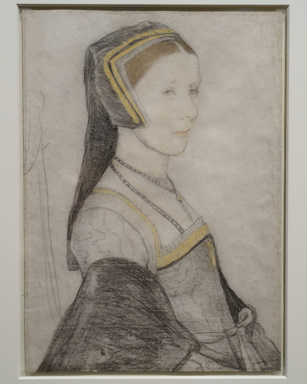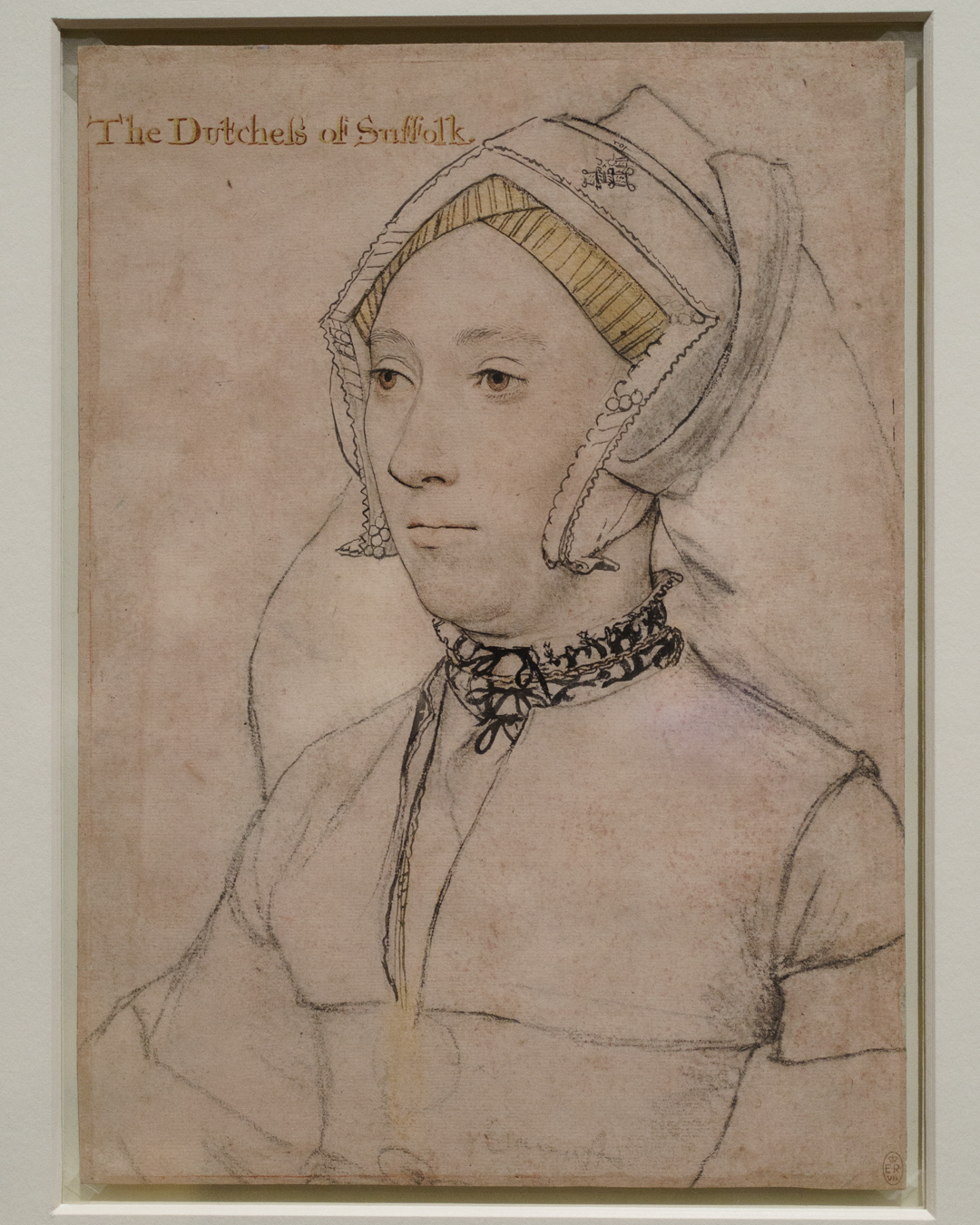 Perhaps due to the limitations of paper size standards, it was particularly interesting to see the uniformity of the size and scale of Holbein’s portrait studies. This is where his sublime portrait miniatures come into play; they are astonishing, with the same level of impressive detail as his oil paintings. In the case of Lady Elizabeth Audley, you get see both the drawing and the miniature together.