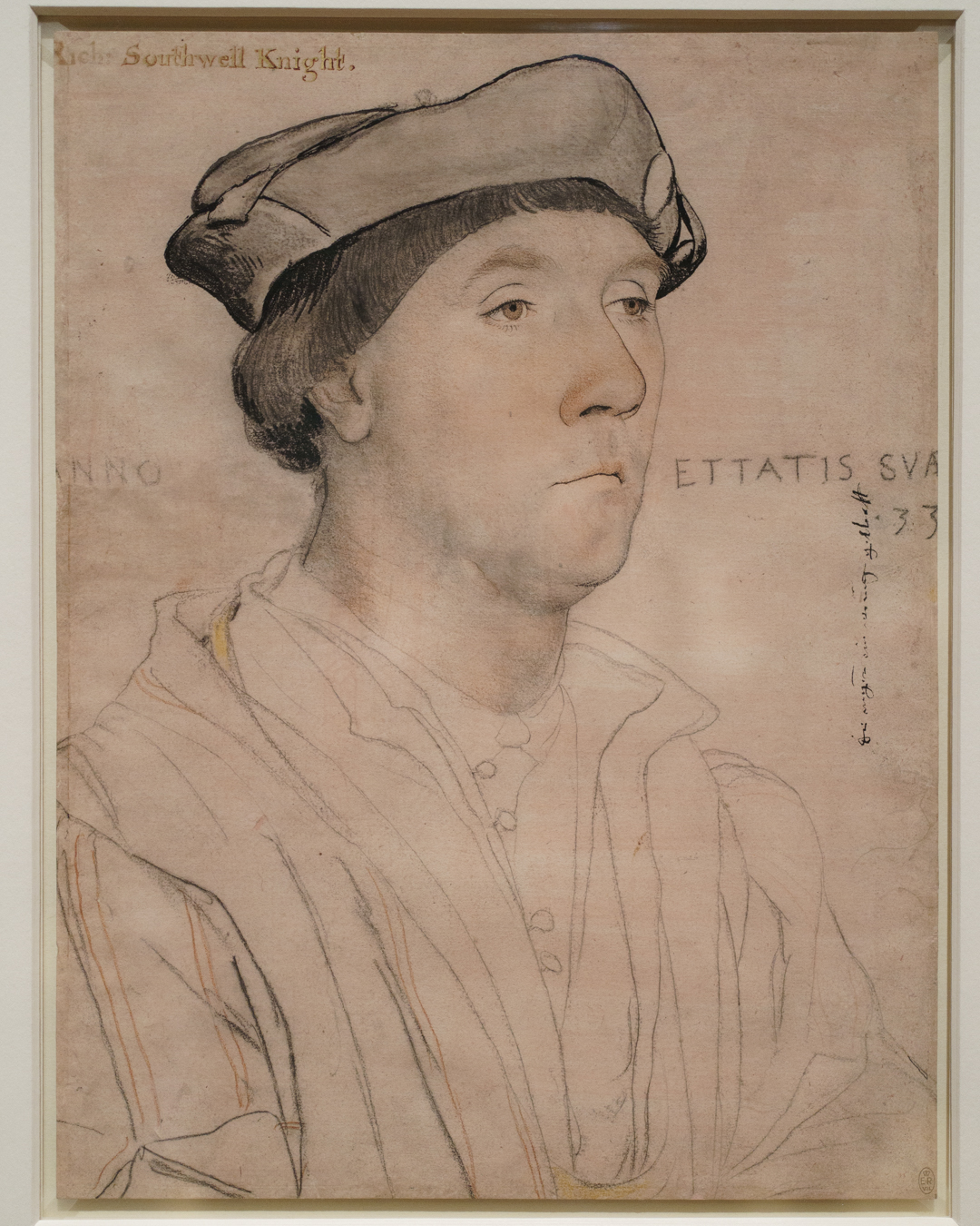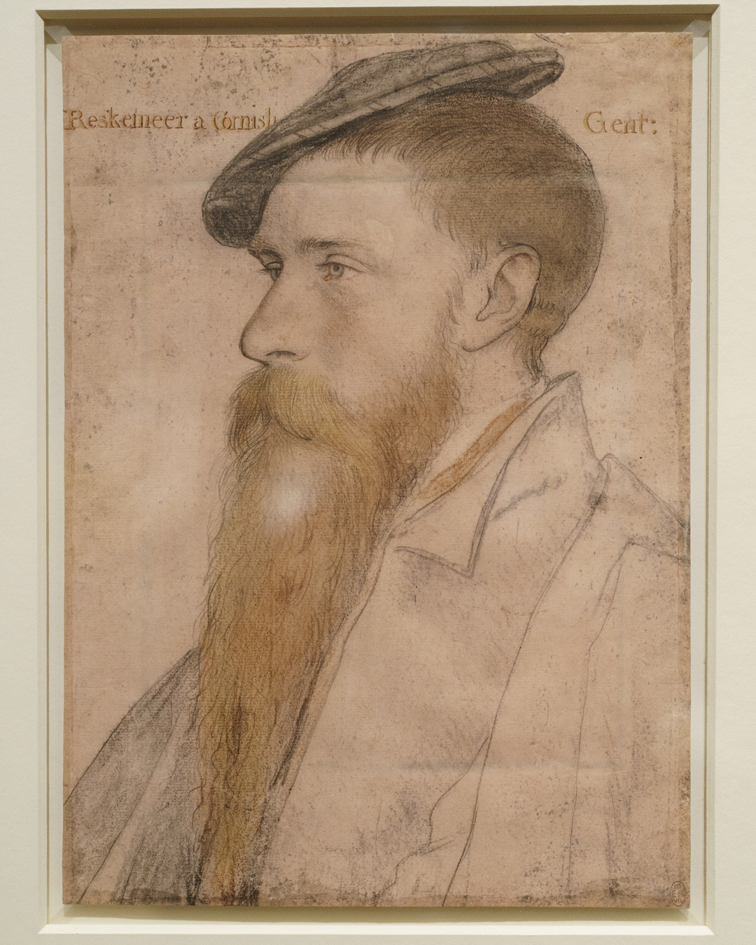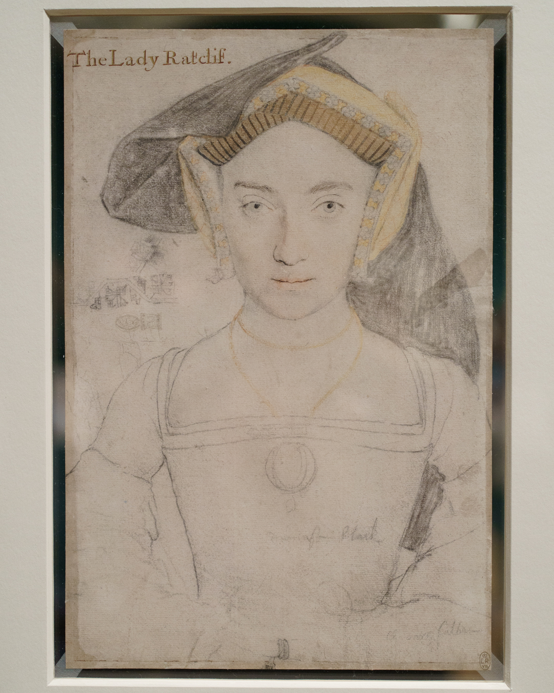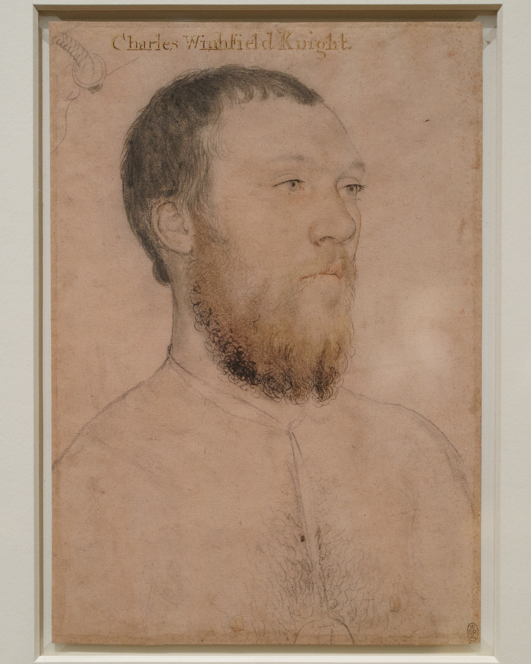 Perhaps due to the limitations of paper size standards, it was particularly interesting to see the uniformity of the size and scale of Holbein’s portrait studies. This is where his sublime portrait miniatures come into play; they are astonishing, with the same level of impressive detail as his oil paintings. In the case of Lady Elizabeth Audley, you get see both the drawing and the miniature together.