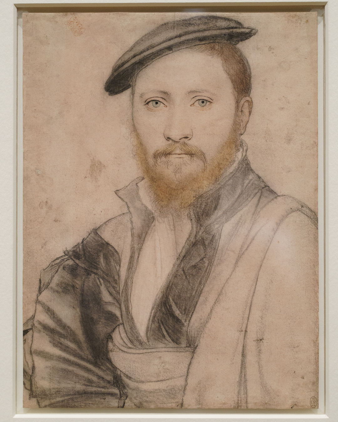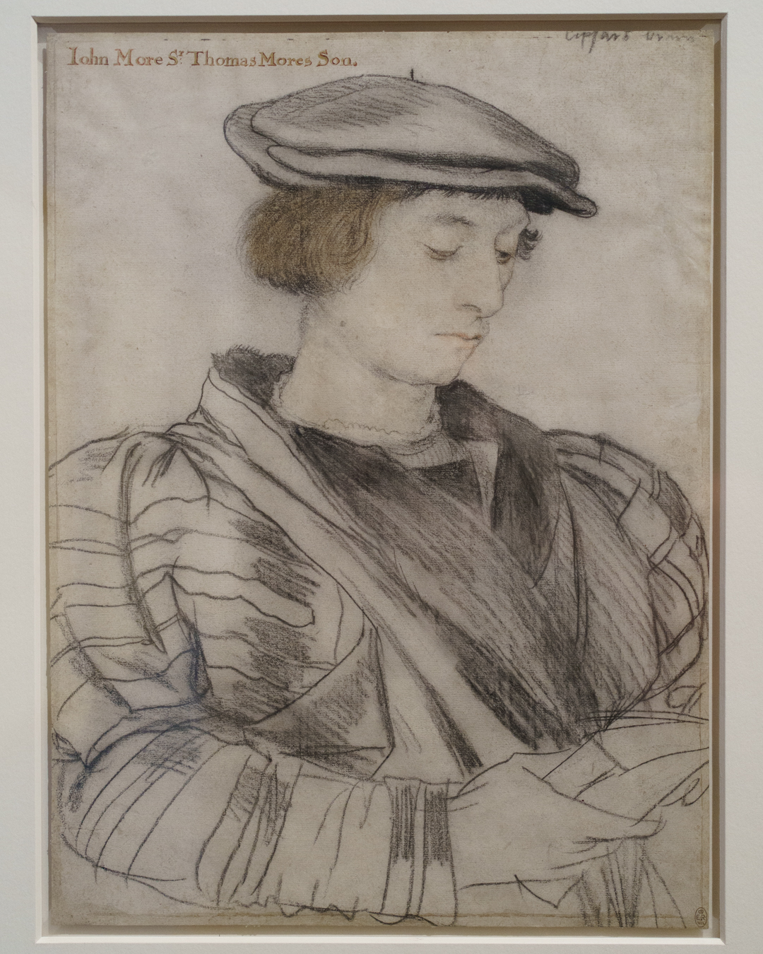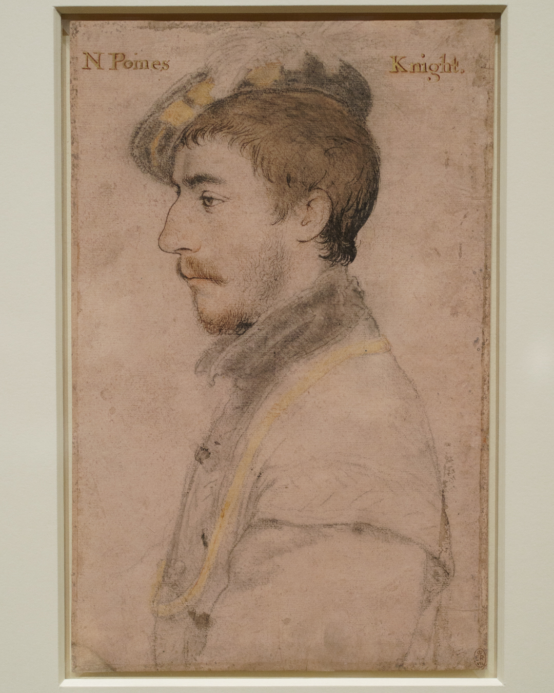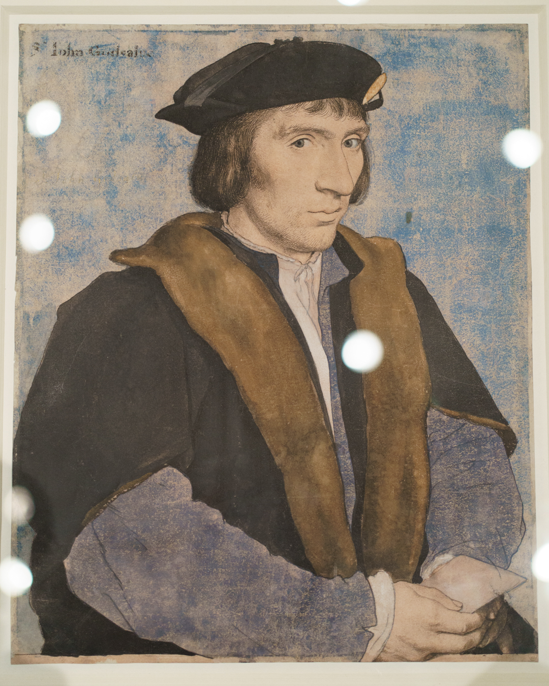 As soon as we approached the portrait drawings of Sir Thomas More’s family, it was immediately clear how big an impact he had, their likenesses practically leaping from the page, some with lovely little annotations for colours and clothing materials. In the following rooms, visitors saw Holbein’s working methods at play, first sketching in coloured chalks, adding colours and comments, and sometimes drawing extra detail studies on the side in pen and ink. You can clearly see his pragmatism to record all the details necessary to portray his sitters in paint.