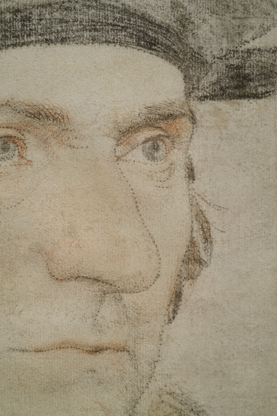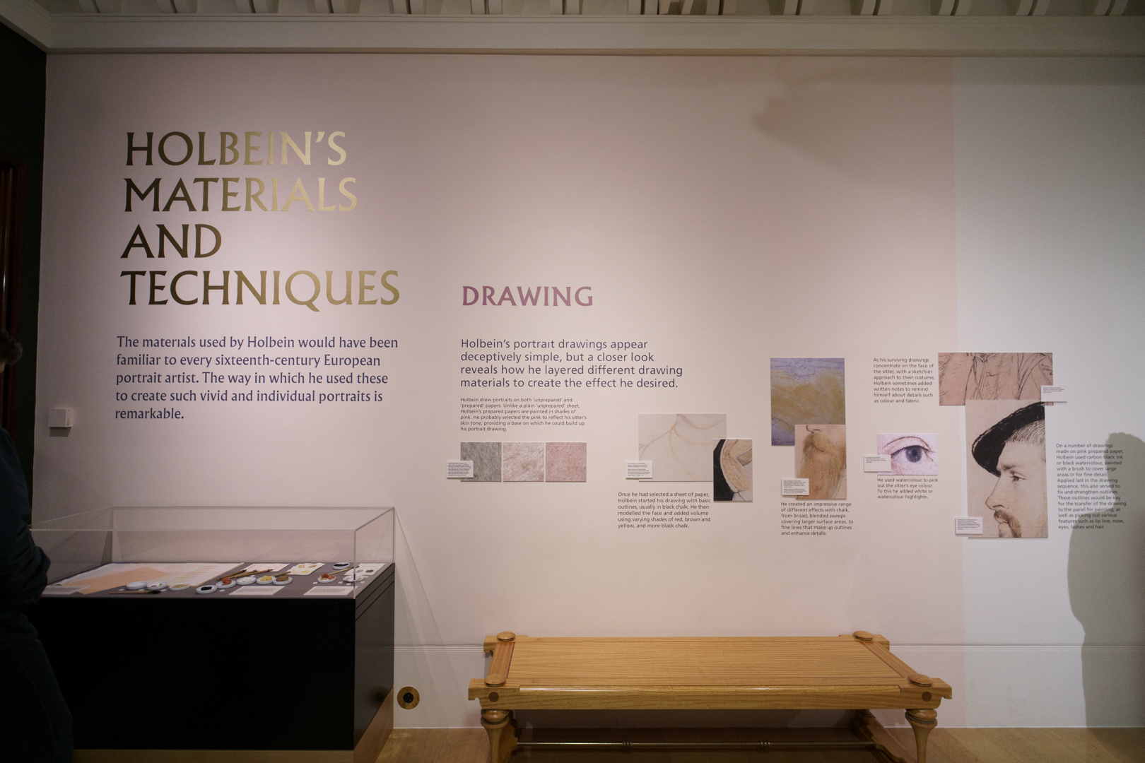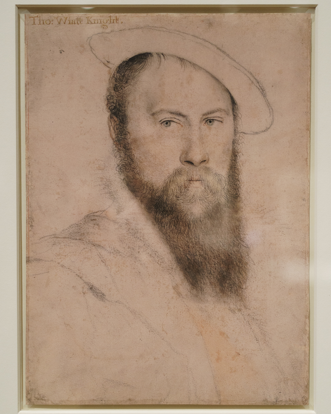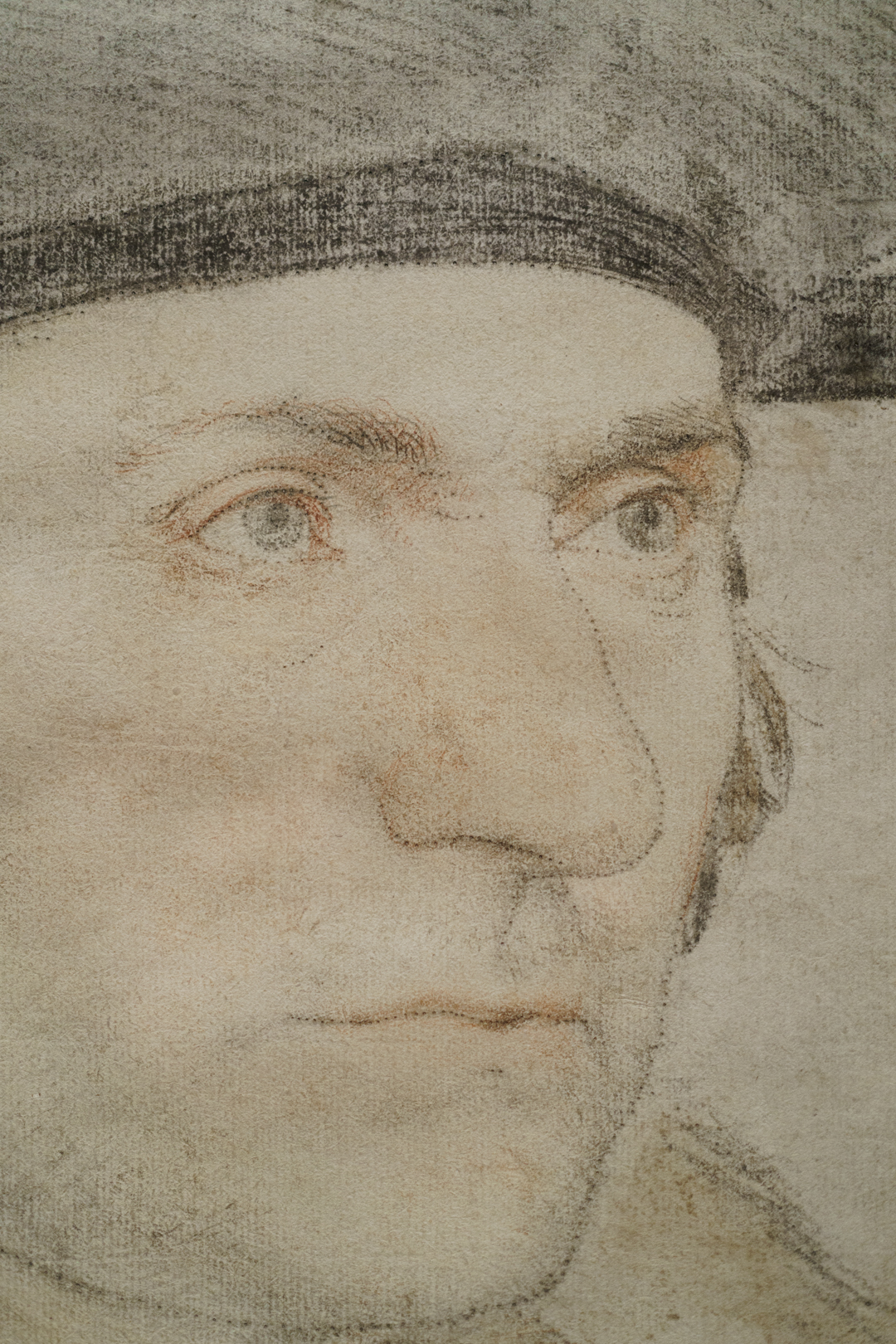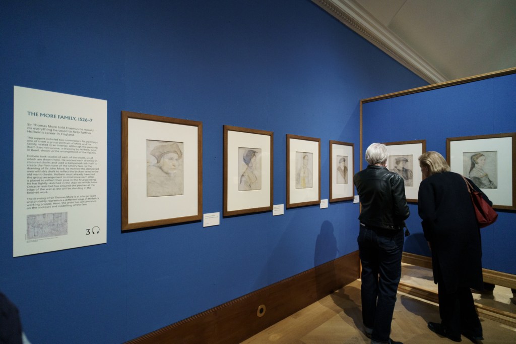 As soon as we approached the portrait drawings of Sir Thomas More’s family, it was immediately clear how big an impact he had, their likenesses practically leaping from the page, some with lovely little annotations for colours and clothing materials. In the following rooms, visitors saw Holbein’s working methods at play, first sketching in coloured chalks, adding colours and comments, and sometimes drawing extra detail studies on the side in pen and ink. You can clearly see his pragmatism to record all the details necessary to portray his sitters in paint.