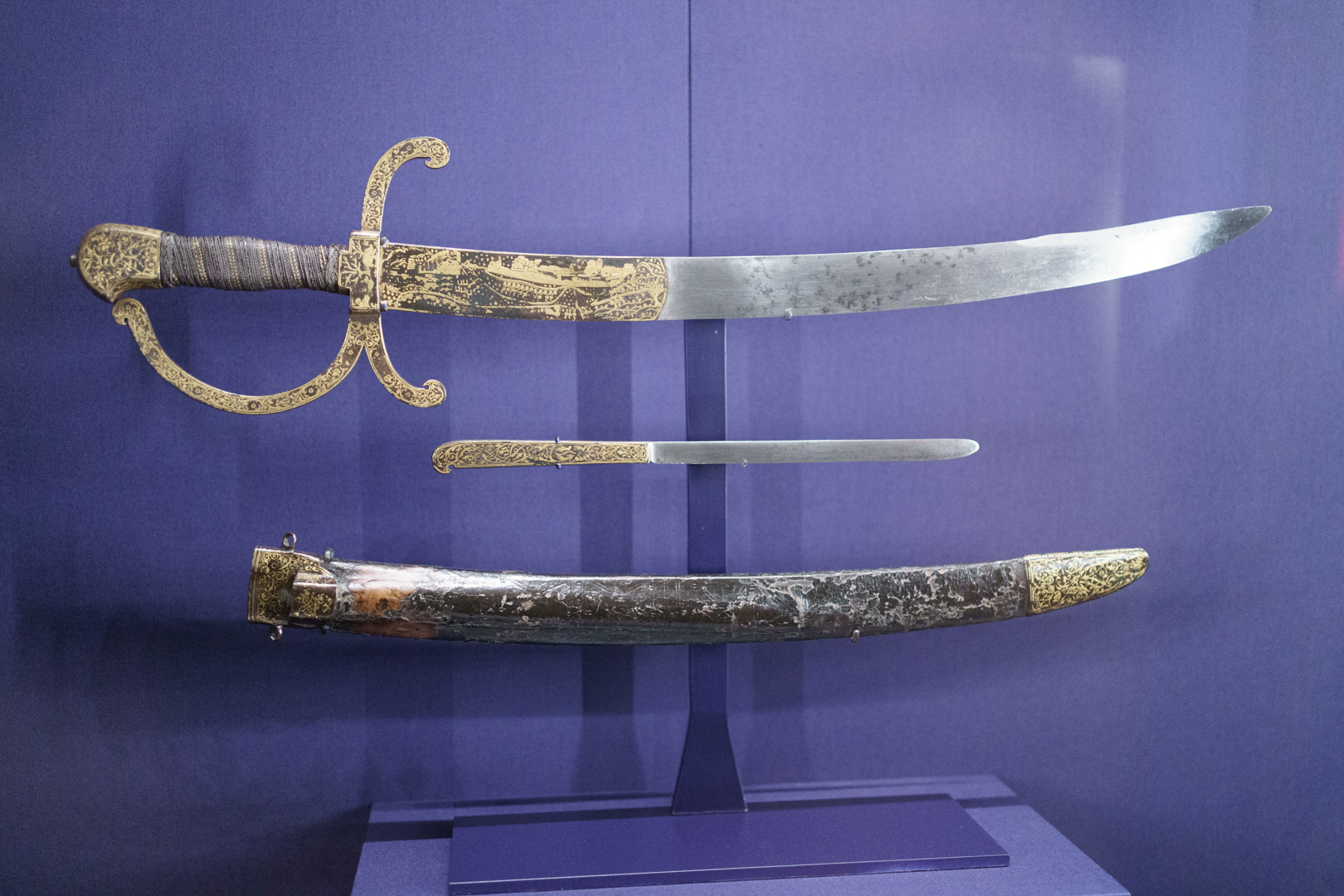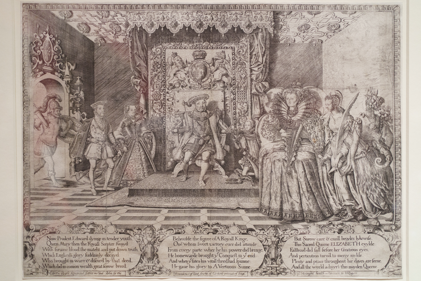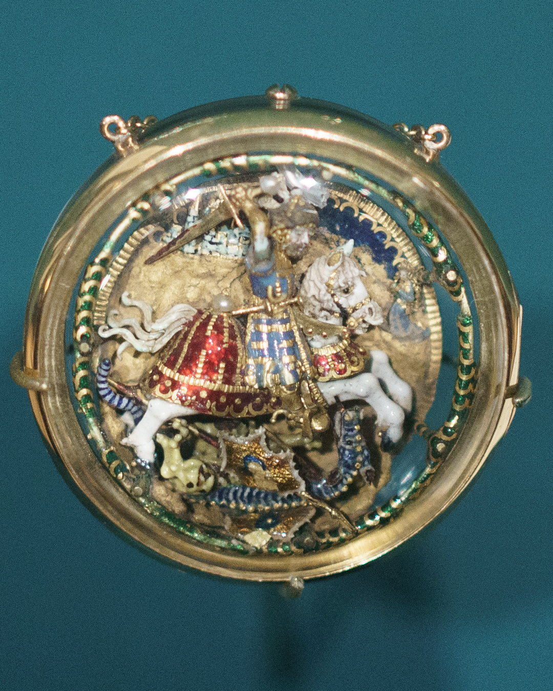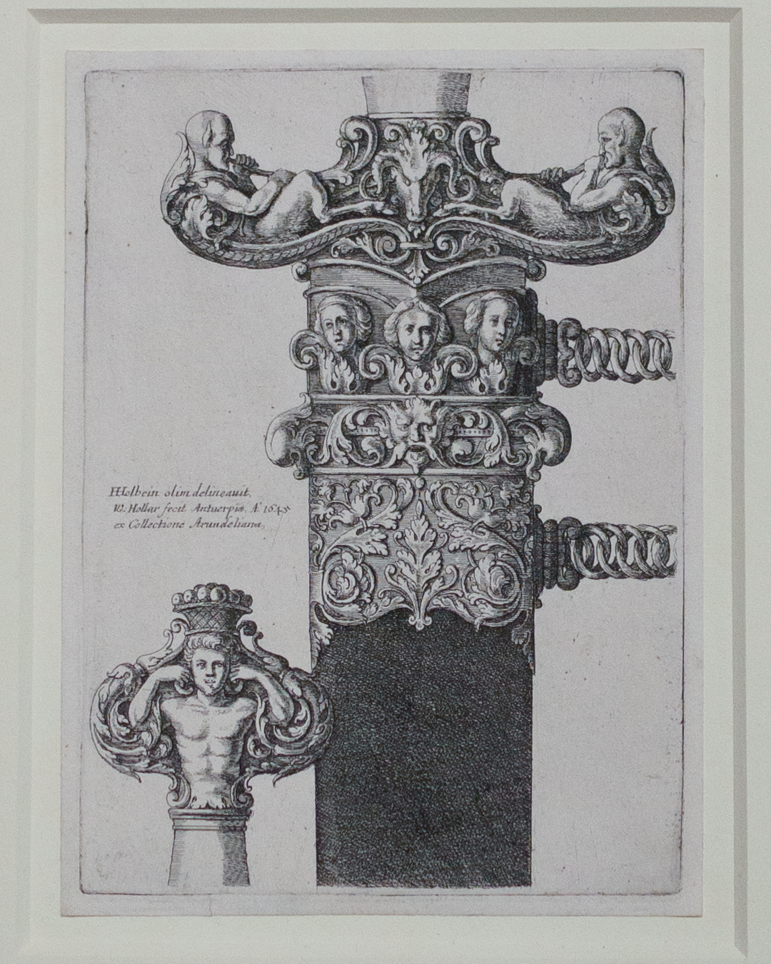 In the corridor leading up to the impressive finale devoted to the reign of Henry VIII was a little side section exploring Holbein’s involvement in designing metalwork and weaponry in his role as King’s Painter. A lot of people forget that being a court painter meant a huge range of tasks beyond just pretty portraits and decorative schemes. Innovative military knowledge was a top criterion. A transcription of Giovanbattista of Ravenna’s solicitation letter for employment in Henry VII’s court offered some insight into this (original in the National Archives: SP 1/184 f.7.)