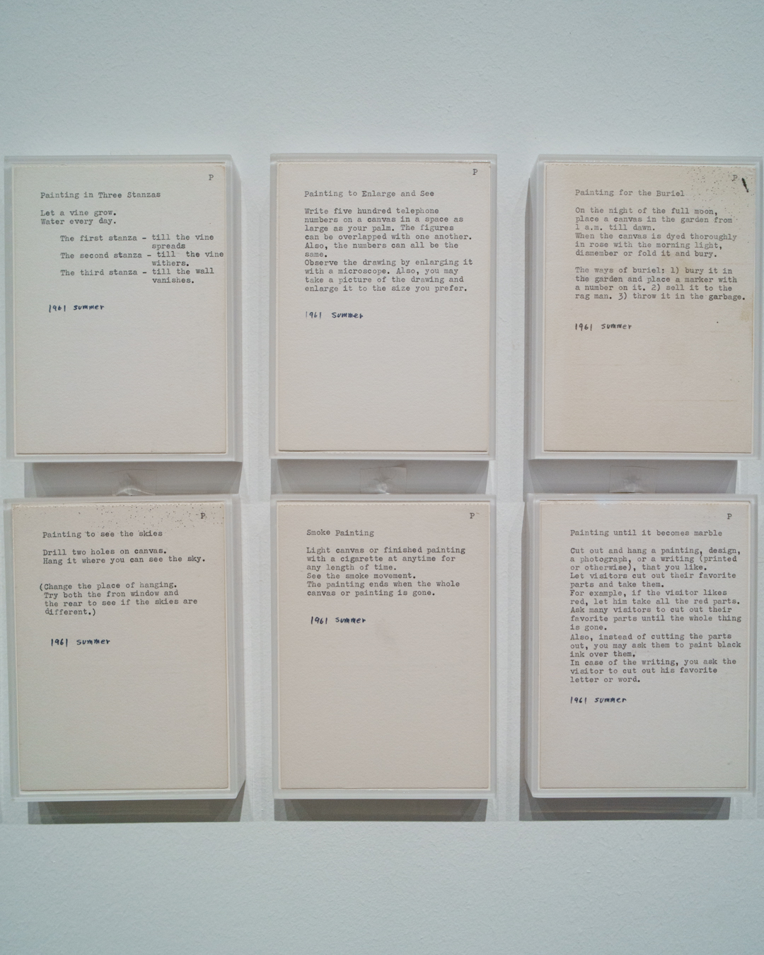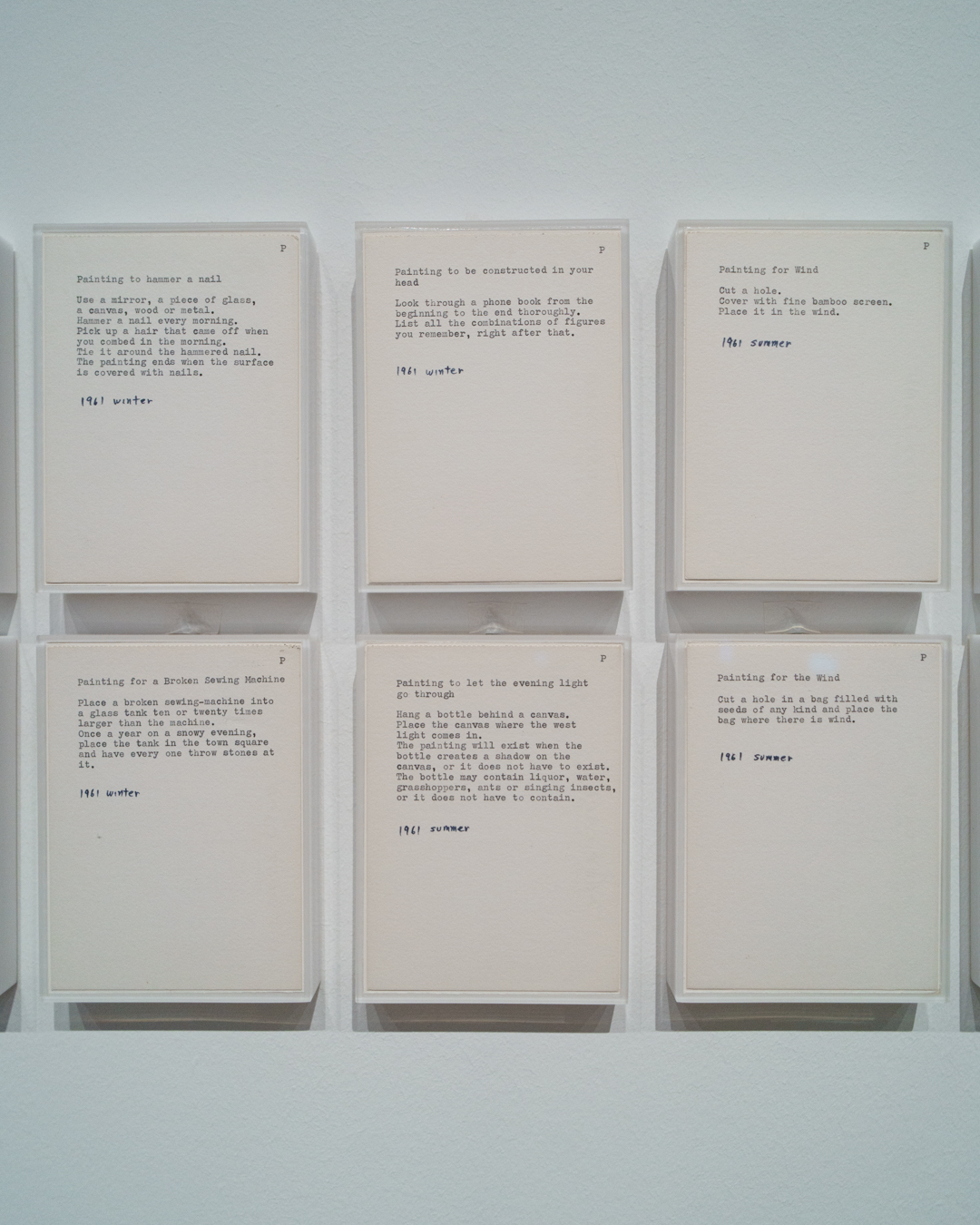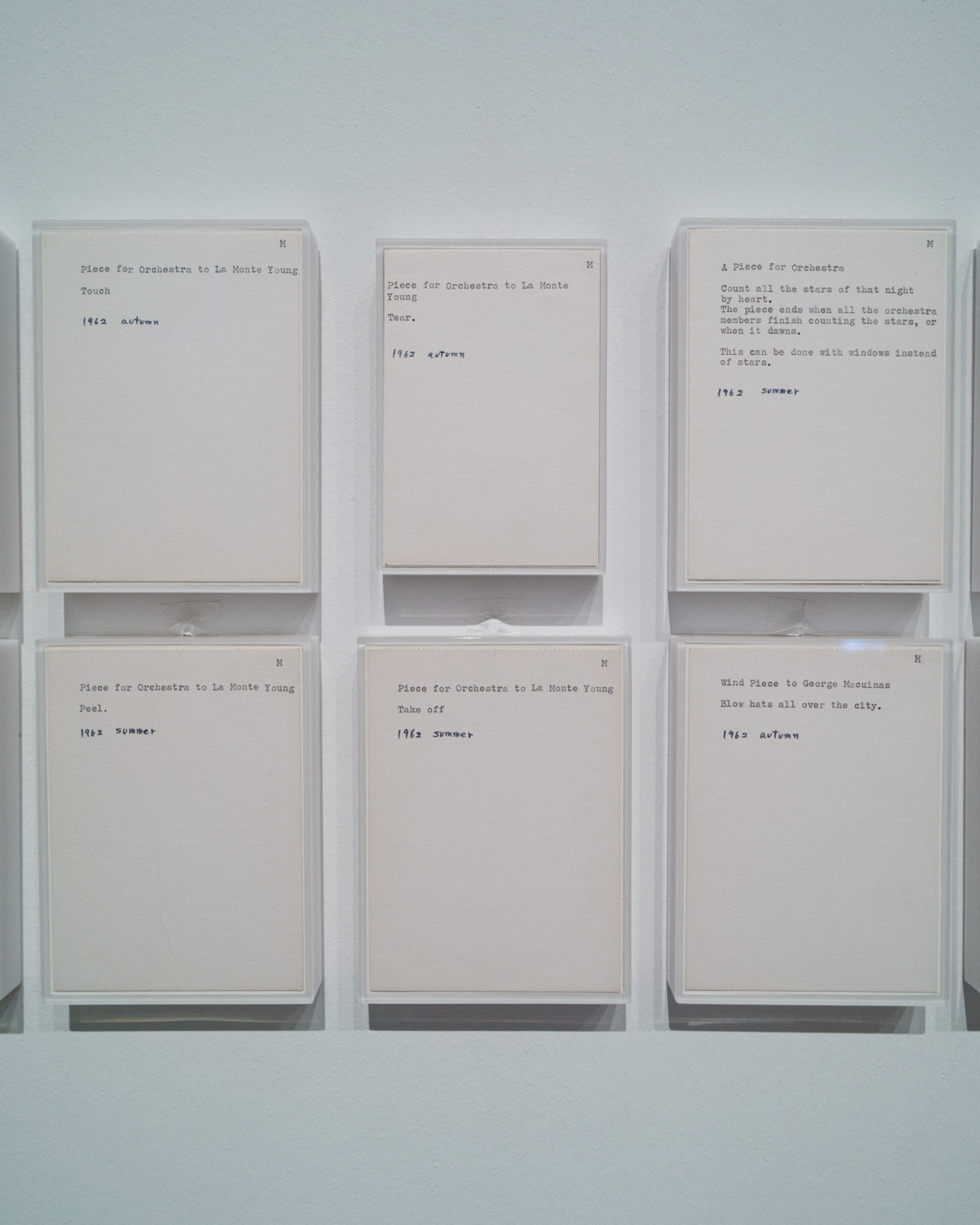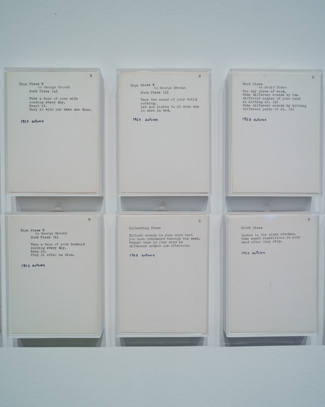 From what I could surmise from Ono’s diverse output represented in this exhibition, her practice was quite community-focused and participatory, imbuing them with spiritual concepts into a kind of life ritual. The Grapefruit series is perhaps the best demonstration of this, filled with all sorts of meditative instructions that occasionally require one or more participants to activate. I gave White Chess Set a try (‘For playing as long as you can remember where all your pieces are’); it was a hilarious adventure.