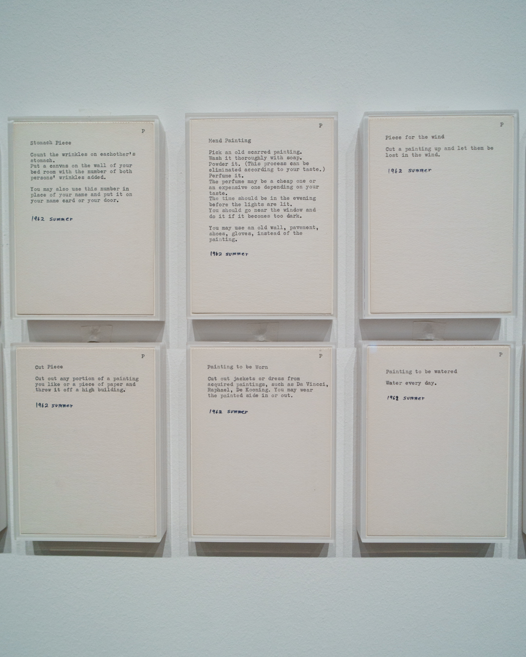 As other art enthusiasts probably did, my first awareness of Ono’s work was through Cut Piece, a performance piece in which she sat on a stage in a suit with a pair of scissors in front of her, inviting the audience to cut pieces of her clothing off. It’s a powerful work that foreshadows Marina Abramović’s Rhythm 0 10 years later as a social experiment to test the public’s willingness to humiliate someone in a violent act.