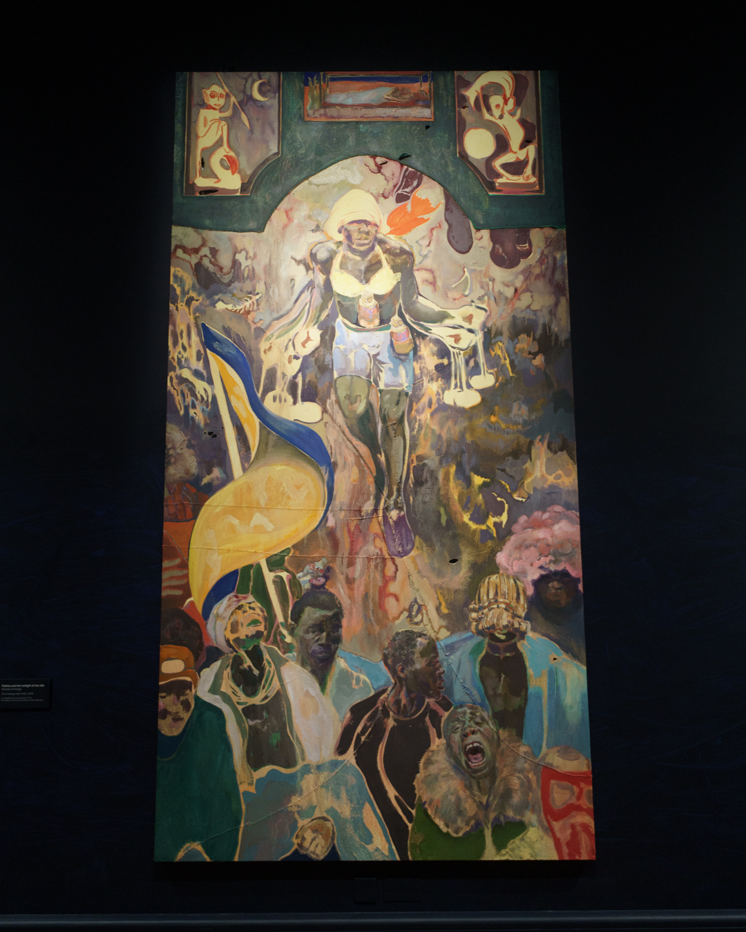Many familiar artists are represented. Claudette Johnson’s large pastel and gouache portraits are bold and impressive; Michael Armitage’s paintings on Lubugo bark cloth instantly iconic; Barbara Walker’s Vanishing Point series timeless and thought-provoking. There’s even a whole room devoted to Kerry James Marshall’s works that establish dialogues with the Western pictorial tradition. Meanwhile, Wangechi Mutu’s cast-bronze Dreamer unexpectedly recalls a beheaded St John the Baptist while referencing the African masks that fascinated modern artists in the 20th century.