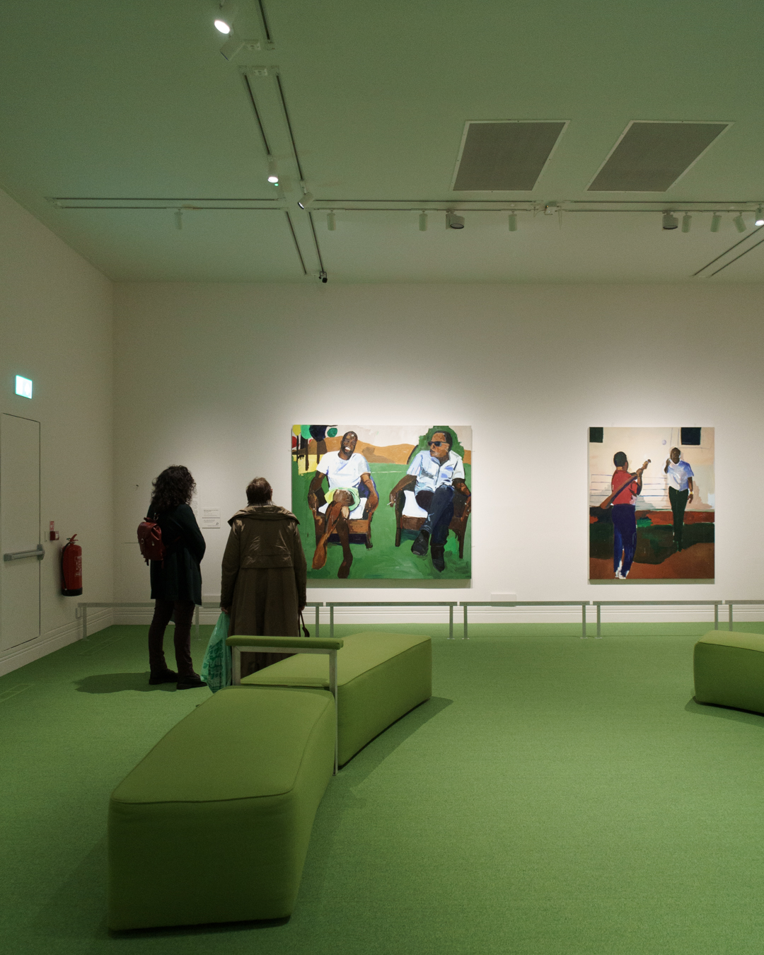 What really intrigued me, however, was the exhibition design in the last three rooms. While the early rooms looked like your typical gallery space, the later ones employed industrialist, curved metal barriers and even AstroTurf in the final room, which played off some of the paintings’ botanical elements but also their balance of domestic and public spaces.