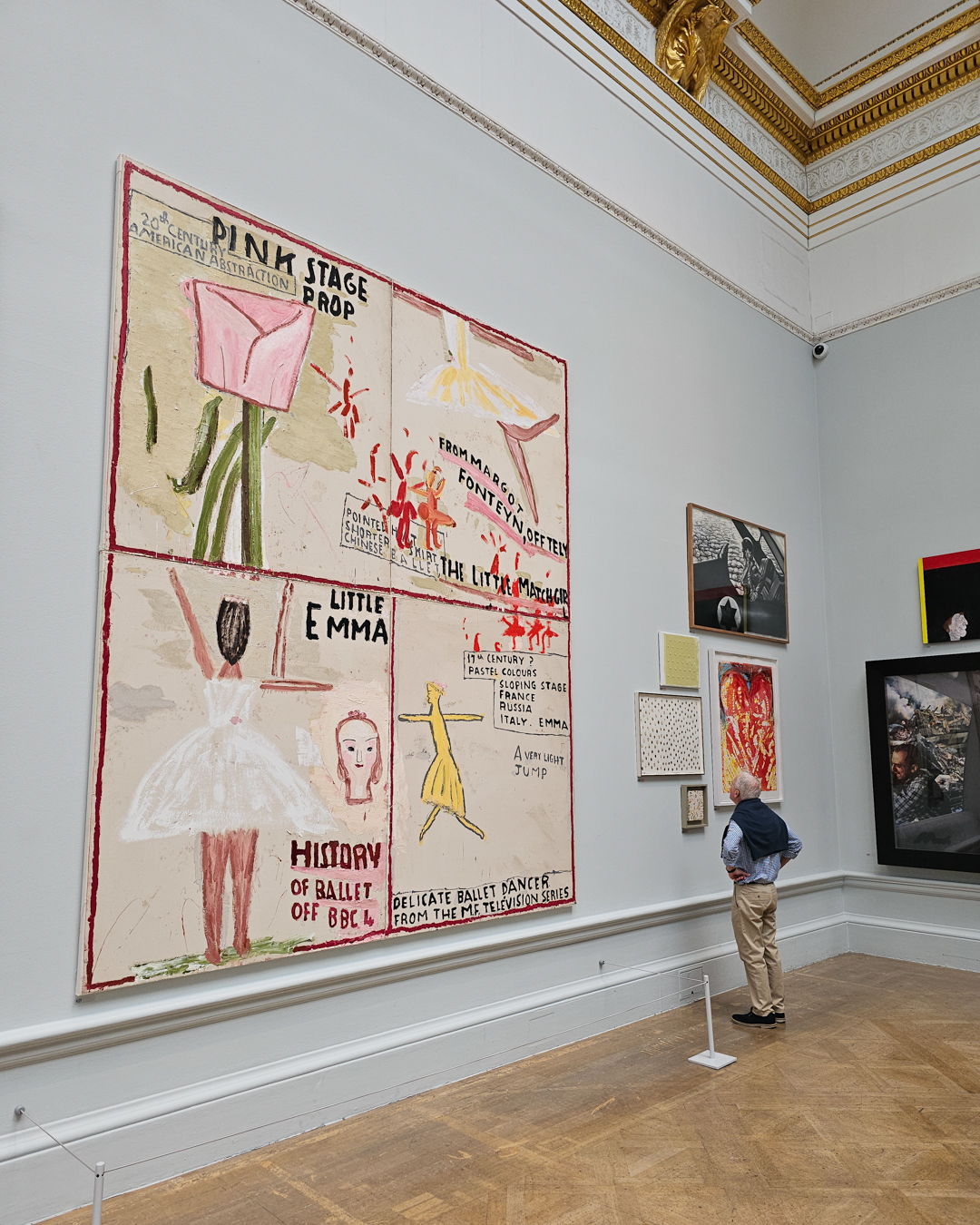 In the Large Weston Room curated by Cornelia Parker, three freestanding displays have been added to maximise the number of framed works that could be seen at eye level, enabling closer appreciation of the textures and details of certain prints and smaller pictures. It’s a fun, practical way to shake up this room, which in previous editions has typically had a stronger sculptural presence.