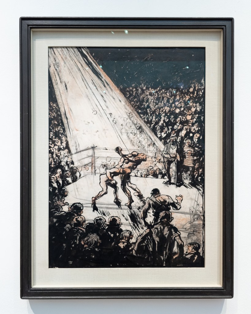 Frank Brangwyn, The Knockout, c.1919, ink, red and black chalk on paper (Jonathan Clark Fine Art, stand 11)