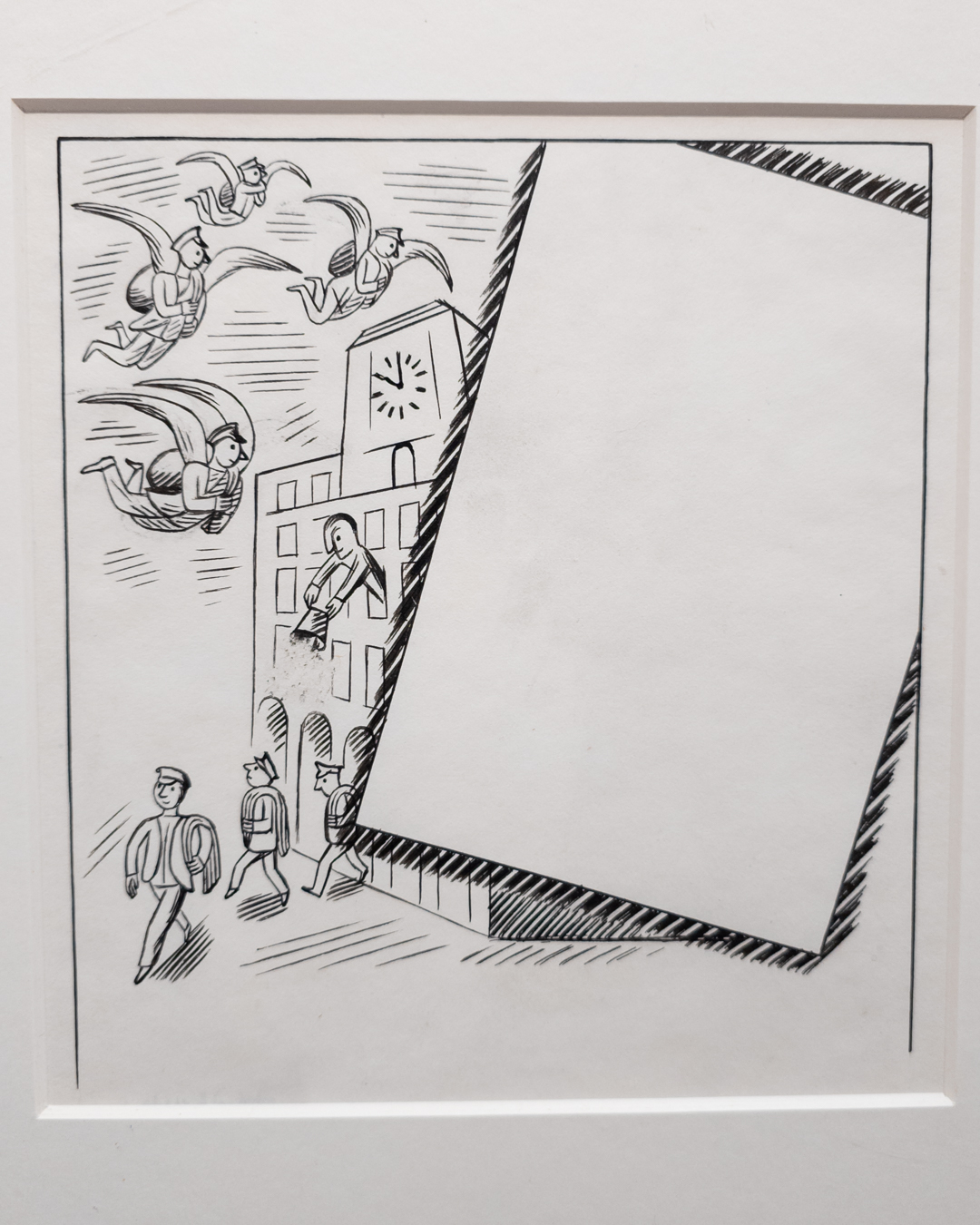 Edward Bawden, Too Much Hadham – a Design for Shell, 1934, pen and black ink (Harry Moore-Gwyn, stand 26)