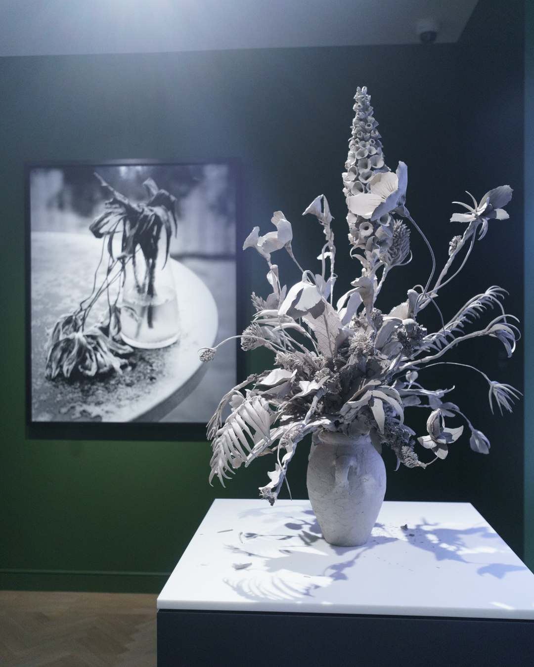 Spread across four stories of gallery space, the current exhibition – The Laughing Stock of the Heartless Stars – is a rich presentation of works covering 500 years of art history from Hendrick Goltzius to Ann-Marie James. For a collection so eclectic, I was amazed to find an impressively coherent display. The ground floor examines still lifes and botany, featuring clay sculptures by Phoebe Cummings, photography by Nobuyoshi Araki, and a wonderful painting of tea roses by Henri Fantin-Latour.