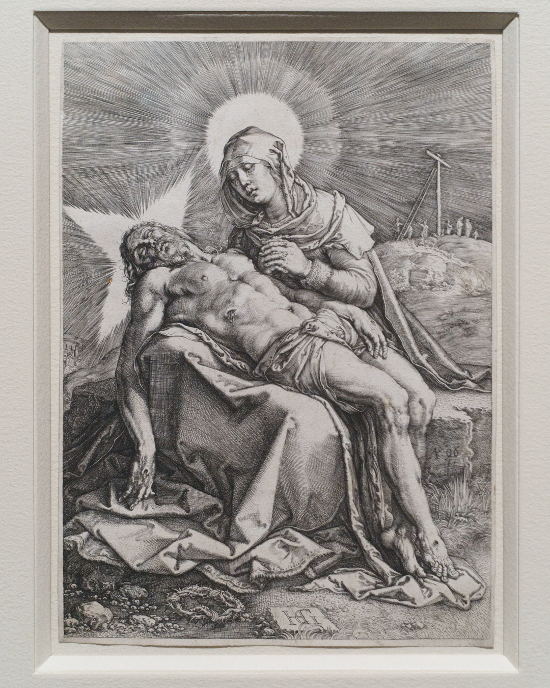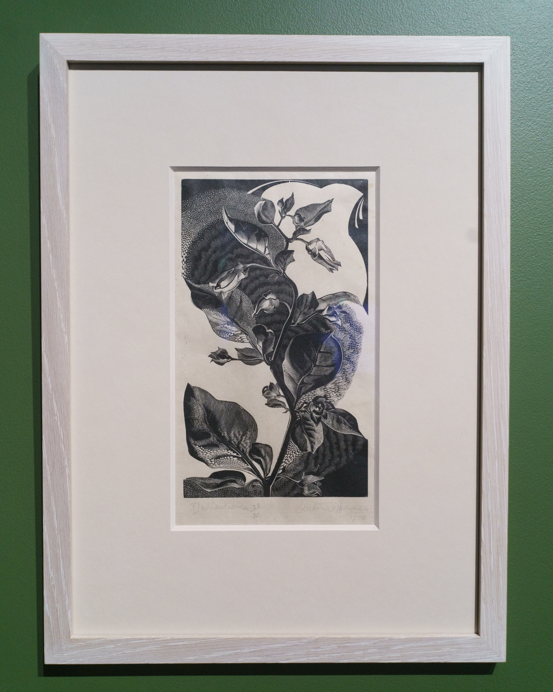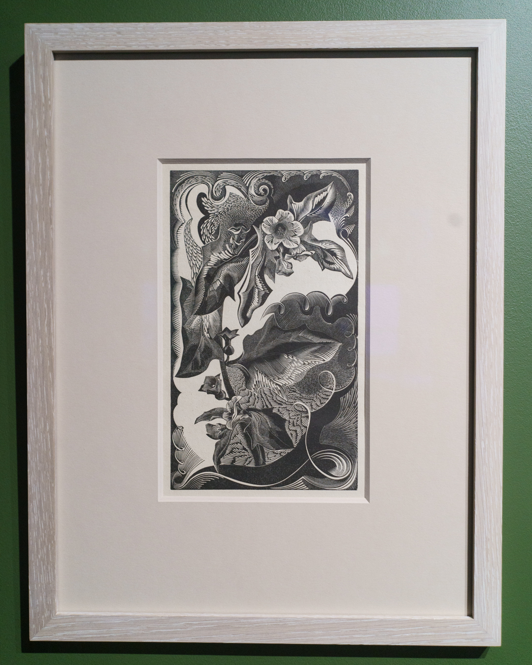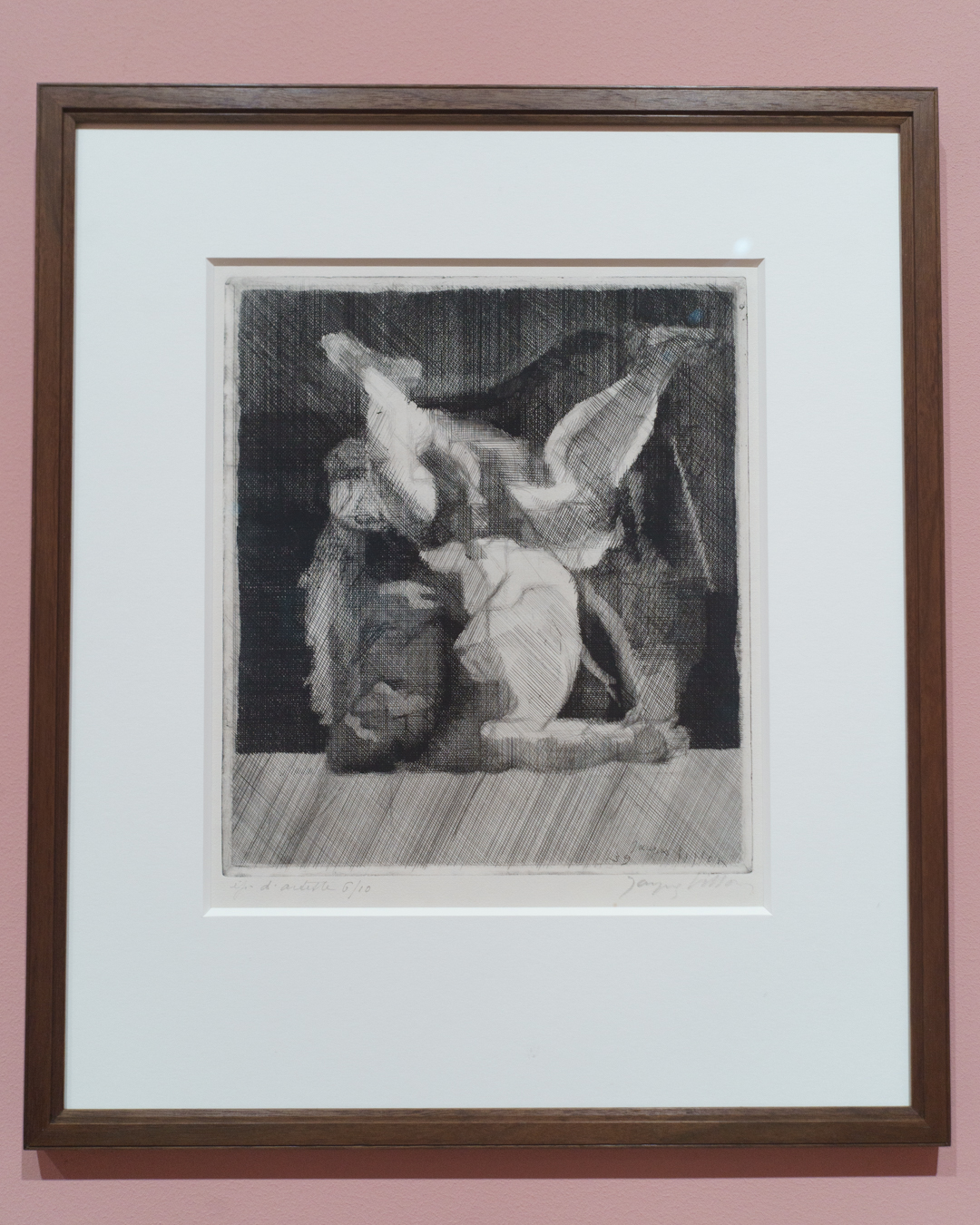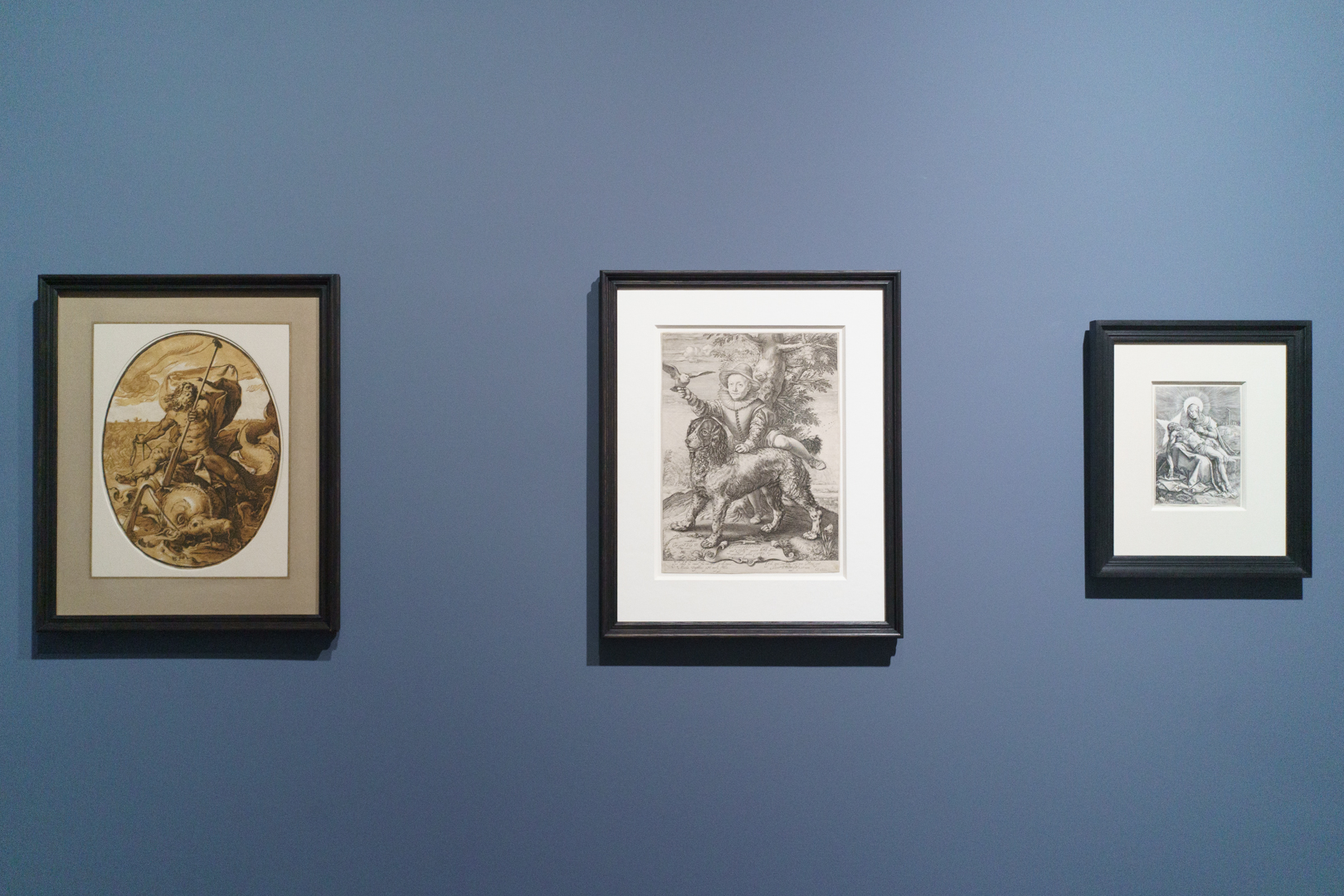 For example, I did not anticipate seeing wood engravings by Monica Poole and Gertrude Hermes, a relatively unfashionable area of print collecting due to the technique’s association with book illustration. Yet Brown is also exactly the kind of artist who can properly appreciate a wood engraver’s mastery of line, in the same way Goltzius’ burin carved the image of a Pietà (1596), a prized engraving that usually hangs in Brown’s studio.