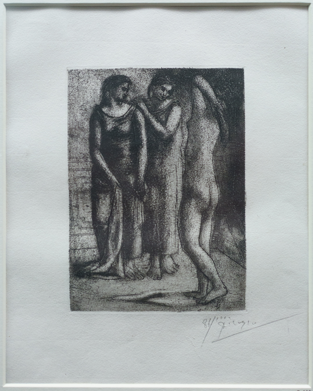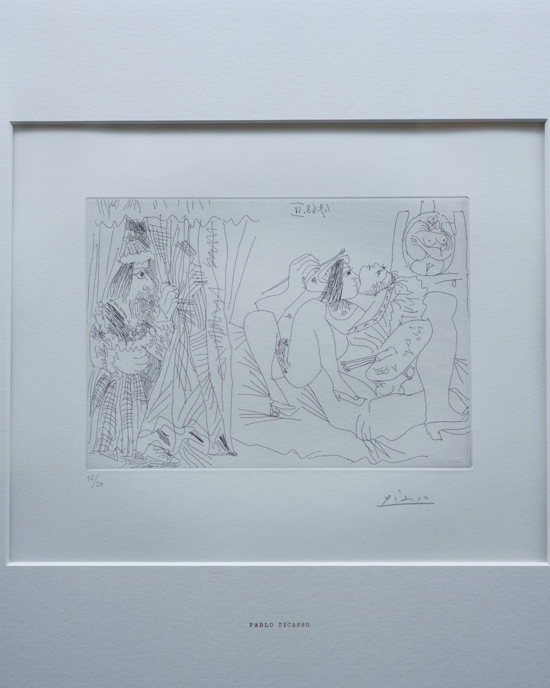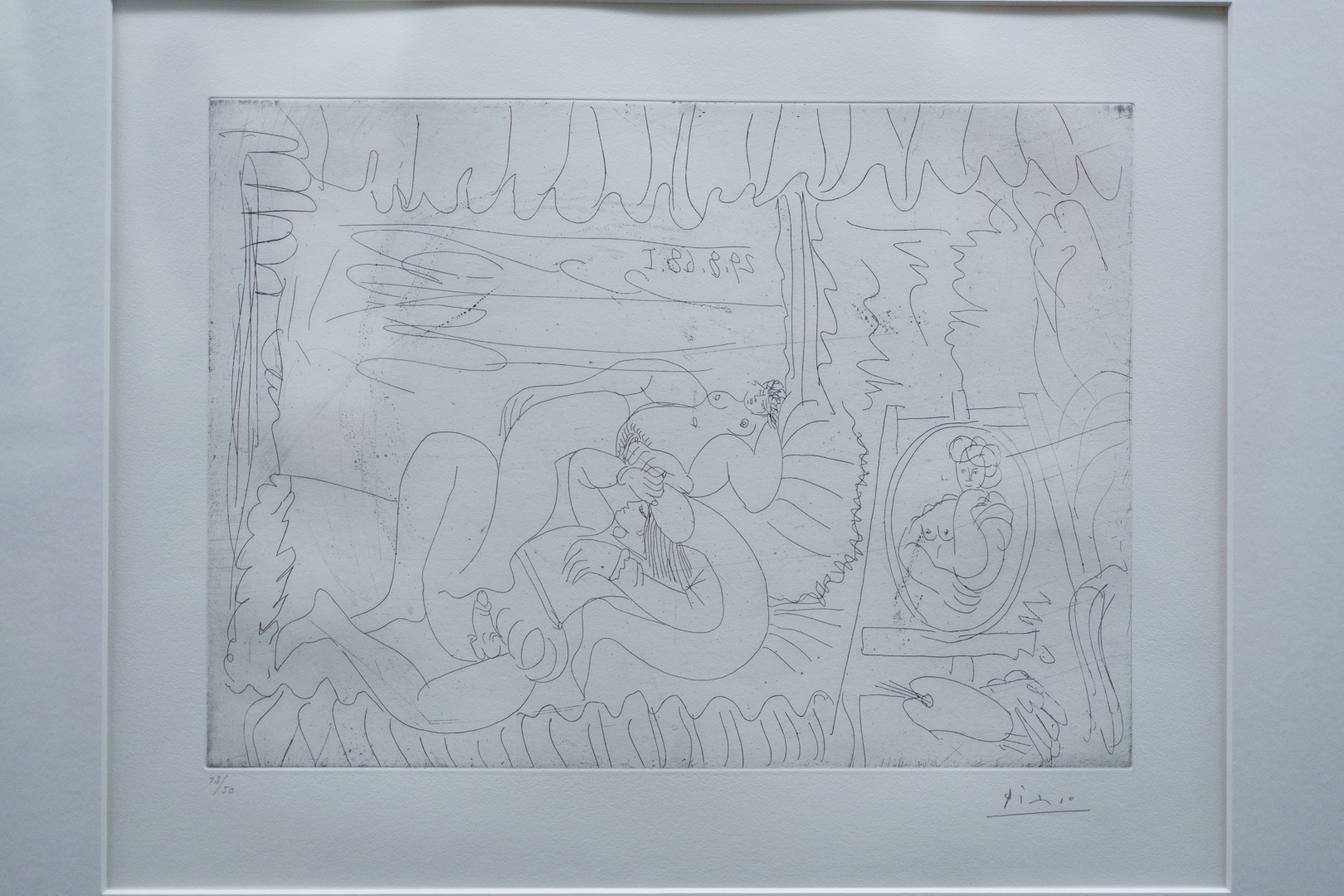 Finally, in a conclusion highlighting the 347 Suite – including a section on Raphael and the Fornarina – one can find several sugar aquatints printed with a greased-stained plate, leading to some very expressive, blotchy surface tone effects.