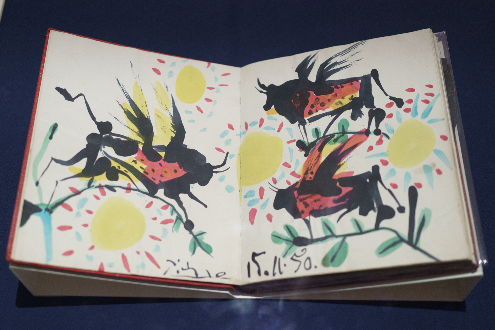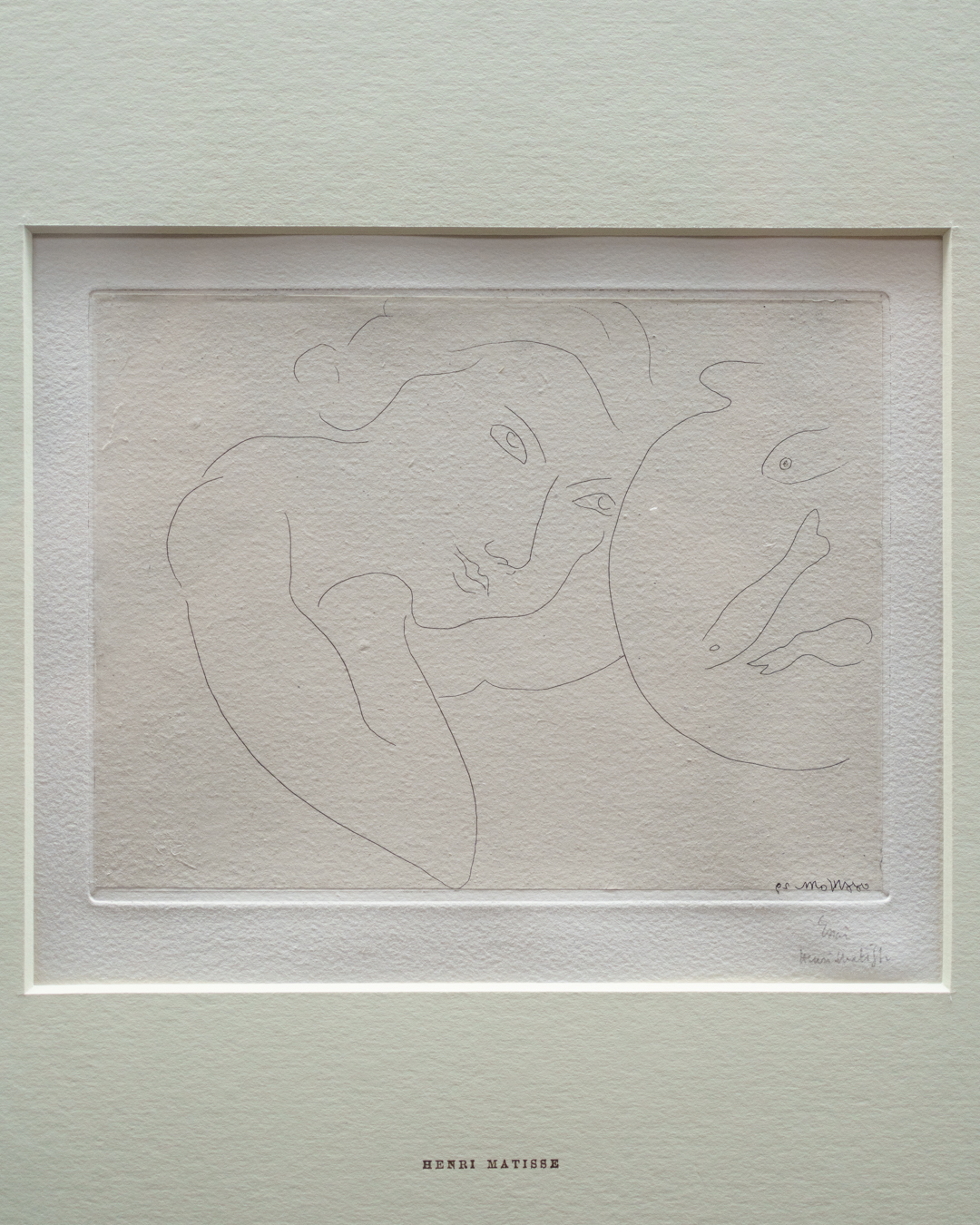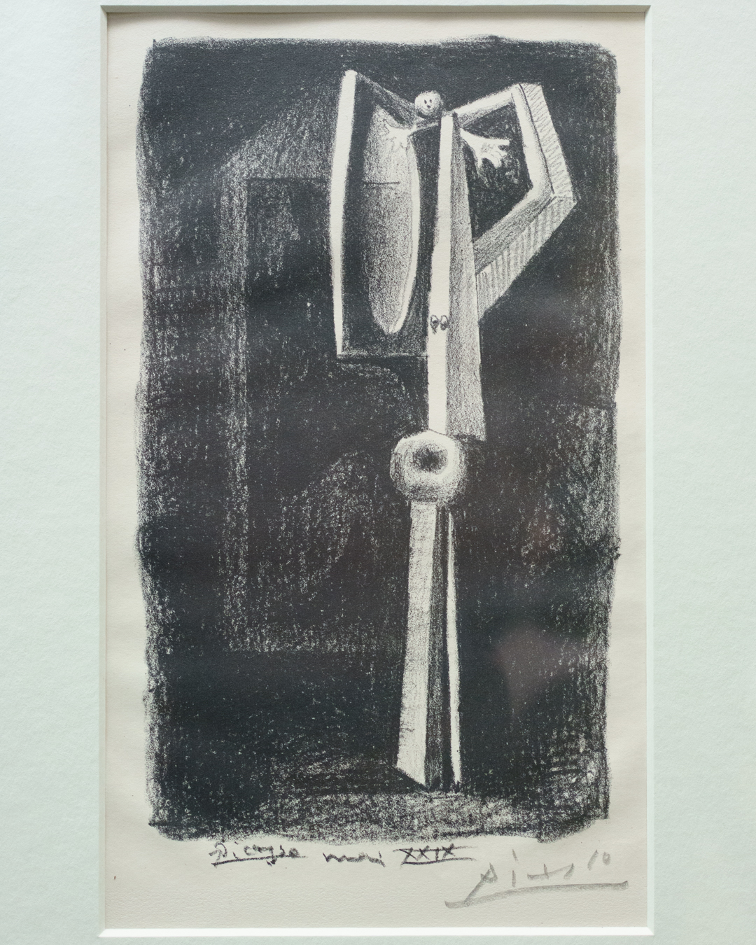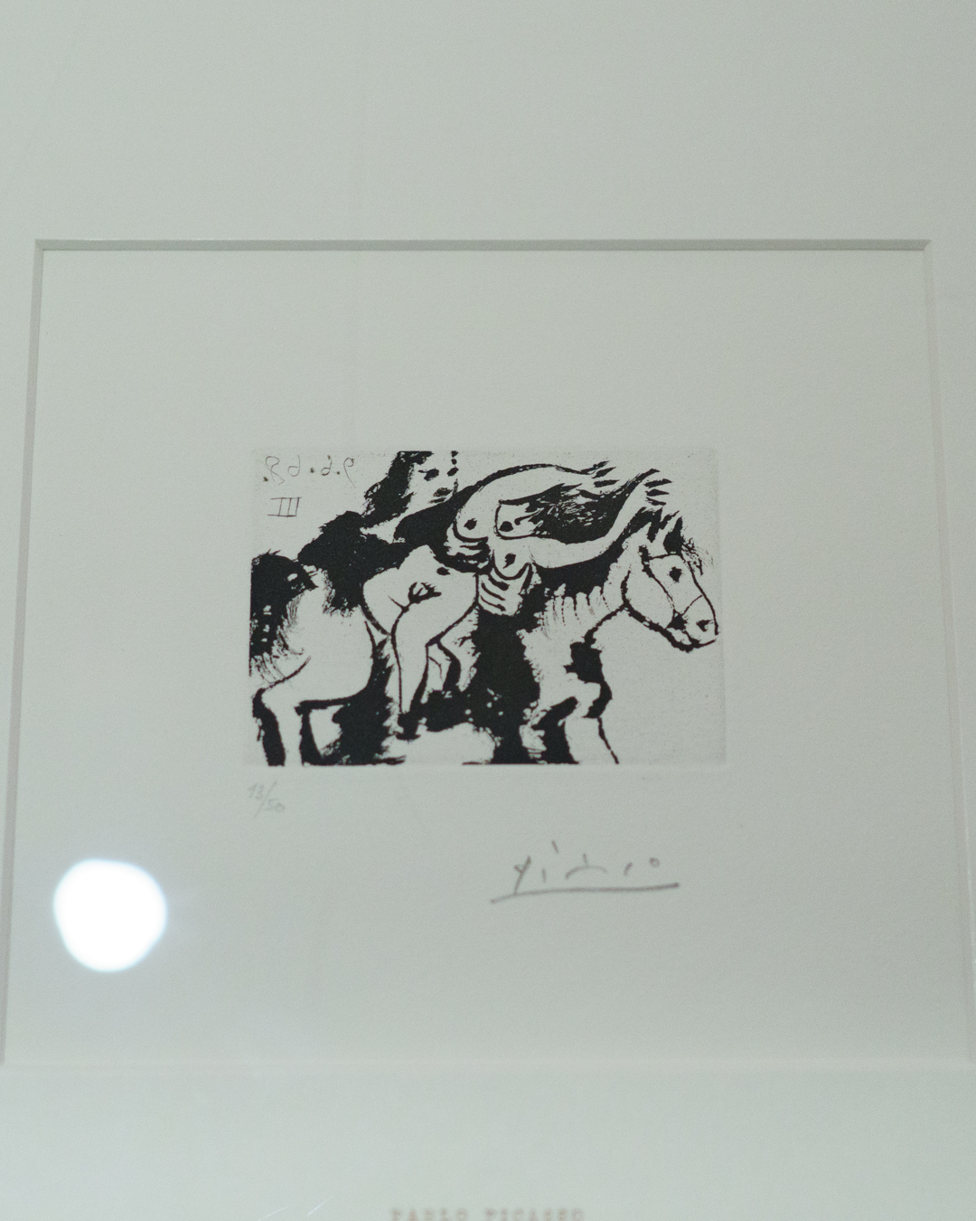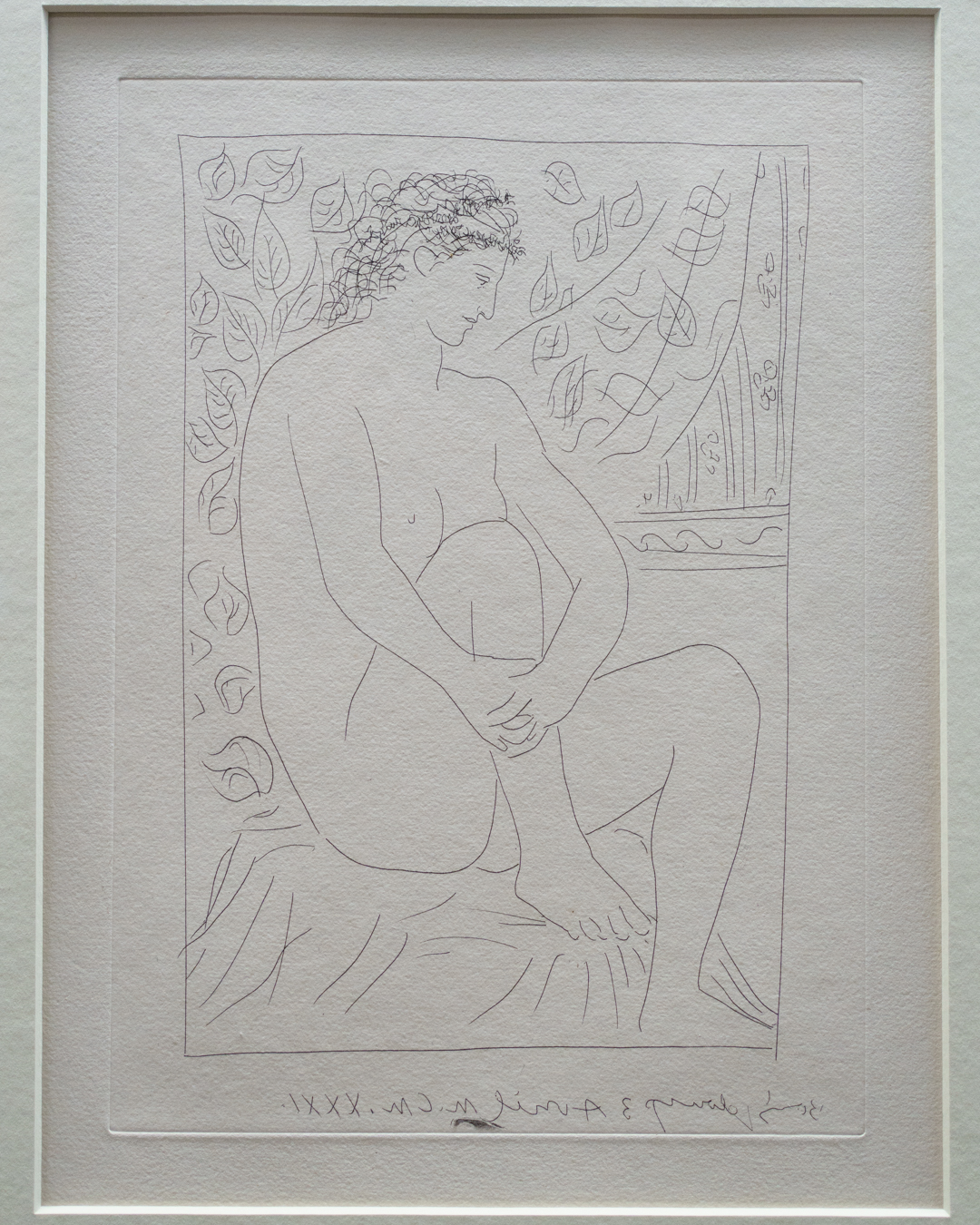 The early drypoints and etchings are fascinating, allowing us to see Picasso’s response and assimilation of the styles of Georges Braque, Henri Matisse, and Rembrandt. At times, the prints respond to objects in the museum, such as an ancient Greek bronze mirror decorated with goddesses in a pure outline style. The Minotaur prints are also well contextualised with one of Francisco de Goya’s La Tauromaquia prints (1815-16) and an amphora depicting the story of Theseus and the Minotaur.