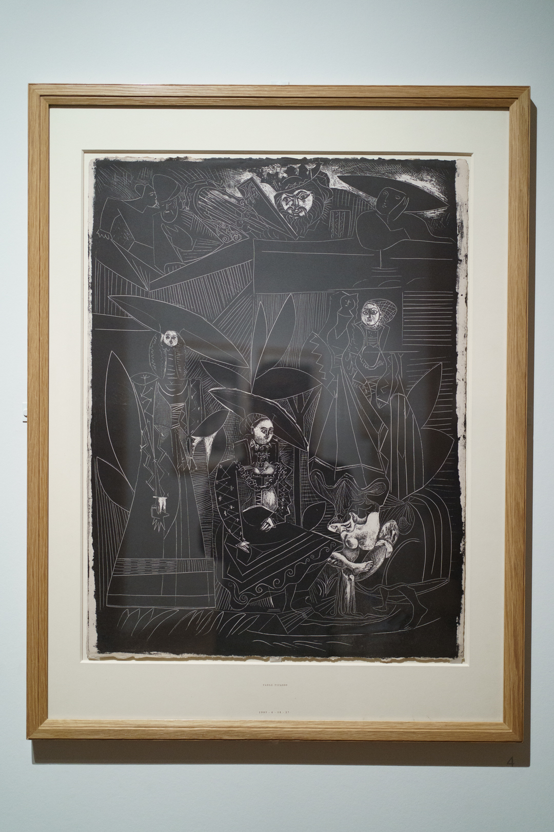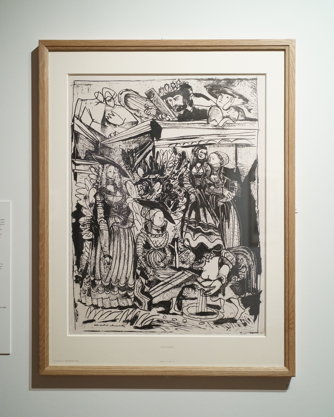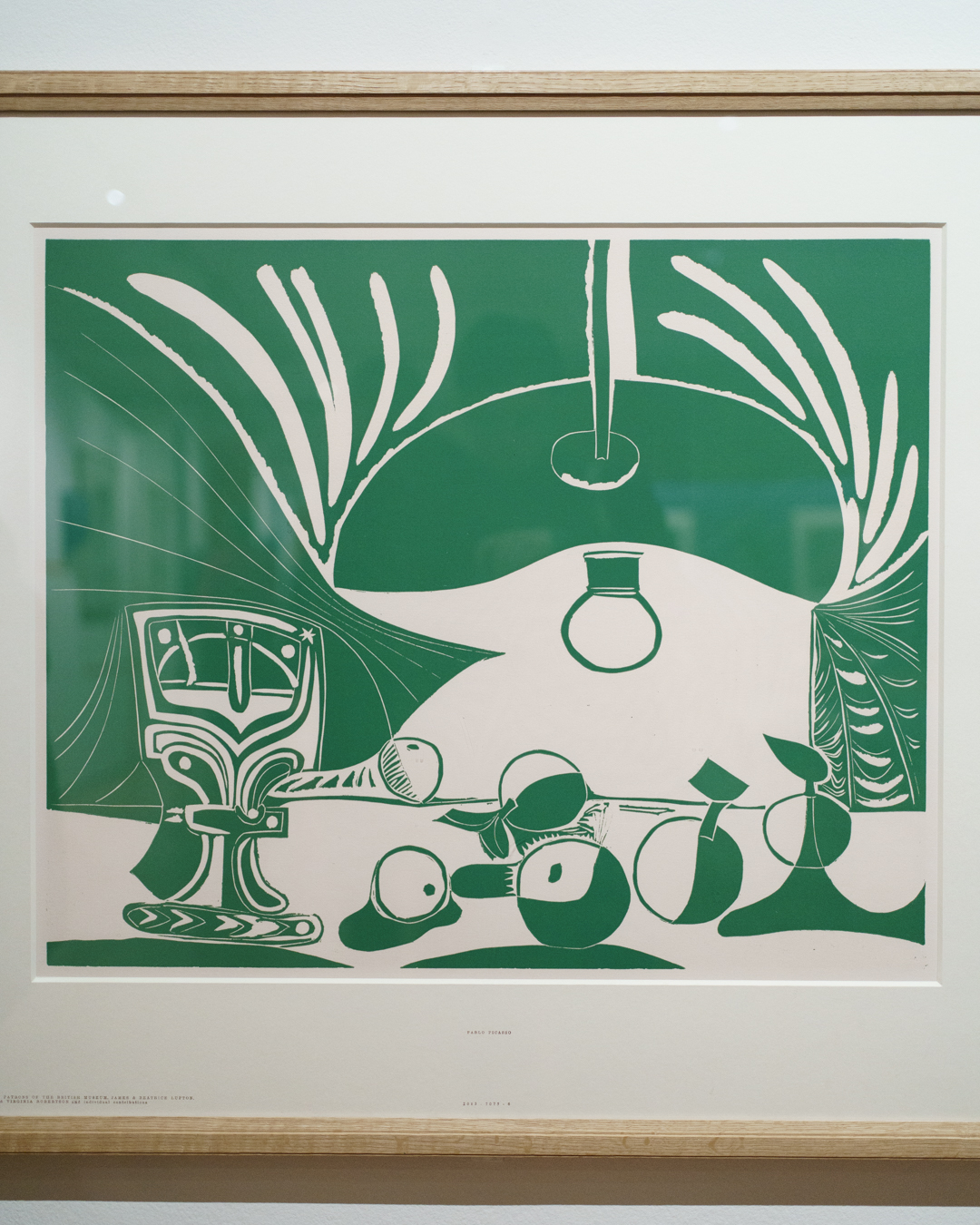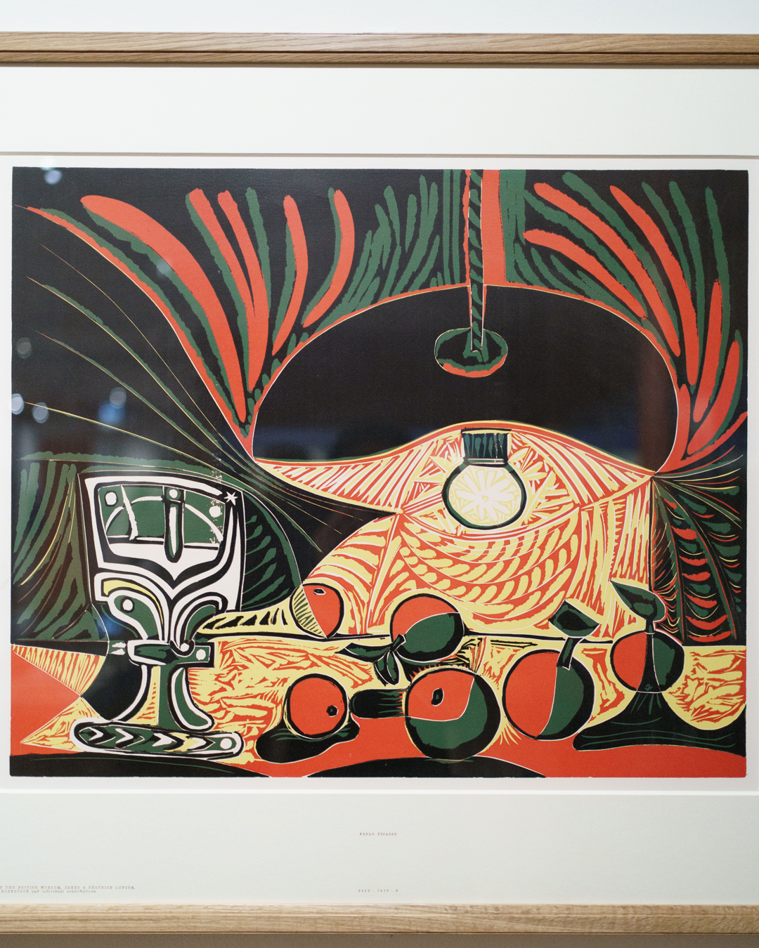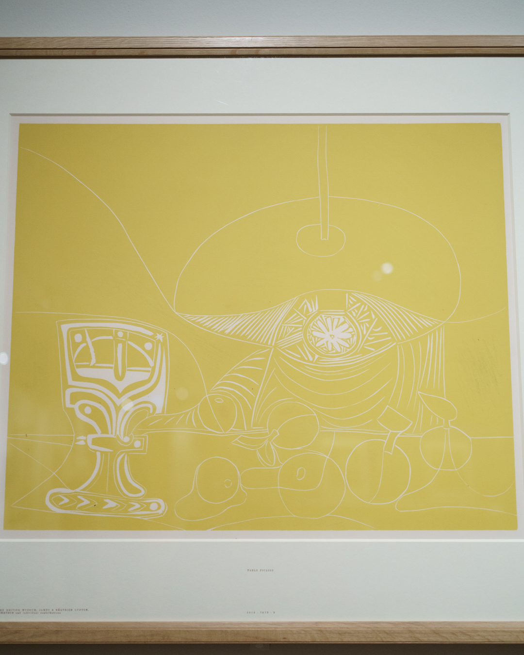 There is also a nod to Picasso’s variations after the Old Masters; three lithographs of David and Bathsheba illustrate progressive transformations of a Lucas Cranach painting. On the other side, a wall of five linocuts chart the successive states via the reduction linocut process to produce the multicoloured Still Life Under the Lamp (1962) at the end.
