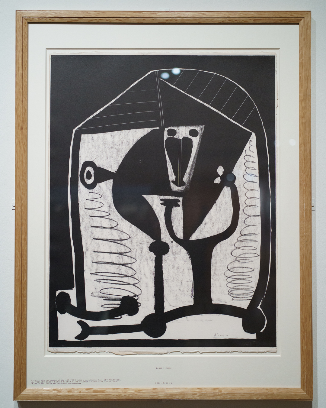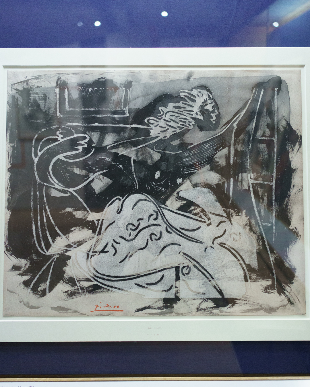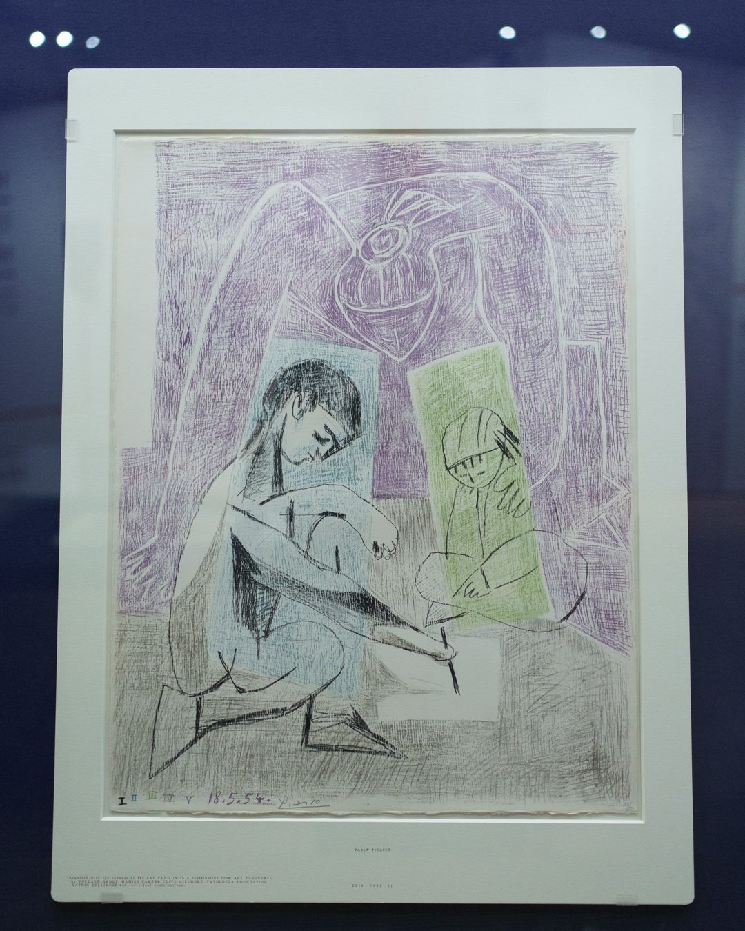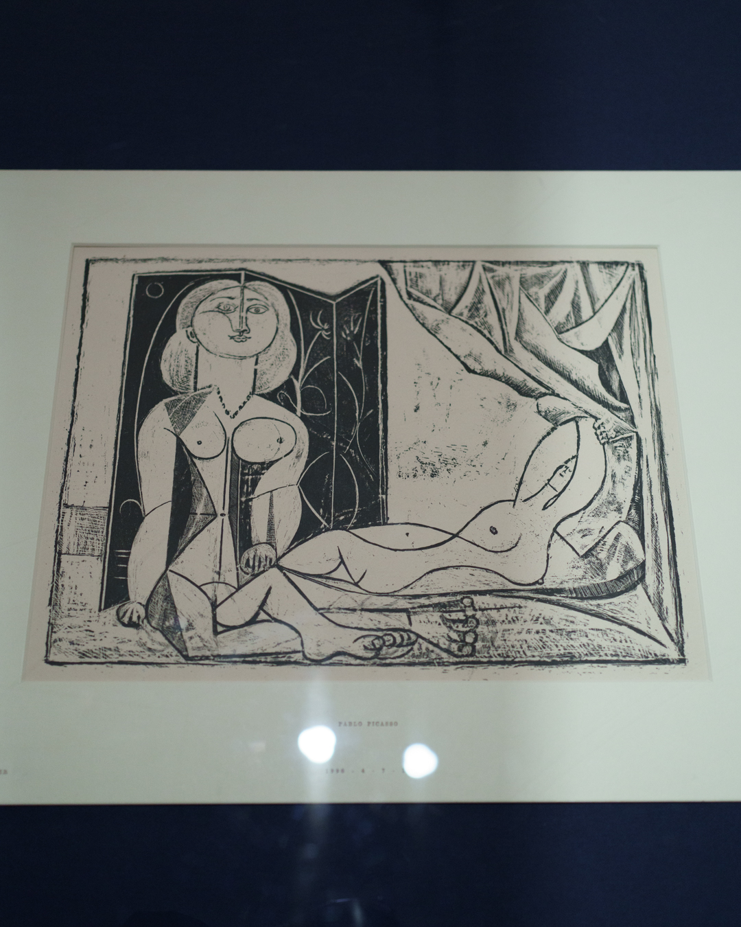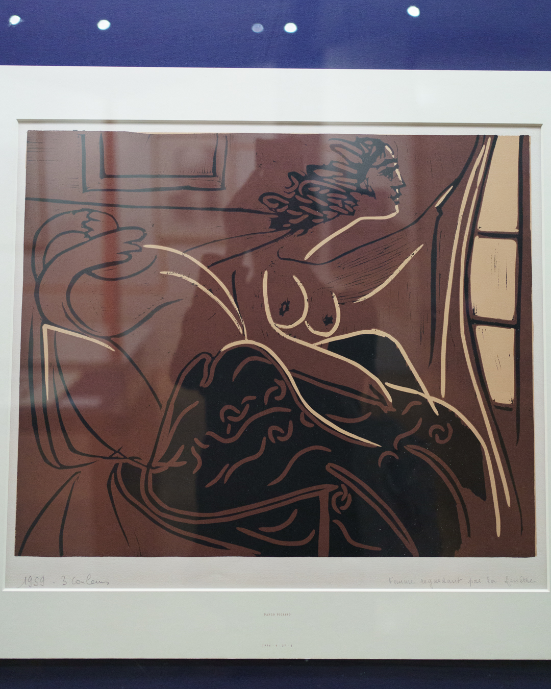 There is also a nod to Picasso’s variations after the Old Masters; three lithographs of David and Bathsheba illustrate progressive transformations of a Lucas Cranach painting. On the other side, a wall of five linocuts chart the successive states via the reduction linocut process to produce the multicoloured Still Life Under the Lamp (1962) at the end.