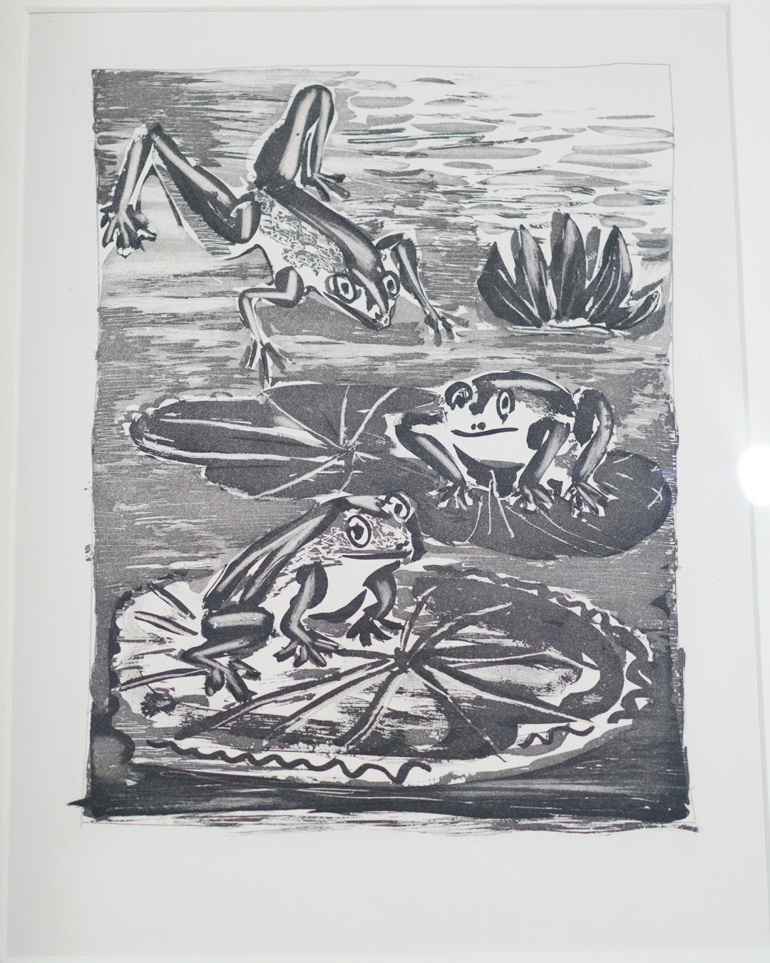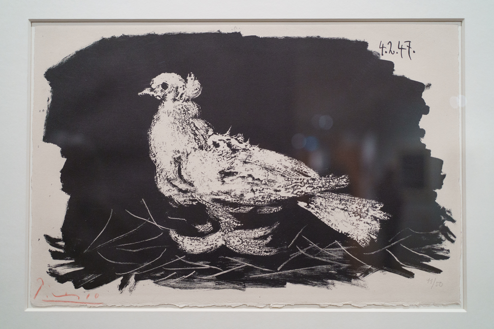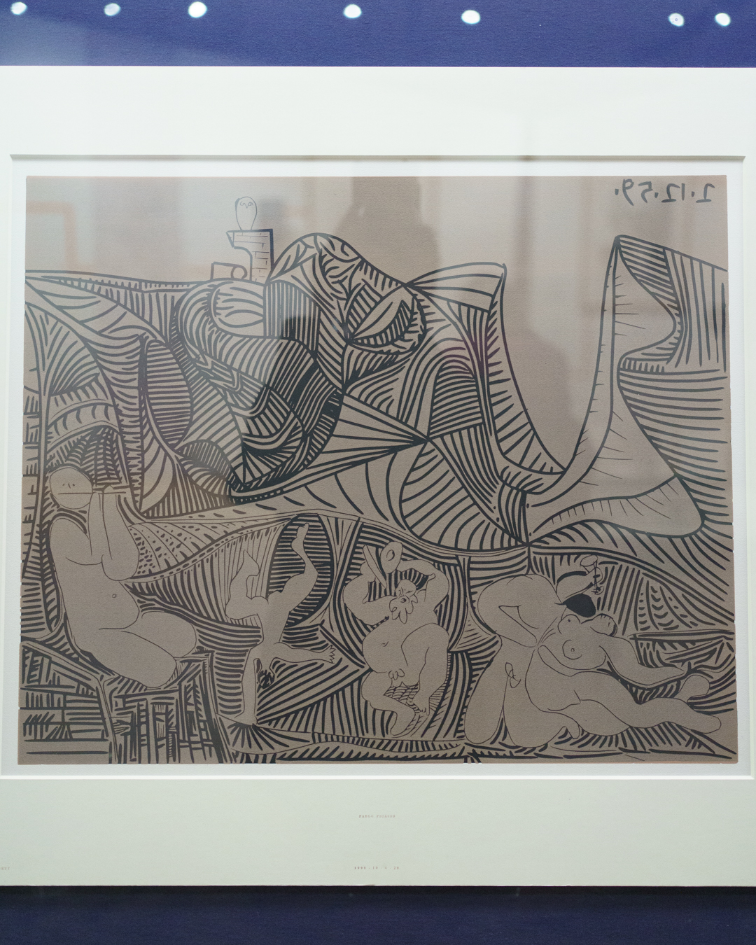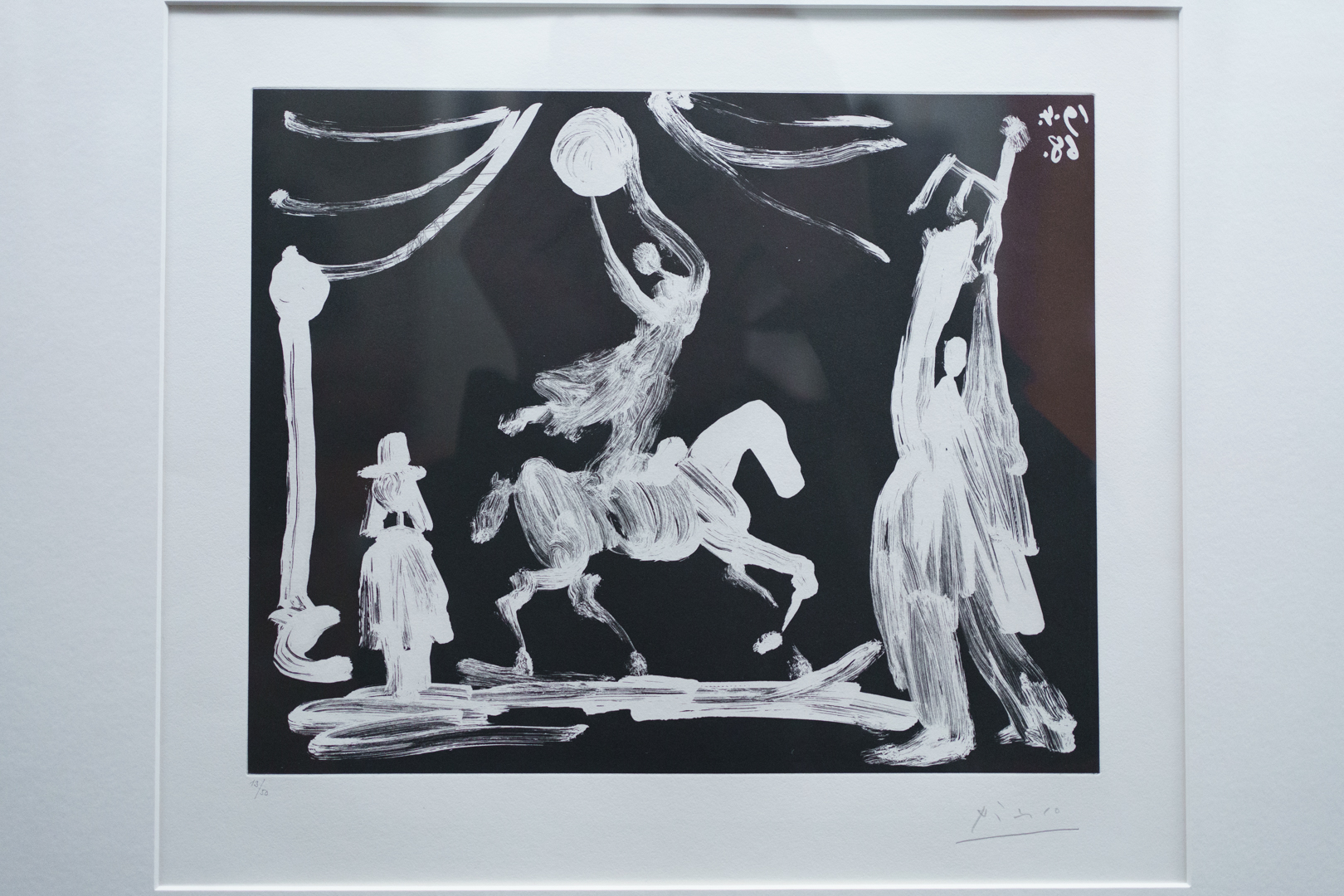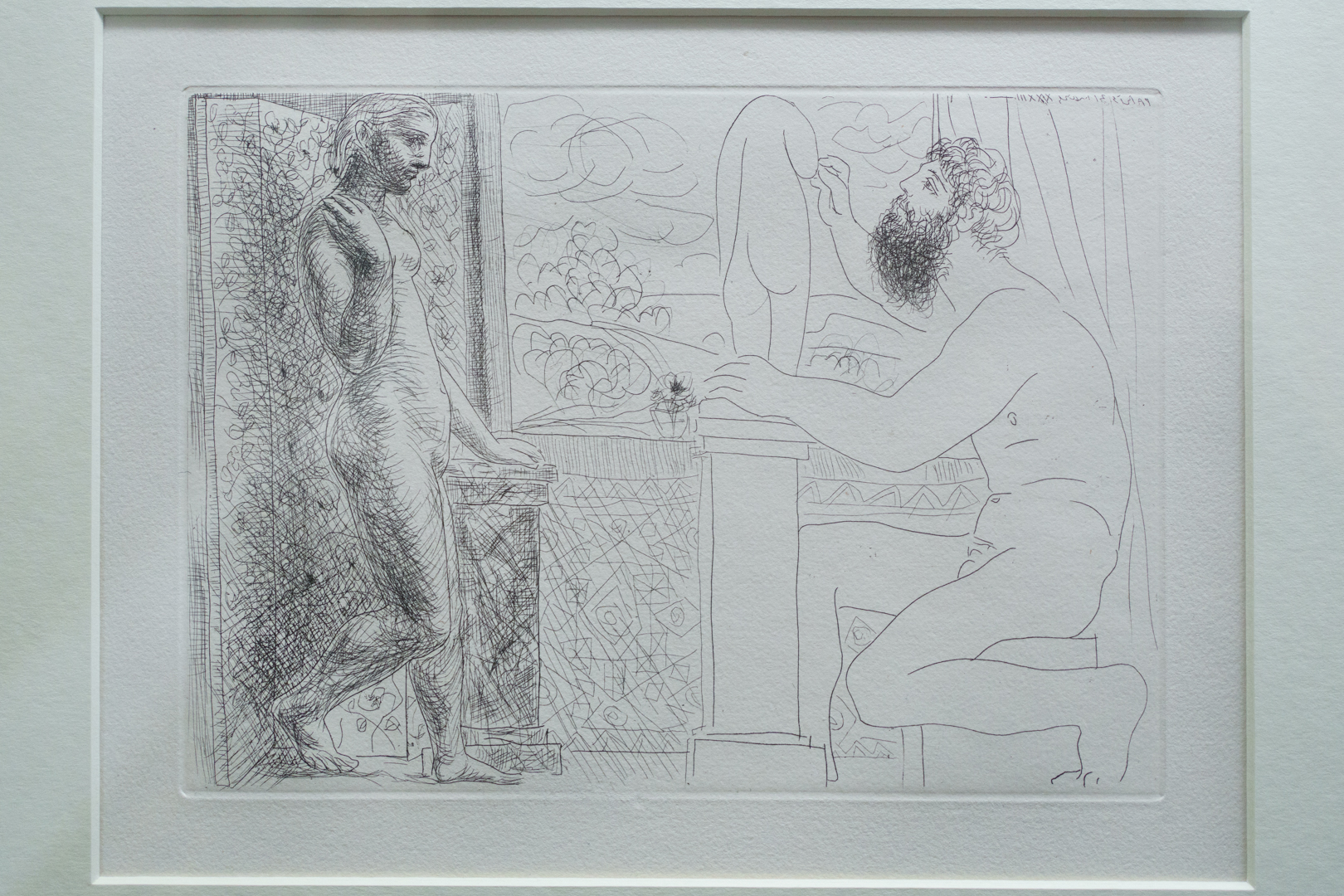 There is also a nod to Picasso’s variations after the Old Masters; three lithographs of David and Bathsheba illustrate progressive transformations of a Lucas Cranach painting. On the other side, a wall of five linocuts chart the successive states via the reduction linocut process to produce the multicoloured Still Life Under the Lamp (1962) at the end.