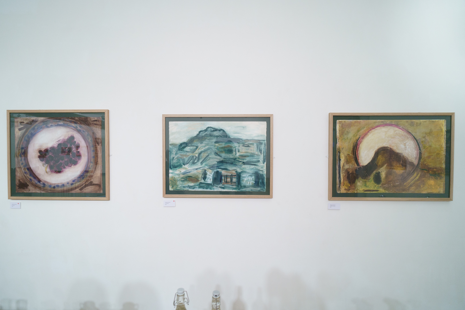 These still lifes are wonderful counterparts to his anti-war pieces inspired by his experiences growing up in wartime Britain. One pastel drawing 1945 features a fighter plane flying over a bridge, its surface built up with haunting hues of red, green, and greyish blue. Nearby, a top-down view of a plate of grapes and a mountainous landscape partially obscuring a giant full moon form an unlikely pair united solely by their shared geometry. Across other works, his use of white paint has a delineating purpose that forces us to consider the effects of light, shade, and texture, whether we are looking at a nude body or the sails of a ship.