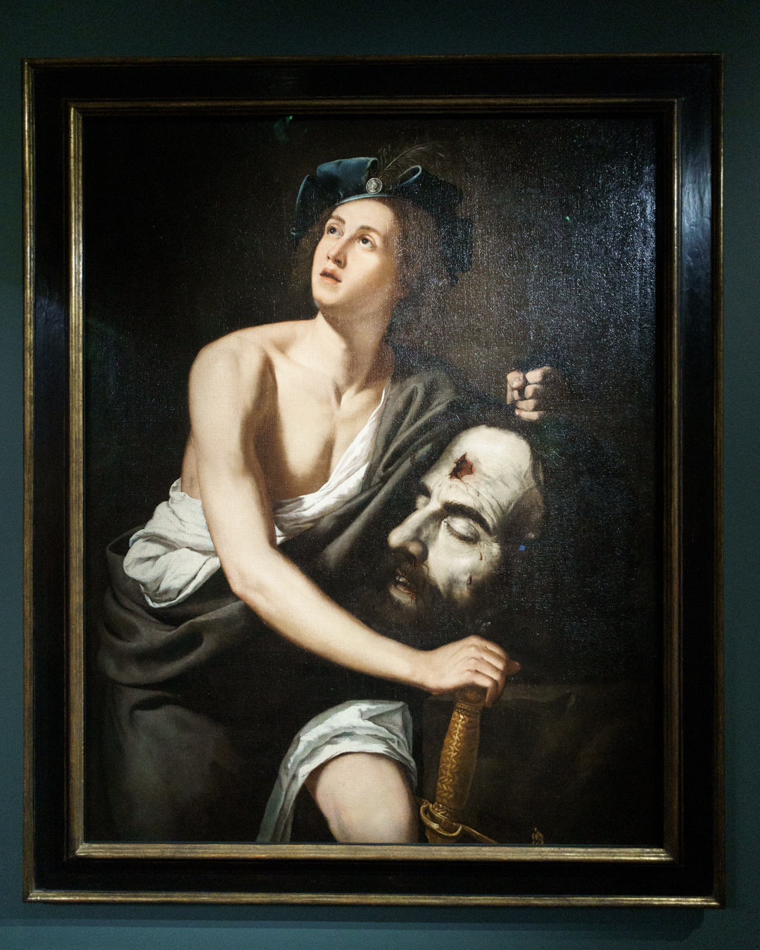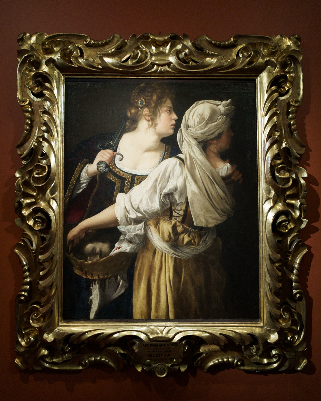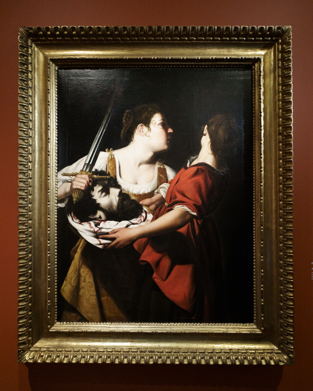 Since the exhibition makes no specific mention of her well-known collaborators, this may offer an explanation for the uneven quality of the works presented, especially in her later years. This is noticeable in the seventh room which is devoted to portraits of mythological and religious heroines, as well as mentioning her Naples workshop from 1630 onwards, and the need to reuse compositions to meet demand.