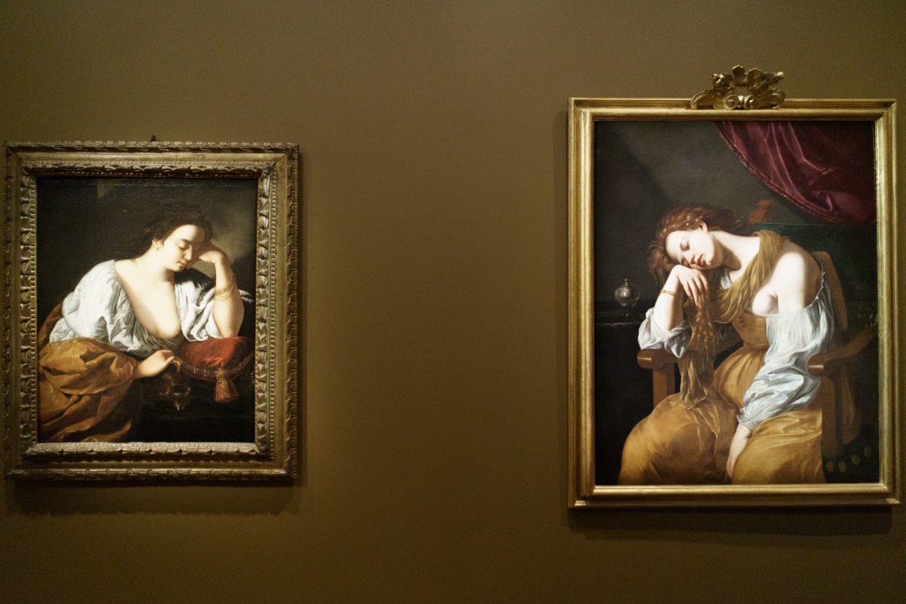Although the drapery in the fictive portraits often shimmer with light and texture, the all-important faces are often unconvincing and lifeless. I suspect Artemisia’s personal contributions were more complicated and nuanced than this exhibition lets on, unless there was some unknown historic trend to overpaint or fix up her paintings out of spite.