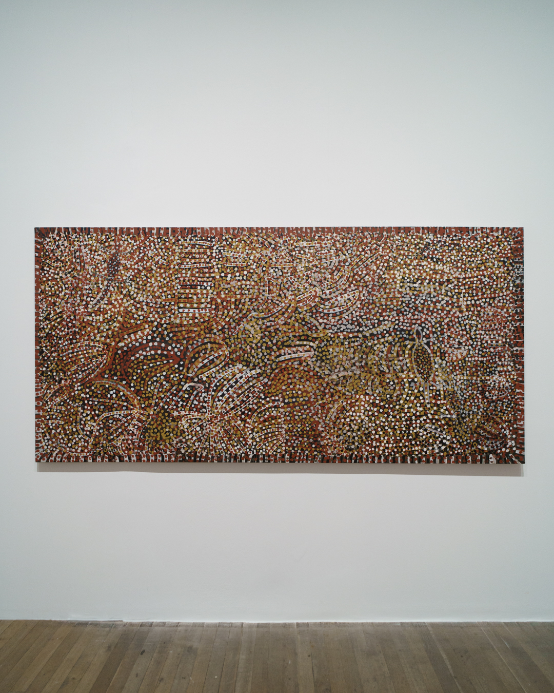 It would also have been nice to see some works displayed flat on the floor, emulating Kngwarray’s actual painting process while sat on the ground, and emphasising the topographical language of Aboriginal art. These are, after all, literal sites of memory where stories are memorialised and retold.