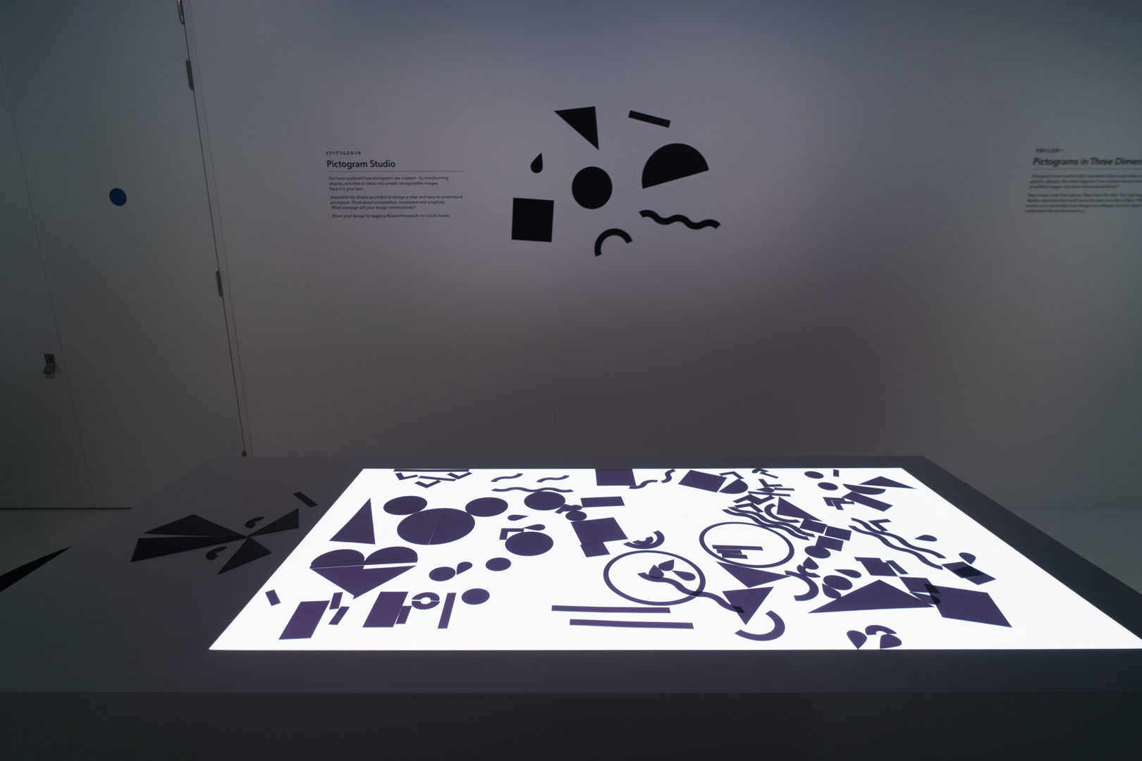 Finally, the future of pictograms is explored, even in three dimensions. Using full-scale versions, visitors can inhabit the world of this visual language and become their own pictogram. Alternatively, one can use the nearby lightbox to design their own.