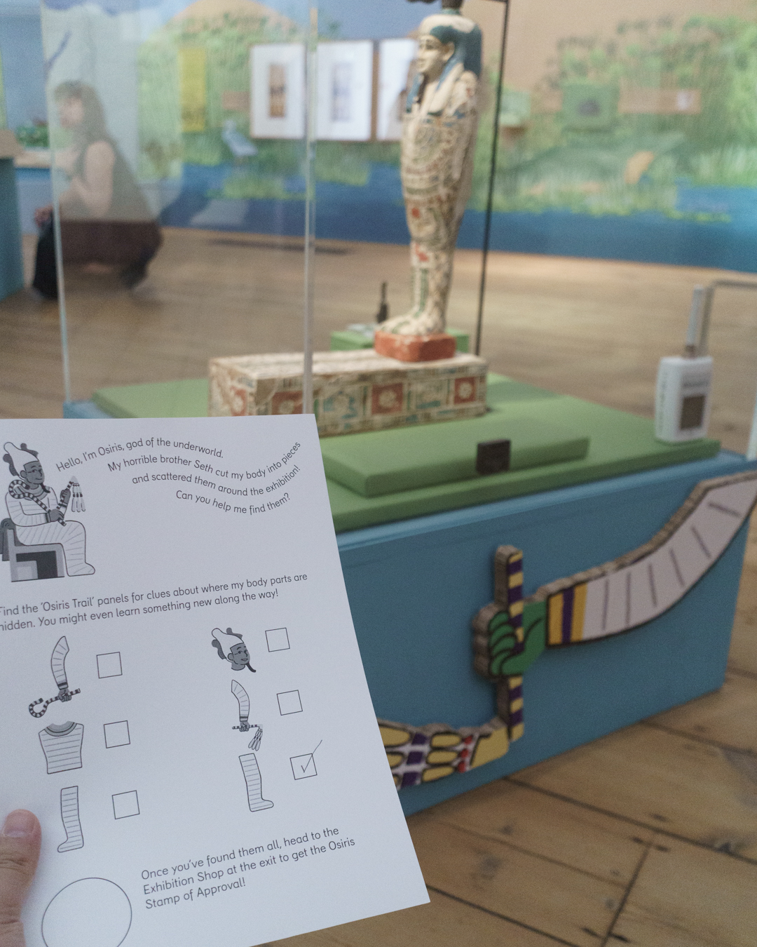 By capitalising on the storytelling element of Ancient Egyptian mythology, the exhibition uses the civilisation’s deities as a link to many physical aspects of the world. Forming the backbone of the children’s activity is the story of Osiris, whose dismembered body parts are scattered across the entire space for kids – embodying his wife Isis – to find (it was quite fun).