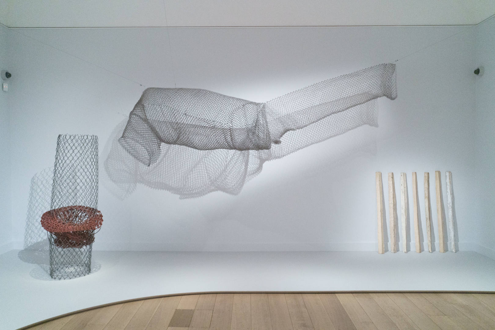 The Courtauld exhibition reflects Lippard’s exhibition in its small scale and is probably the first show on sculpture in the Denise Coates Exhibition Galleries since the renovation. Every work on show was produced in the 1960s, their materials varying from latex to chain-link fencing. The first room clusters the three artists together, while the second gives each of them dedicated wall space to understand their processes and approaches.