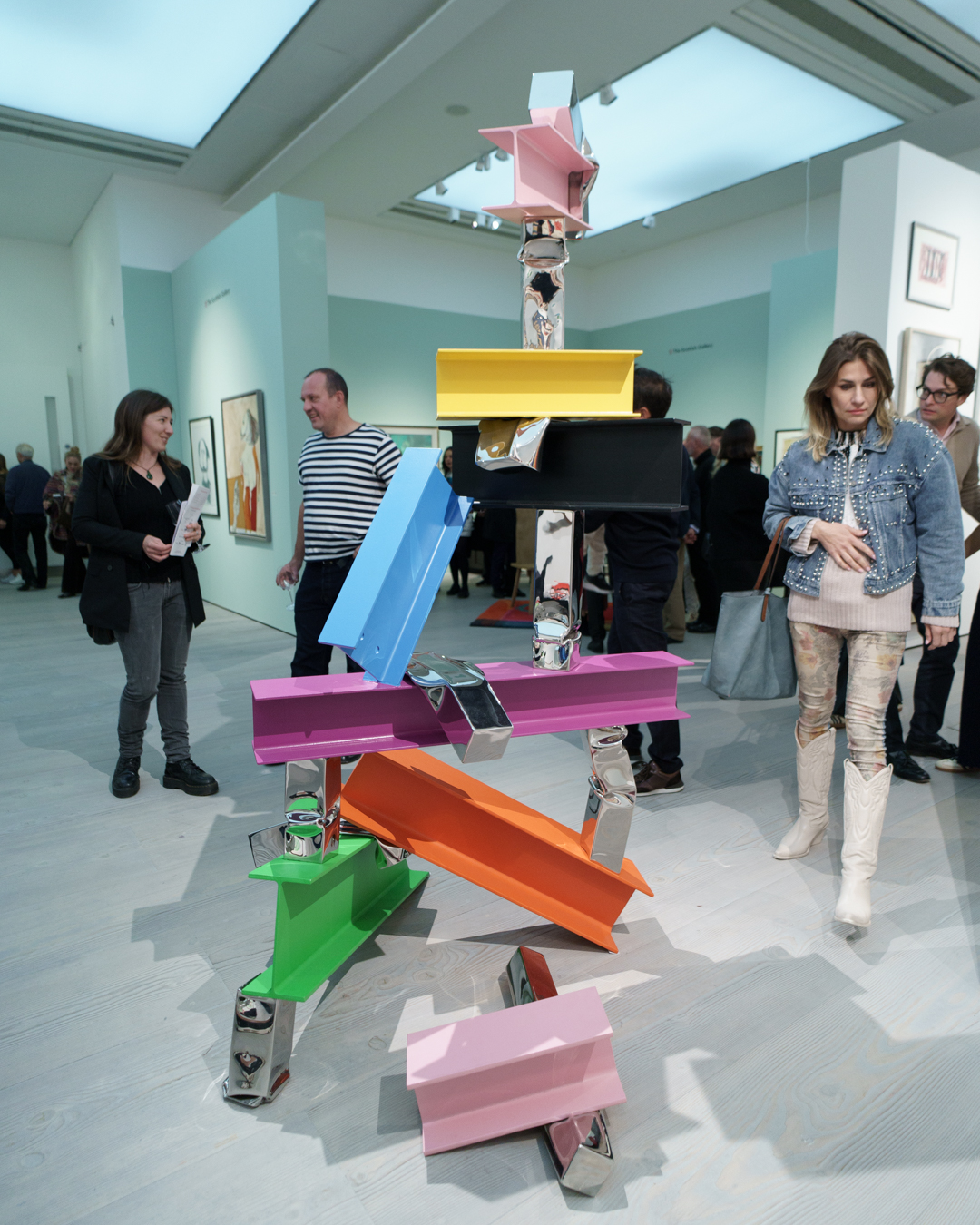 Julian Wild, Folly, 2025, painted steel l-beams and polished stainless steel (Blond Contemporary, stand 14)