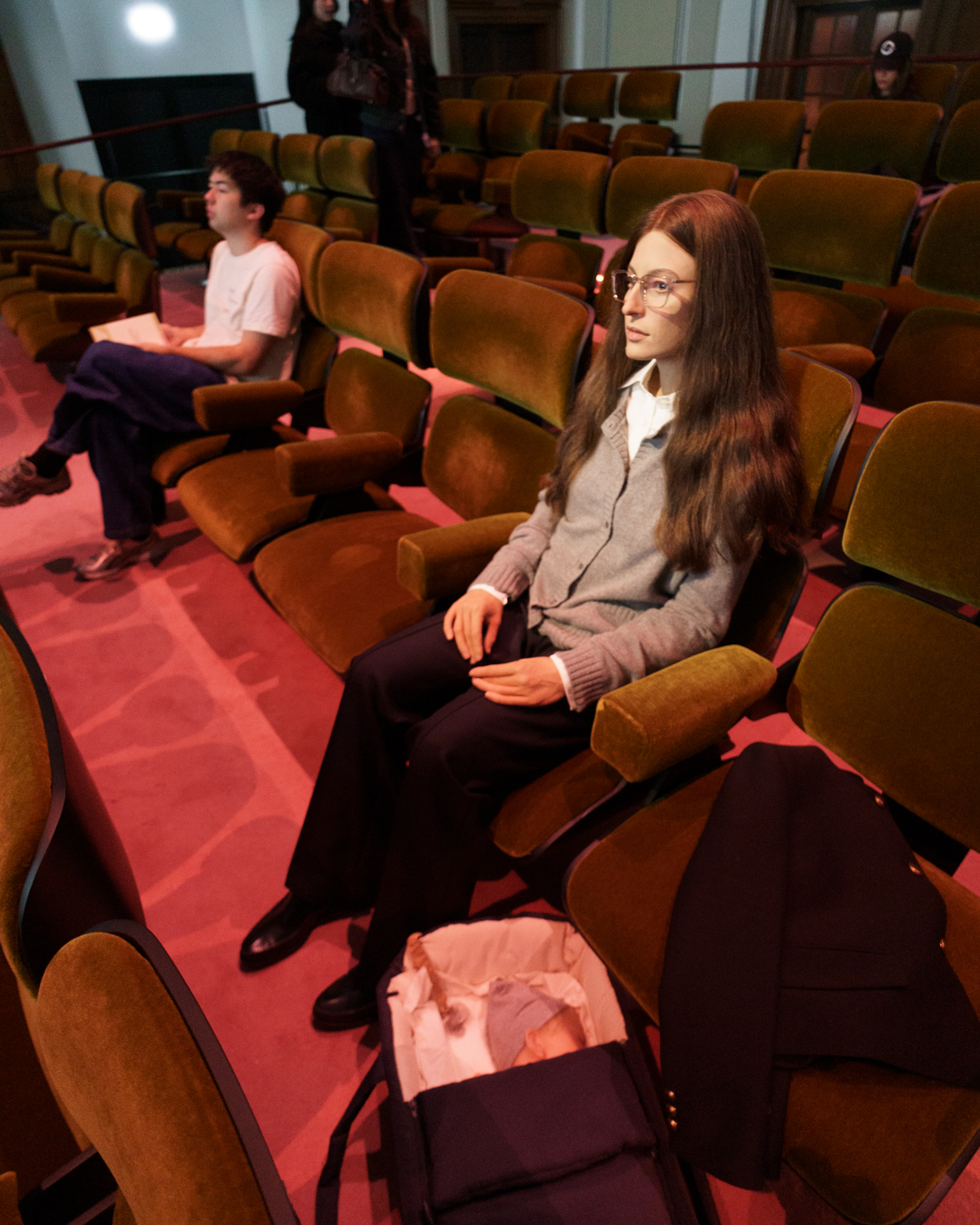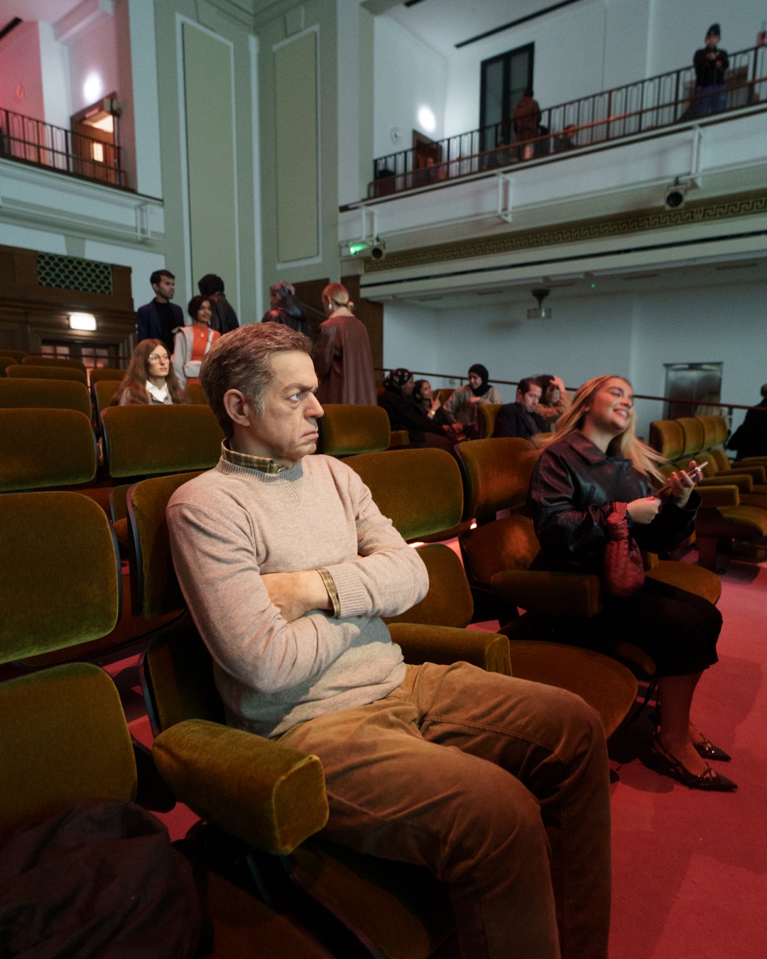 The main attraction was Elmgreen & Dragset’s site-specific installation, The Audience, a 104-seat cinema where a looping, out-of-focus film is screened while five seats are taken up by hyper-realistic sculptures of cinemagoers in varying states of attentiveness. A gentle spotlight picks them out and visitors are invited to sit with them.