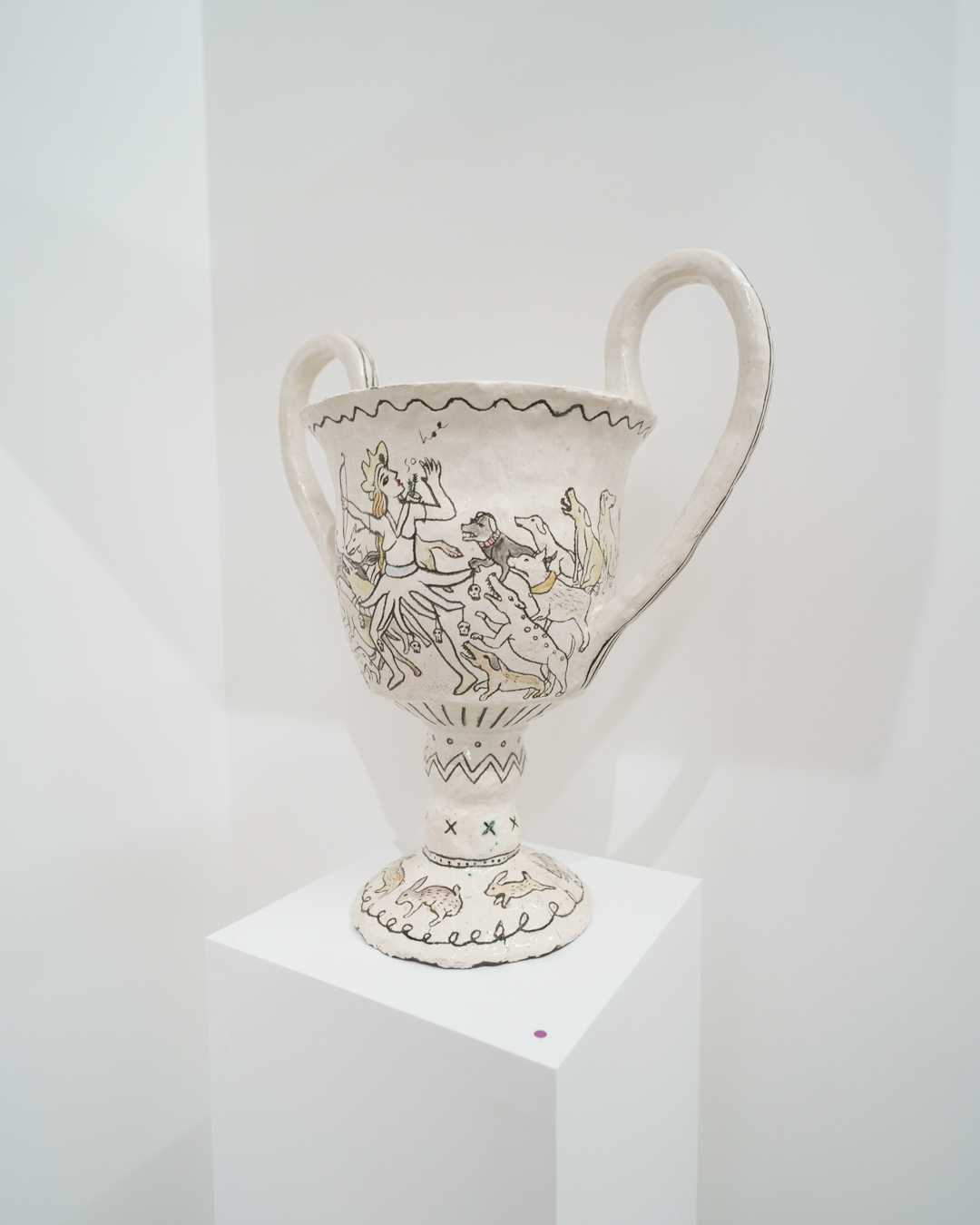 Finally, Wondering People really drew me in with Amata Benedict’s mythological ceramics, particularly the Sphinx Vase (2025) which featured holes for handles instead.
