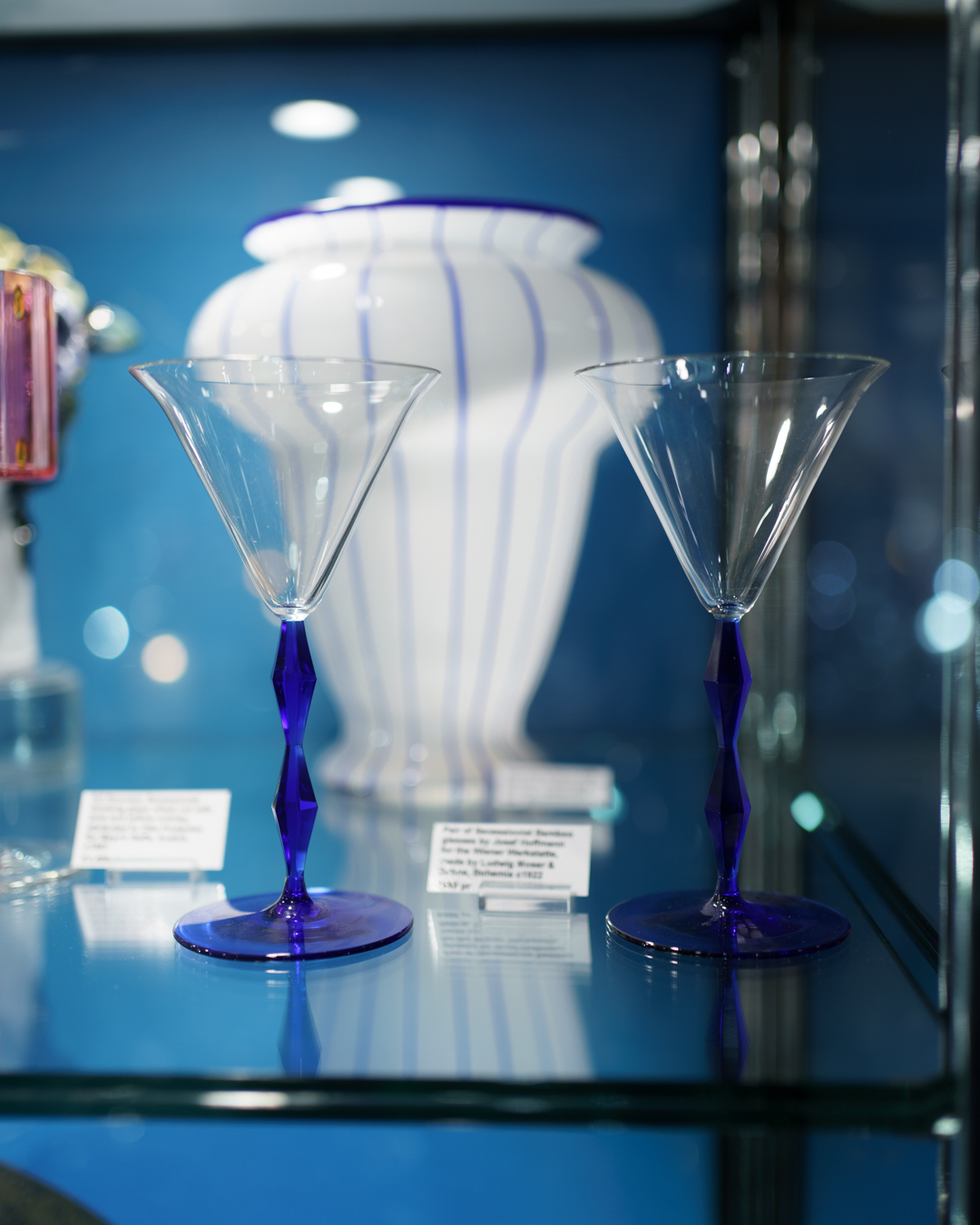 Pair of Secessionist Bamboo glasses designed by Josef Hoffmann for the Wiener Werkstatte, made by Ludwig Moser & Sohne, c.1922 (Morgan Strickland Decorative Arts, stand B43)