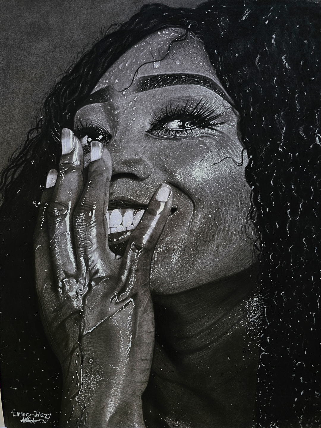 Regardless of art-viewing experience, I think most people can appreciate hyper-realistic drawing, particularly of the human form. It comes with a special kind of aesthetic experience that borders on the hypercritical, forcing us to pay excruciating attention to details we would not normally notice in daily life. Kolade Emmanuel Ayinuloa, known professionally as EmmieJazzy, is an artist who has mastered this technique, using draughtsmanship to capture deep human emotions and collective truths.