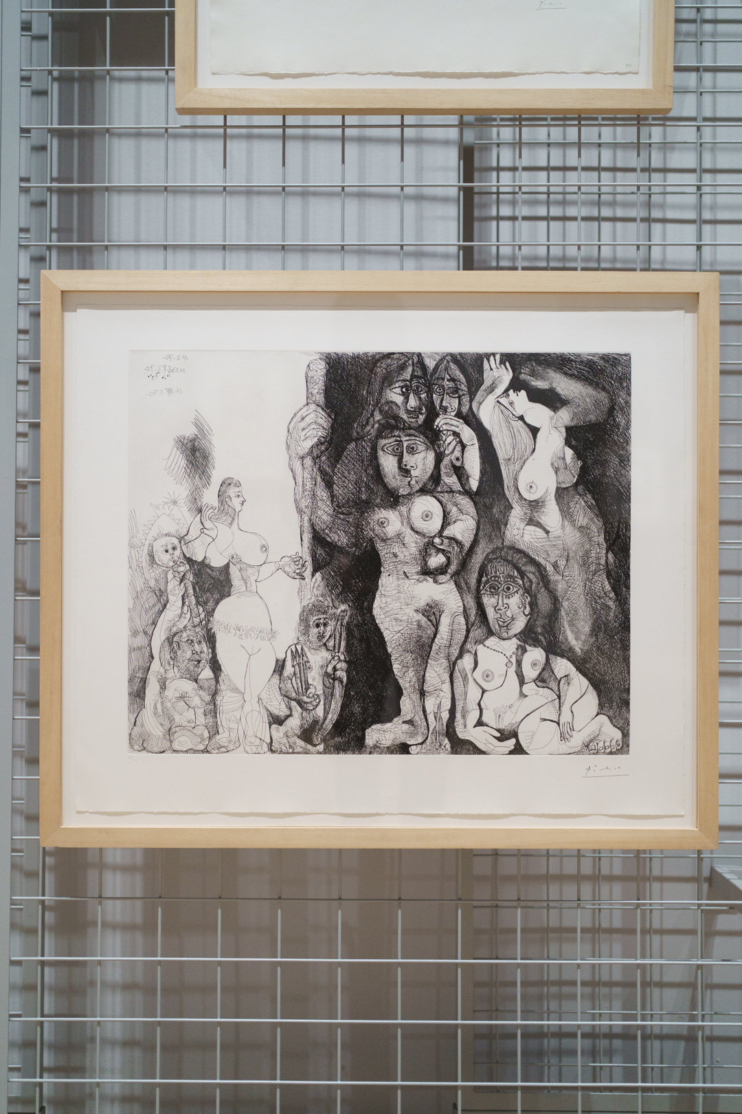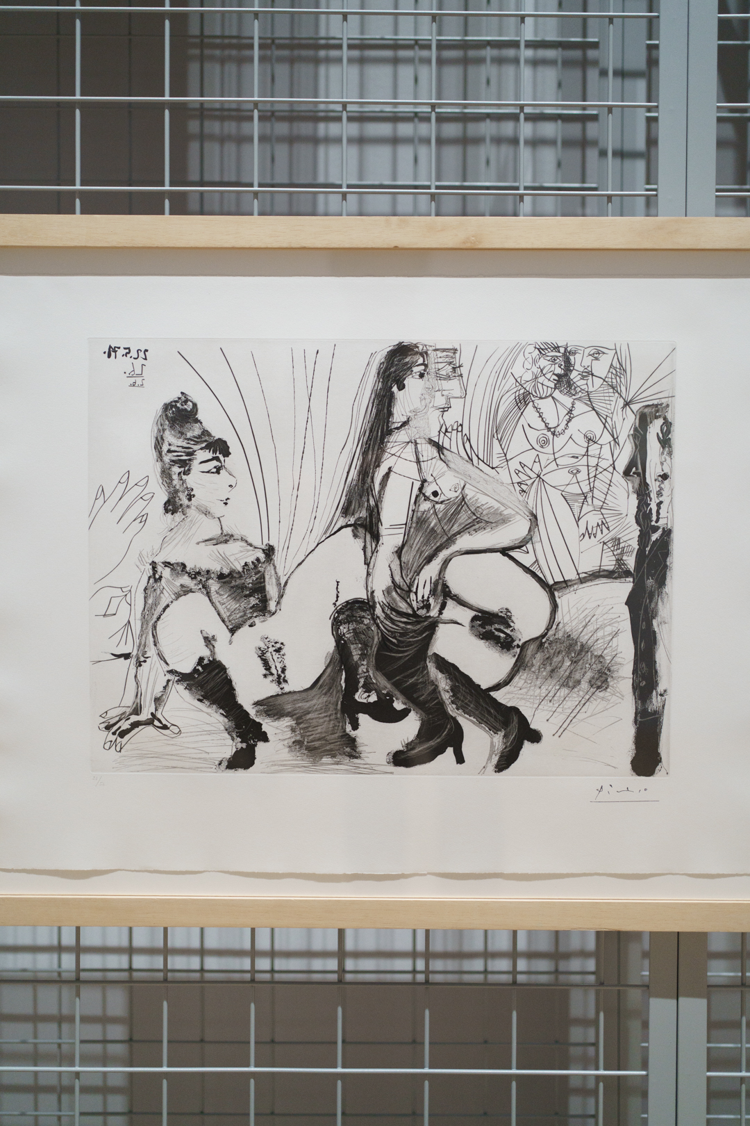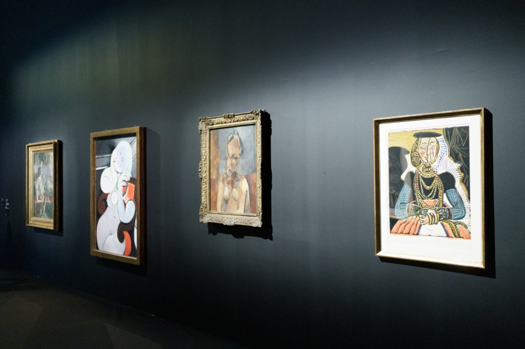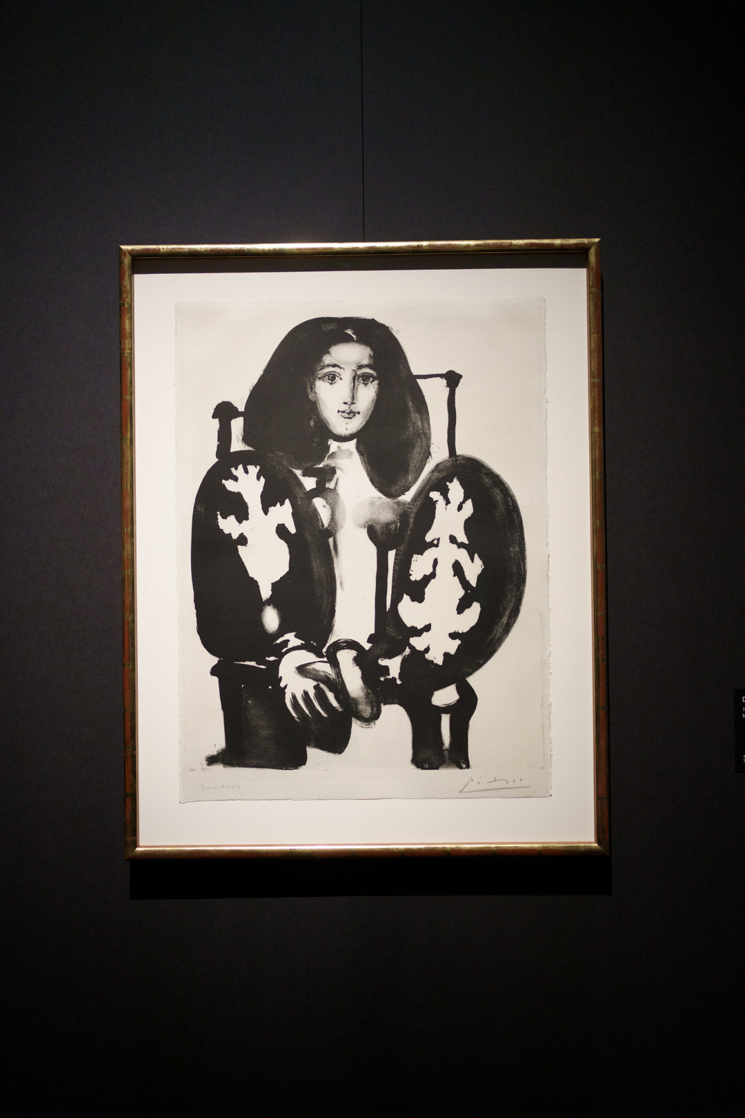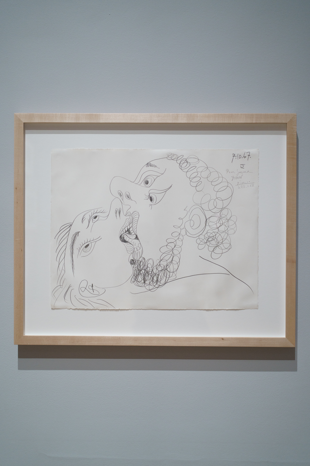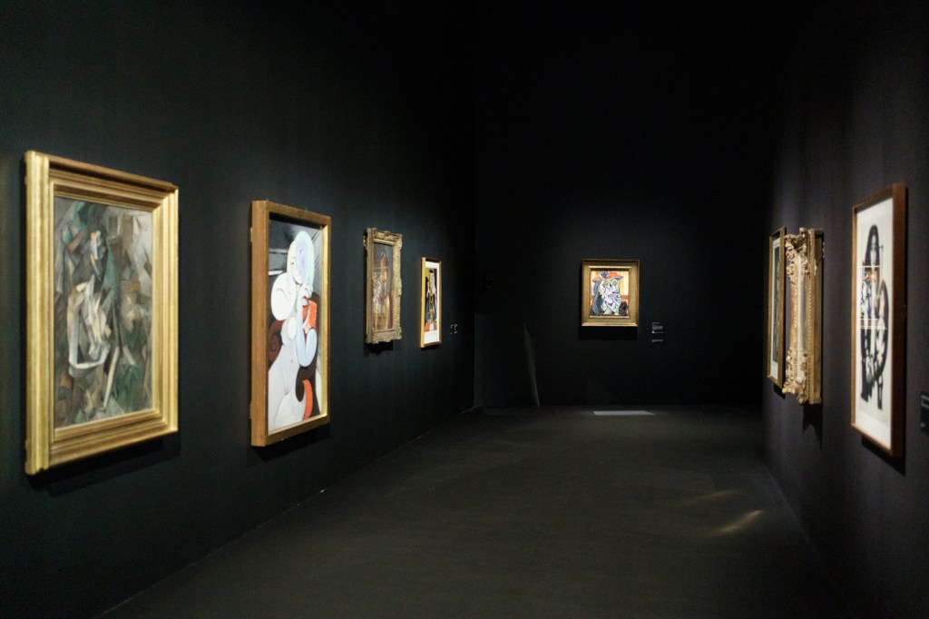 While the exhibition celebrates the people and playful characters in Picasso’s art, it also highlights the performativity of museums, their collections, and exhibition design. In fact, even the lighting changes like spotlights in a theatre, while the soundtrack accompanying the 1956 documentary Le mystère Picasso permeates the room.