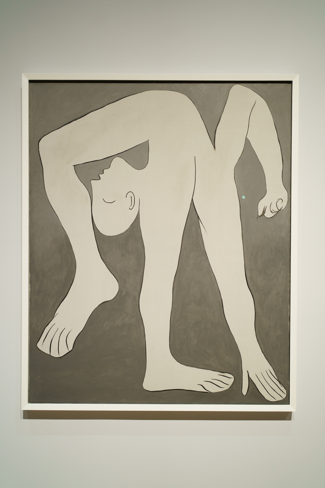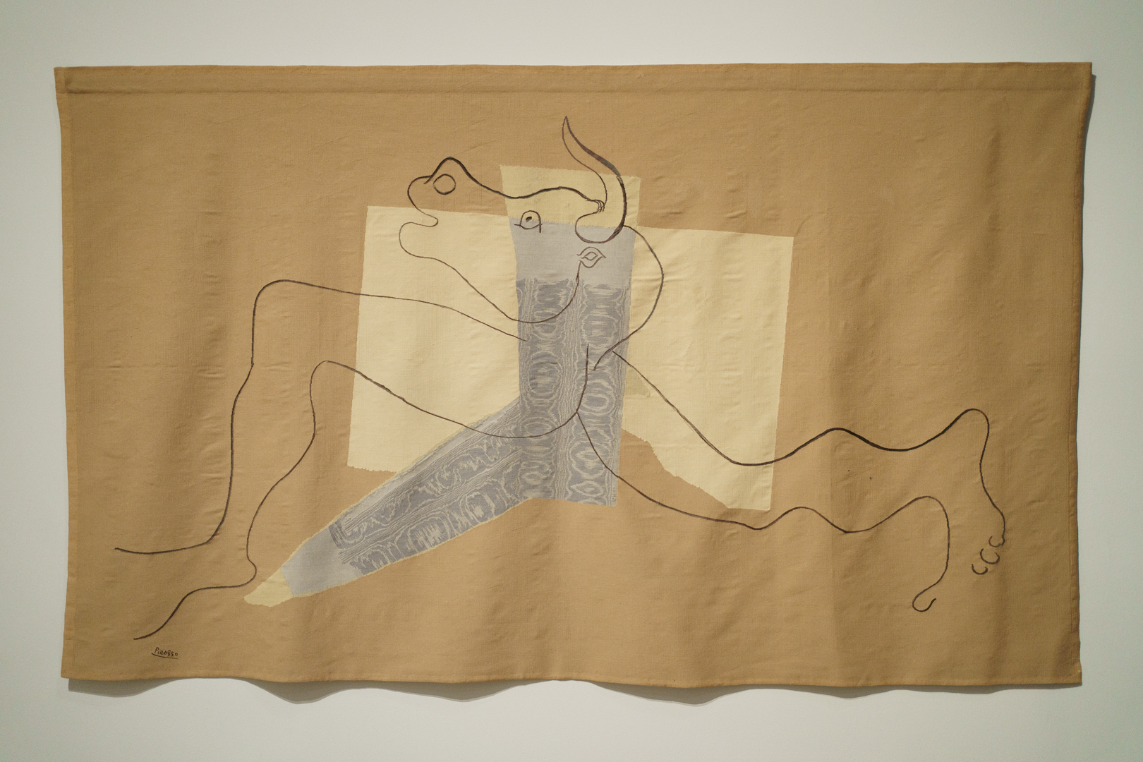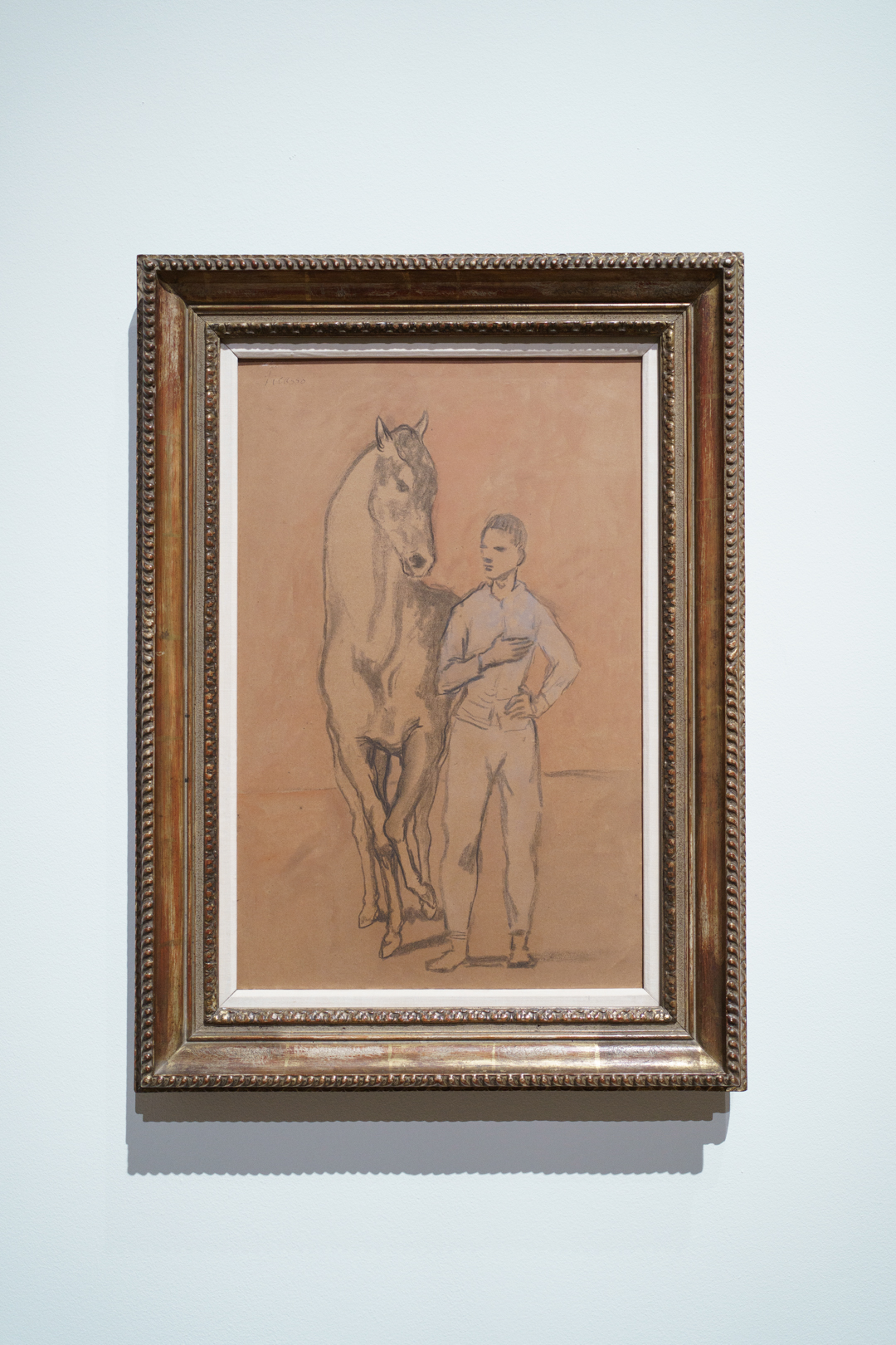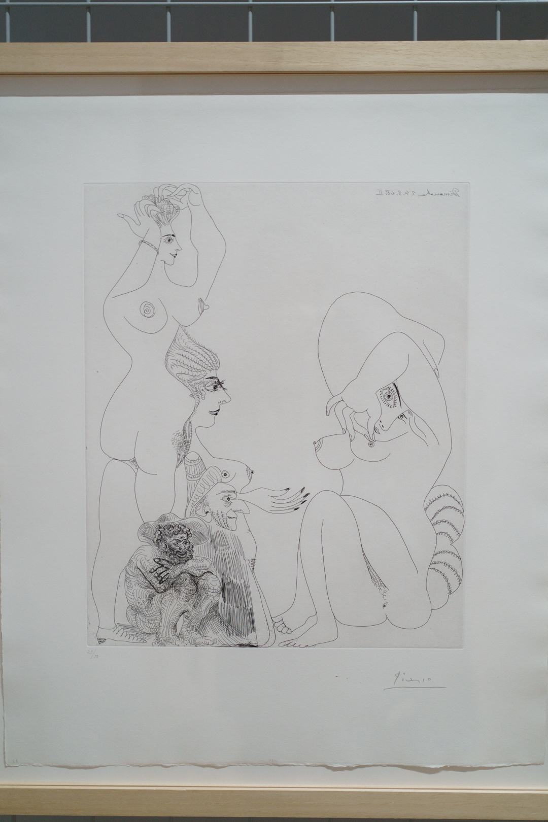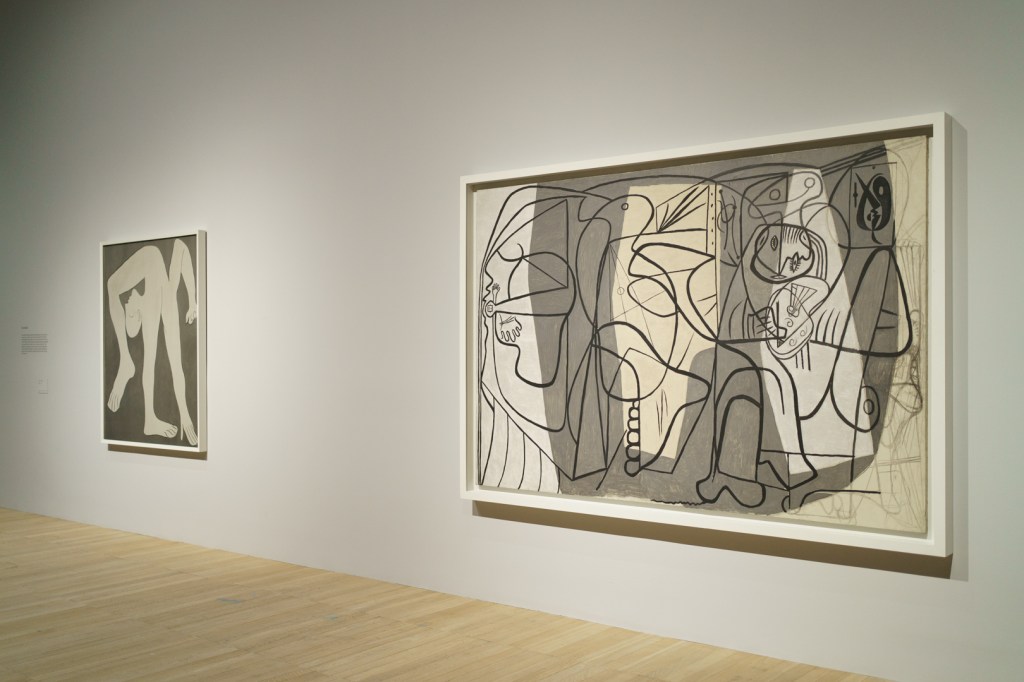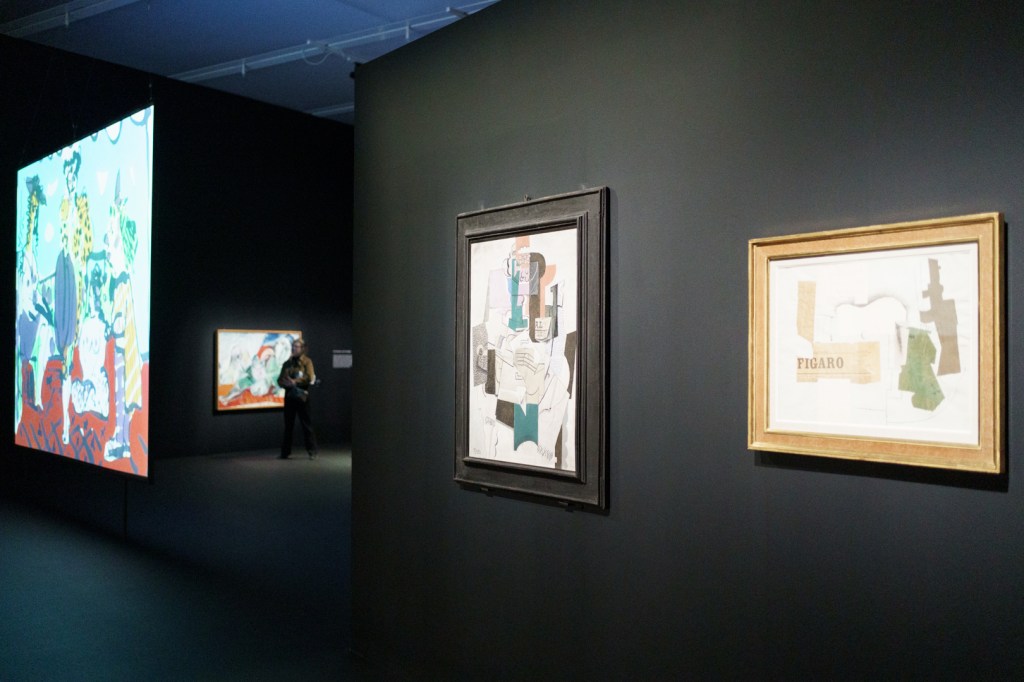 While the exhibition celebrates the people and playful characters in Picasso’s art, it also highlights the performativity of museums, their collections, and exhibition design. In fact, even the lighting changes like spotlights in a theatre, while the soundtrack accompanying the 1956 documentary Le mystère Picasso permeates the room.