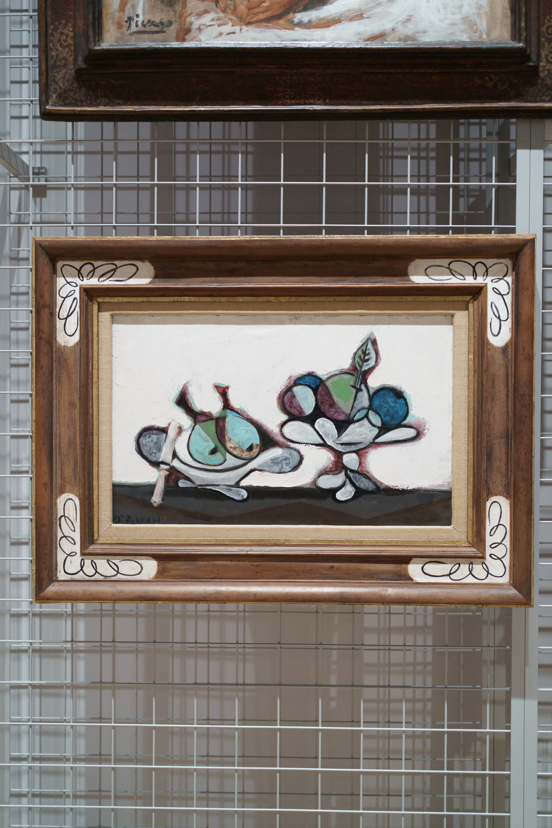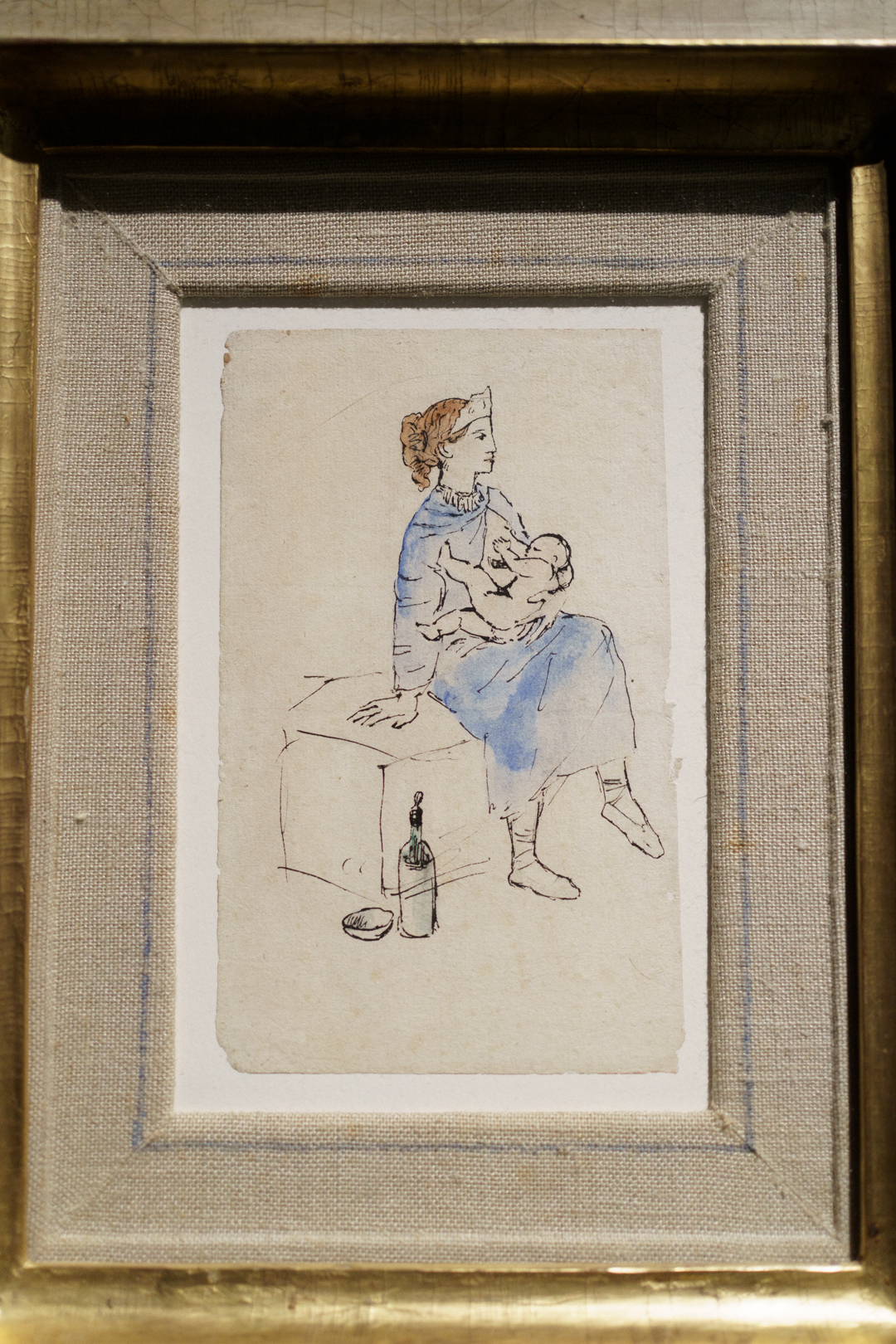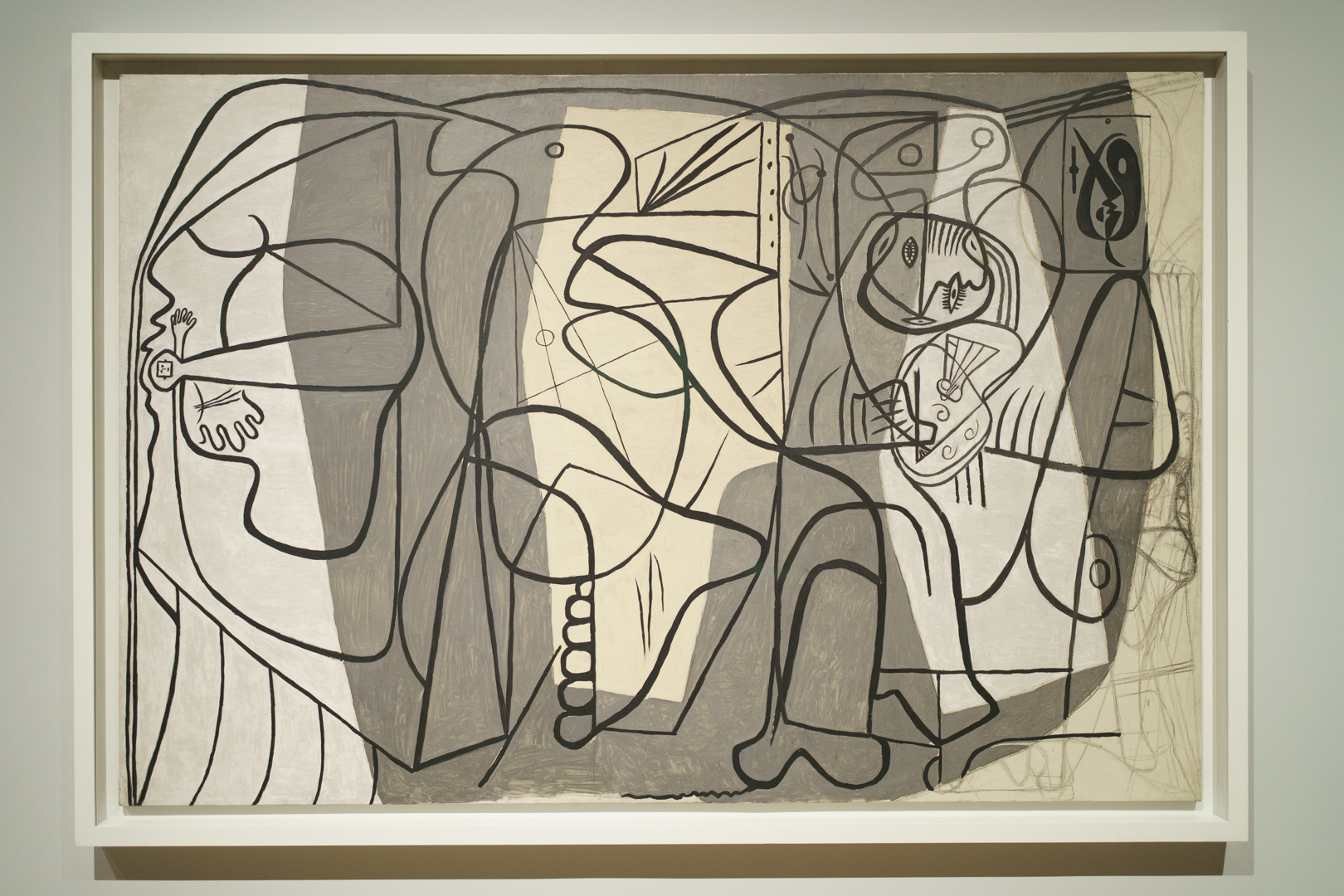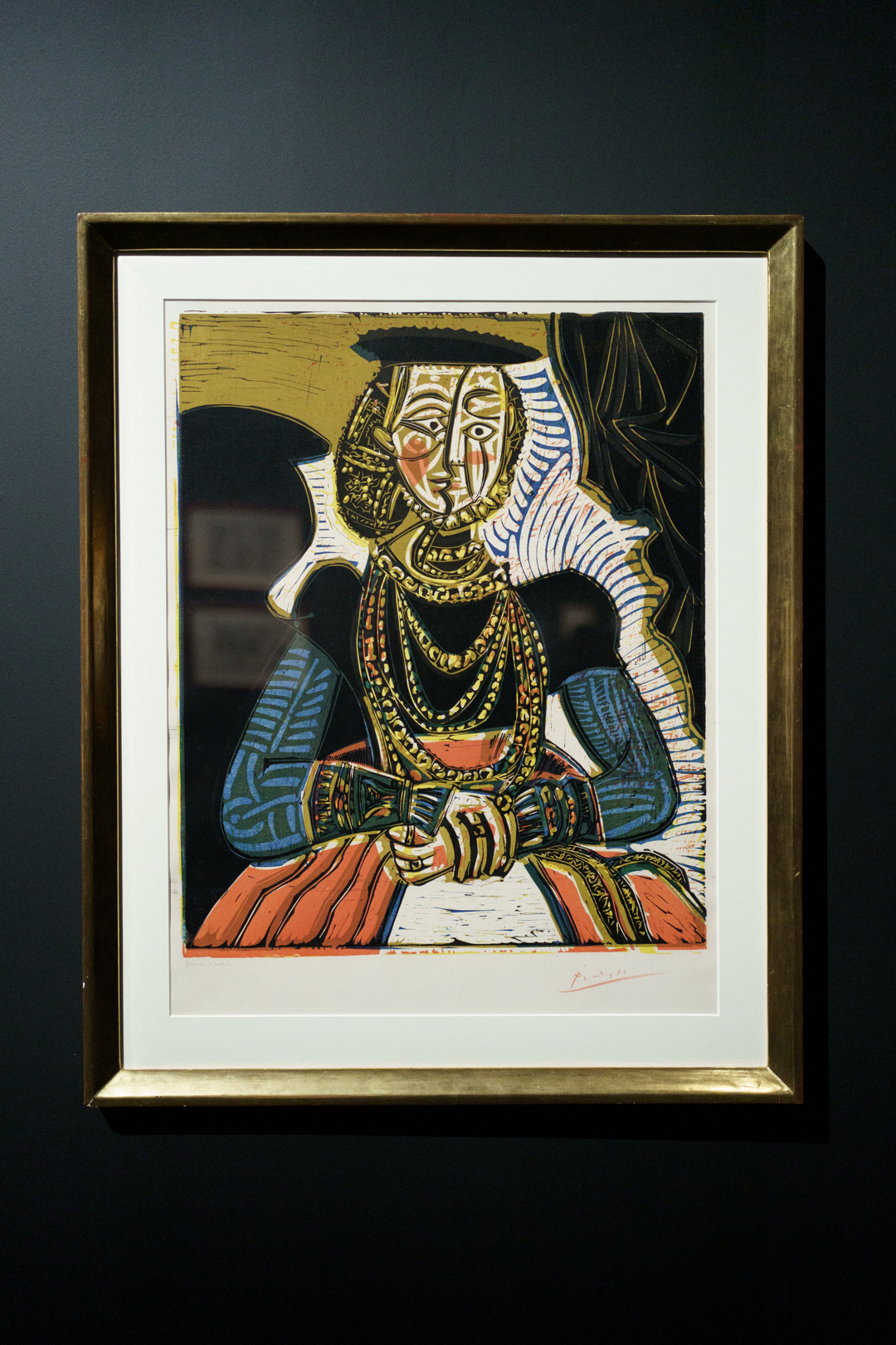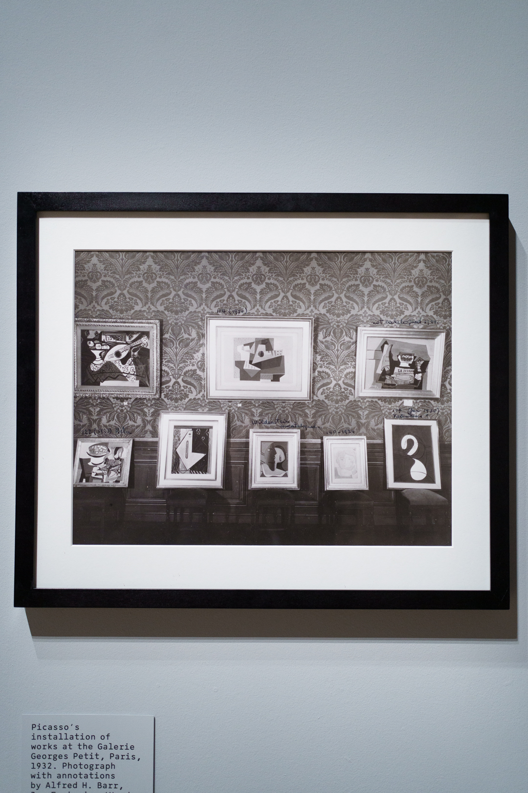 While the exhibition celebrates the people and playful characters in Picasso’s art, it also highlights the performativity of museums, their collections, and exhibition design. In fact, even the lighting changes like spotlights in a theatre, while the soundtrack accompanying the 1956 documentary Le mystère Picasso permeates the room.
