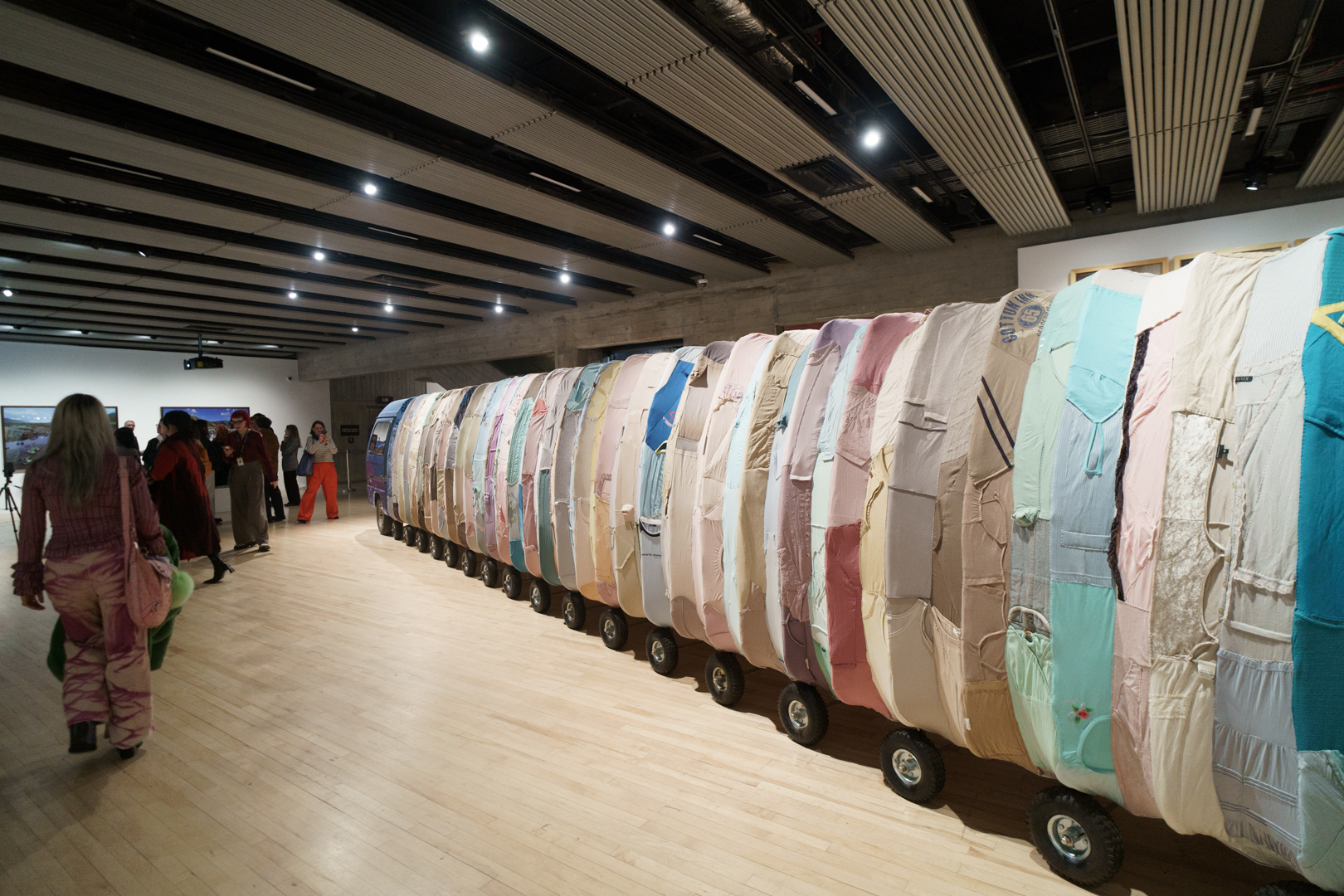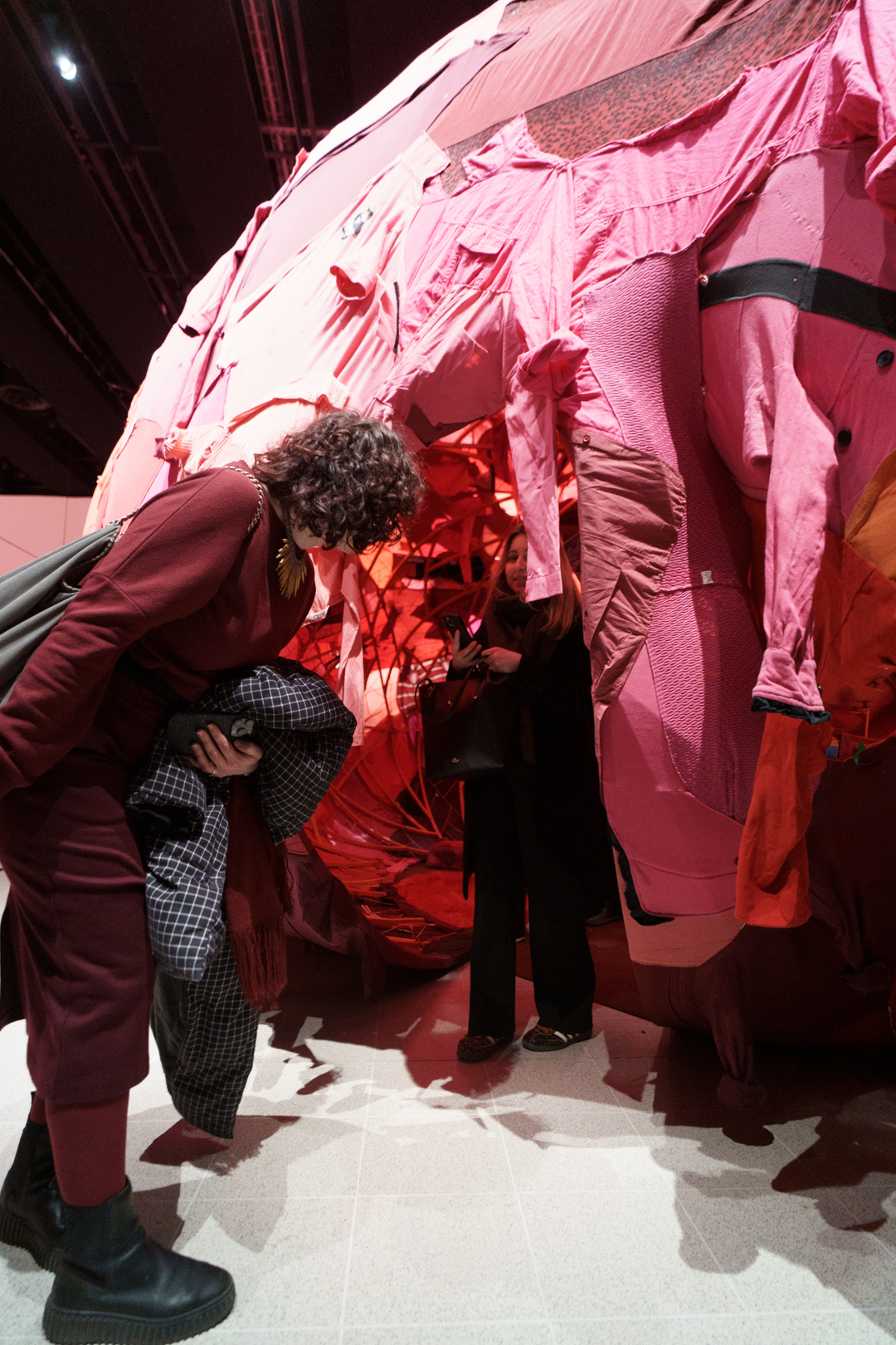 At the heart of her exhibition is a new commission, A Heart to Heart (2026), an immersive textile installation shaped like a human heart. Visitors are invited to step inside the space, a site of collective memory via the used clothing collected for its construction.