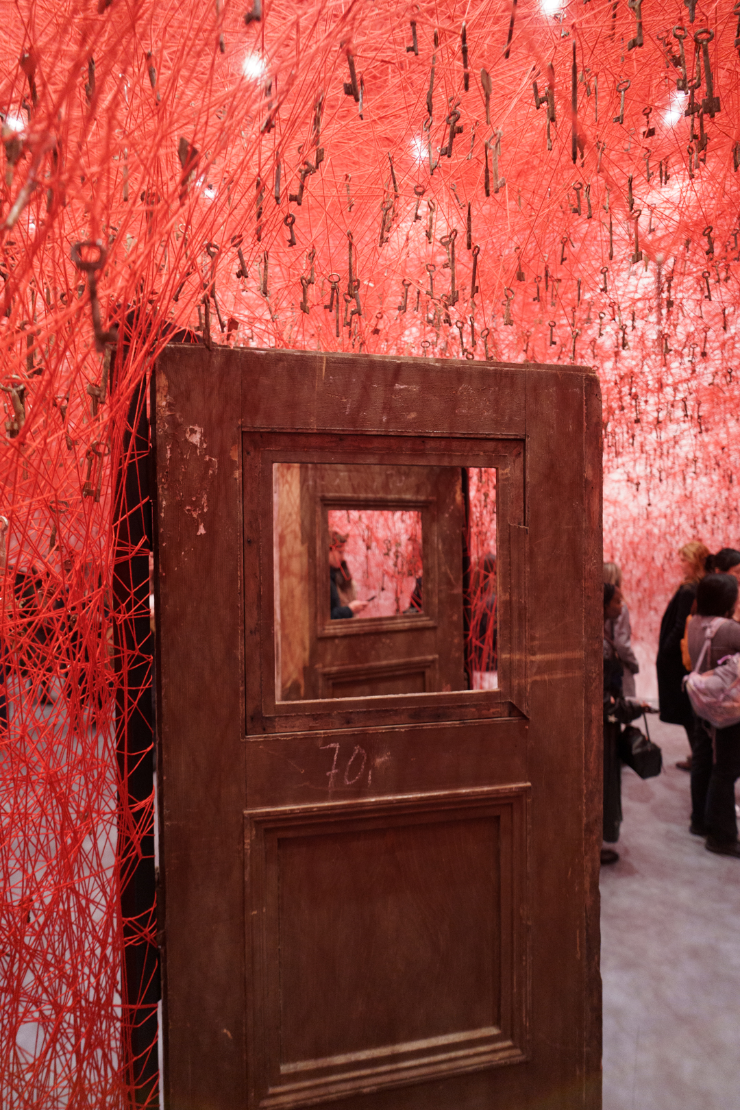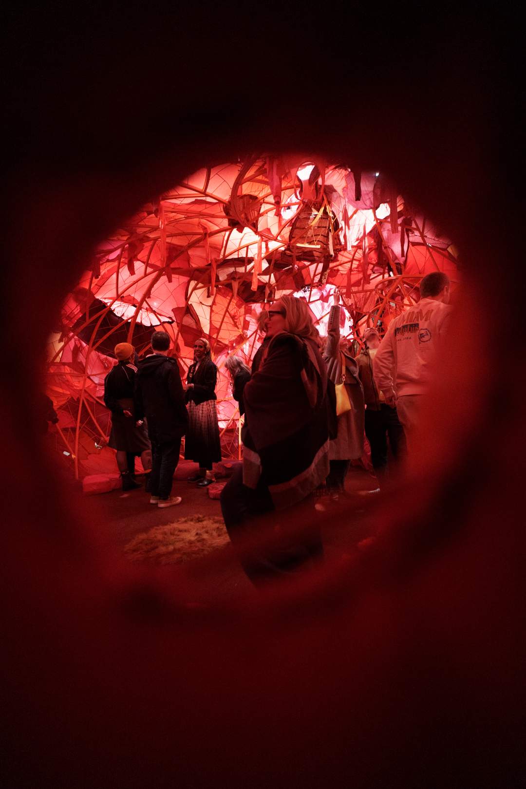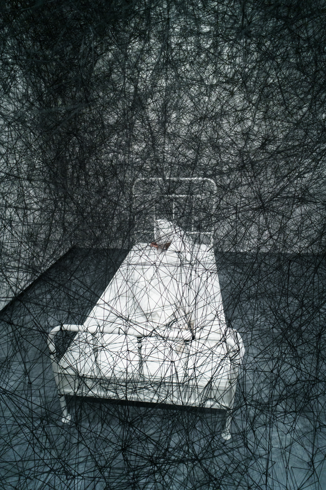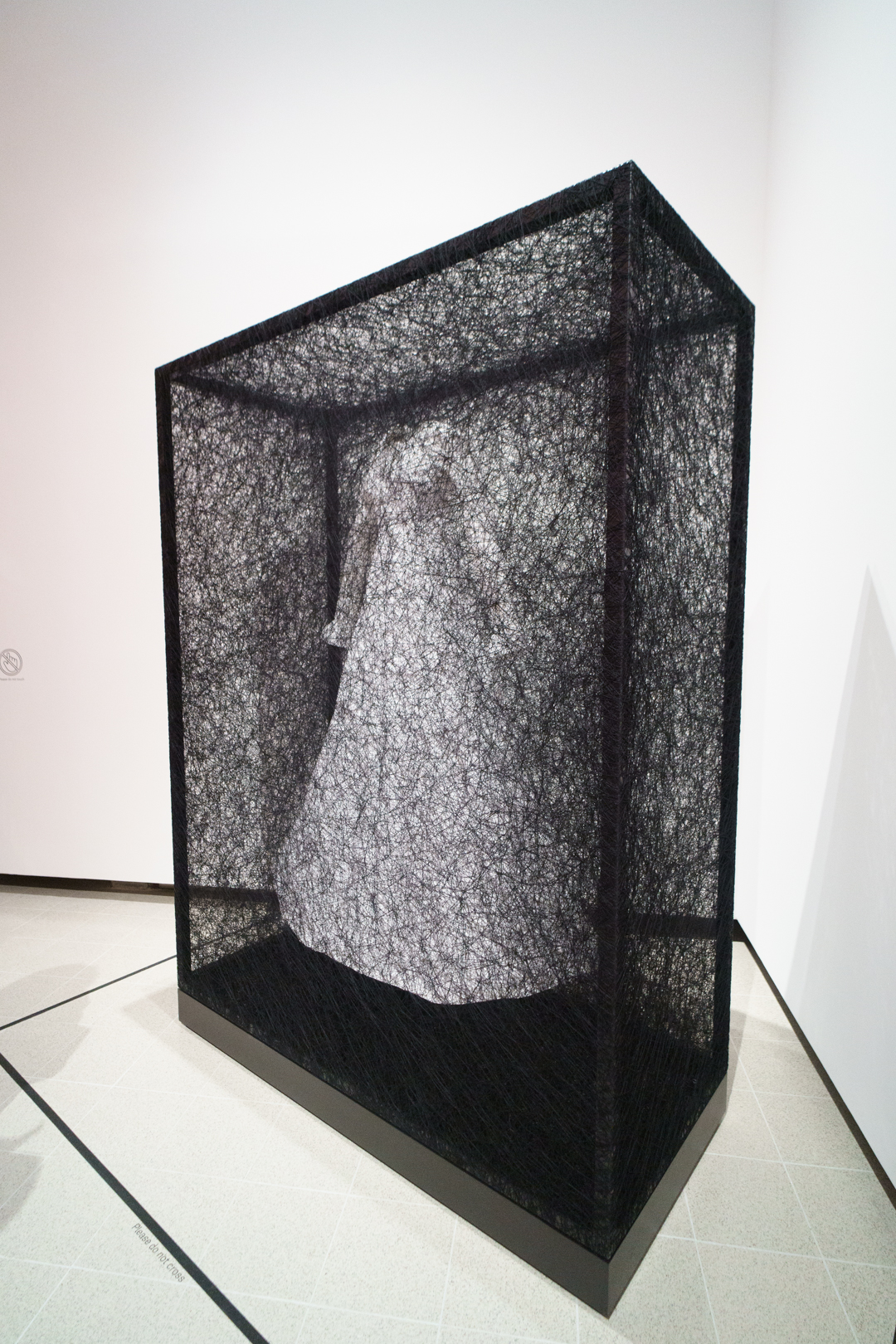 Upstairs, Shiota’s Threads of Life (2026) engulfs the visitor in a delicate web of red. Keys dangle at every turn and the space becomes a cage built from interconnected experiences. Similarly, During Sleep (2026) is a performance piece where performers lie in beds entrapped in black thread; it’s deeply unsettling and frankly quite creepy to walk through, as if having entered a spider’s web.